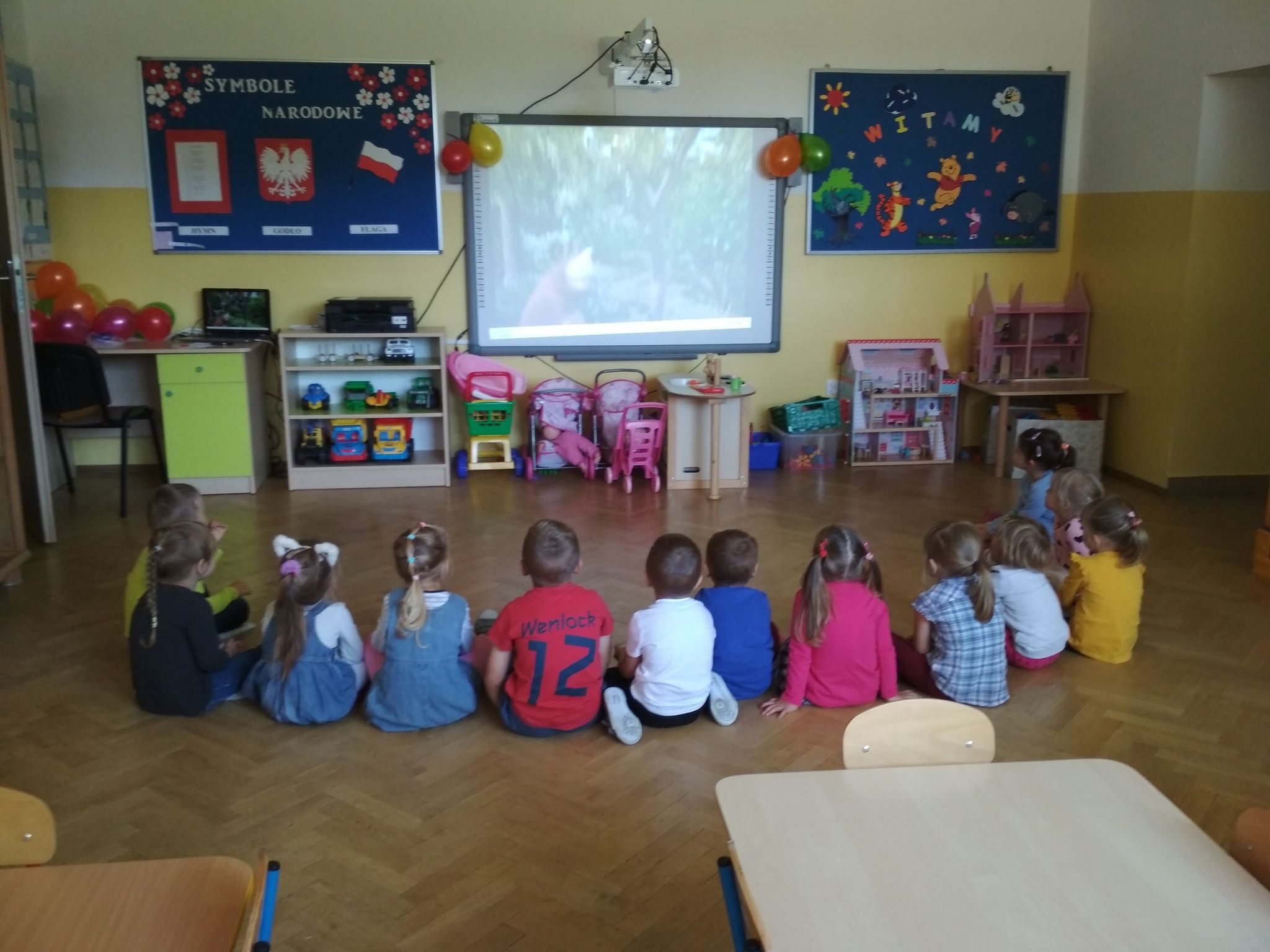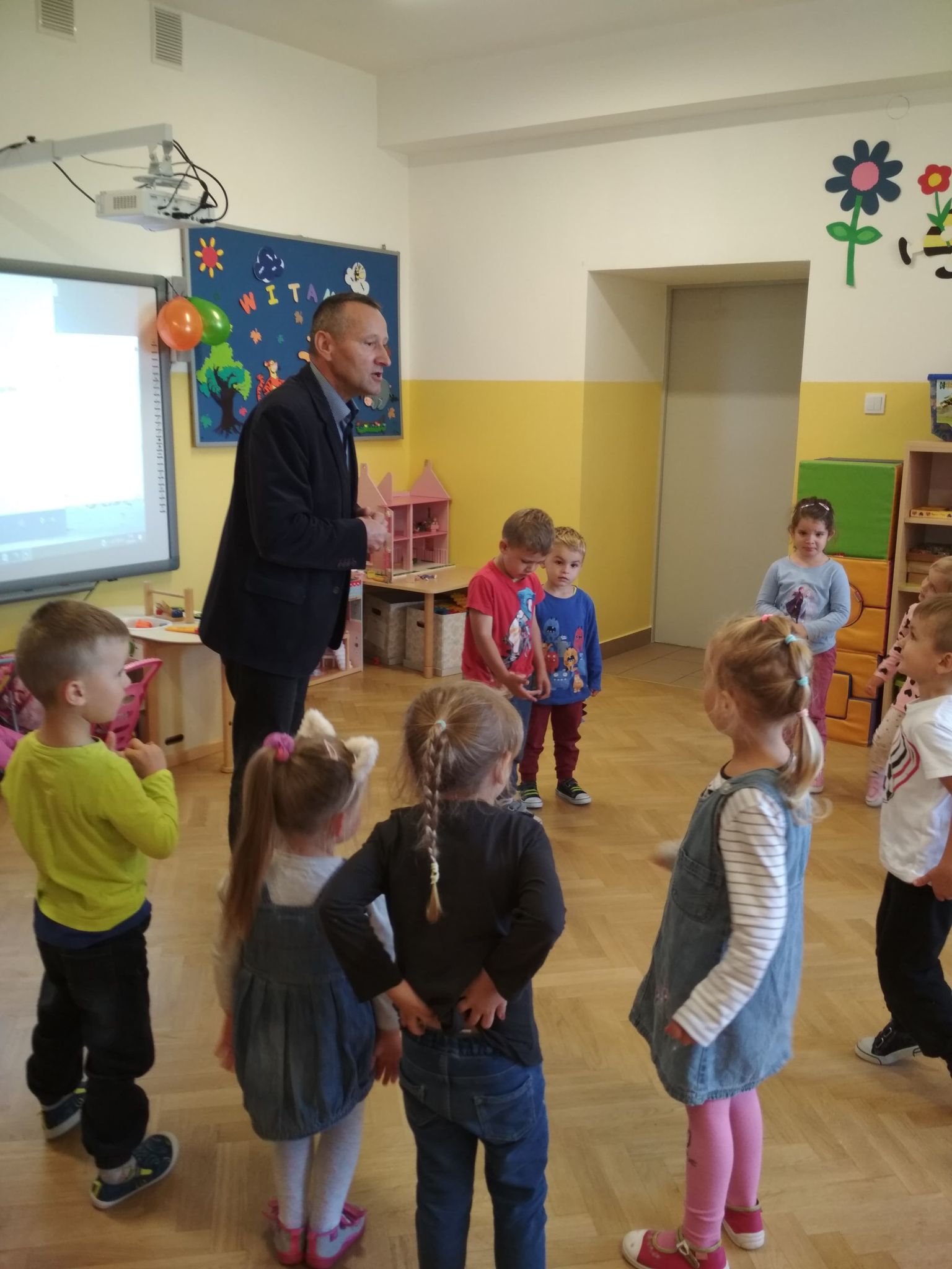 21 września w naszym przedszkolu w grupie 3-4-latków odbył się Dzień Przedszkolaka. Muzyka, gwar i śmiech rozbrzmiewały od samego rana. Było mnóstwo zabaw ruchowych, piosenek, tańców z balonami. Radość i śmiech uczestników świadczyły o wspaniałej zabawie. Po obiedzie dzieci wykonywały prace plastyczne „Mój balonik” i słuchały ulubionych piosenek. Kolejną atrakcją dla dzieci było zaproszenie ich do obejrzenia krótkiej bajki edukacyjnej. Następnie odwiedził nas Pan Dyrektor, który złożył dzieciom życzenia, a Panie po krótkim akcie ślubowania wręczyły każdemu odznakę Super Przedszkolaka oraz prezent do domu w postaci kolorowego balonu. Na zakończenie dzieci spotkała słodka niespodzianka - babeczka i soczek. W naszym przedszkolu to święto dostarczyło dzieciom wielu miłych wrażeń i na pewno będą je długo i ciepło wspominać. Radość i uśmiech na twarzach przedszkolaków to doskonały dowód na to.