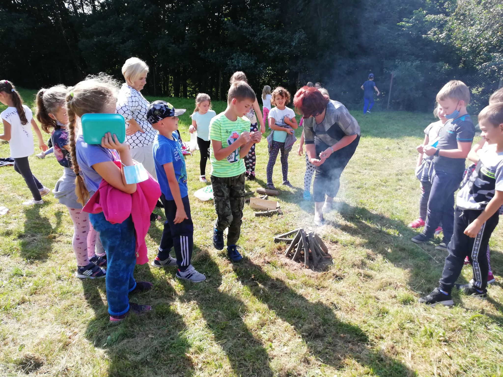 23 września uczniowie klas I-III, wraz z wychowawczyniami, korzystając z pięknej pogody wybrali się na ognisko. W czasie wspólnych zabaw integracyjnych, dzieci miło spędzały czas na świeżym powietrzu. Płonące ognisko i pieczone kiełbaski na długo pozostaną w pamięci dzieci.