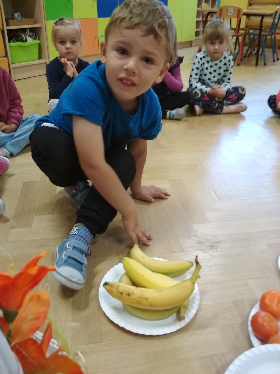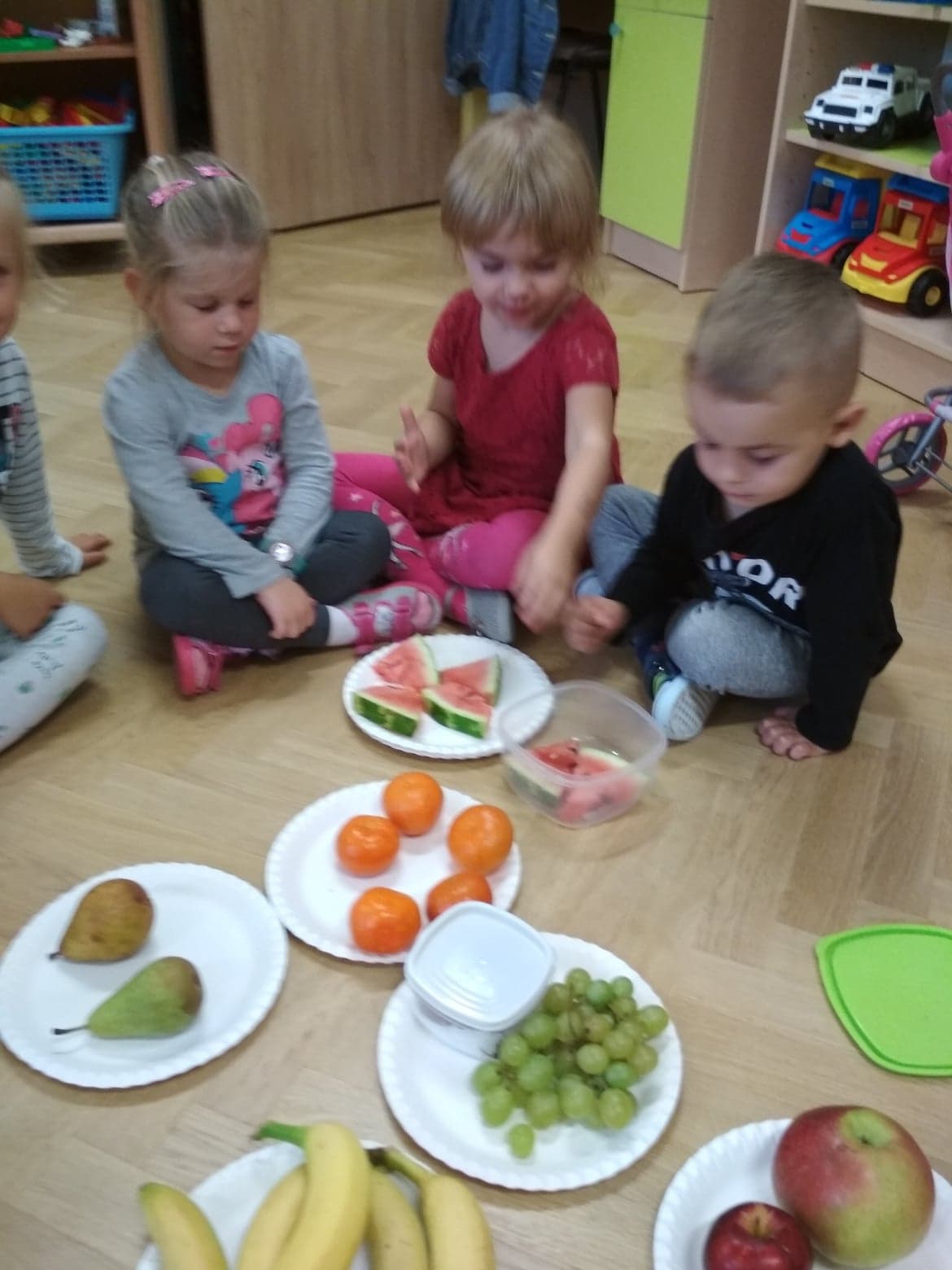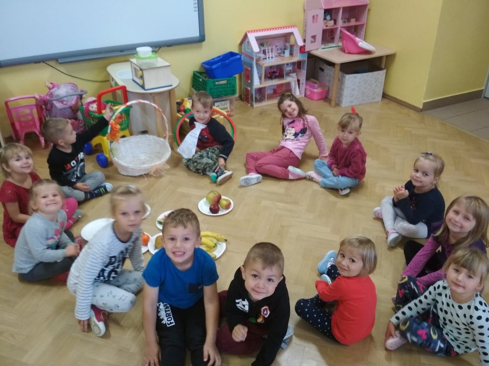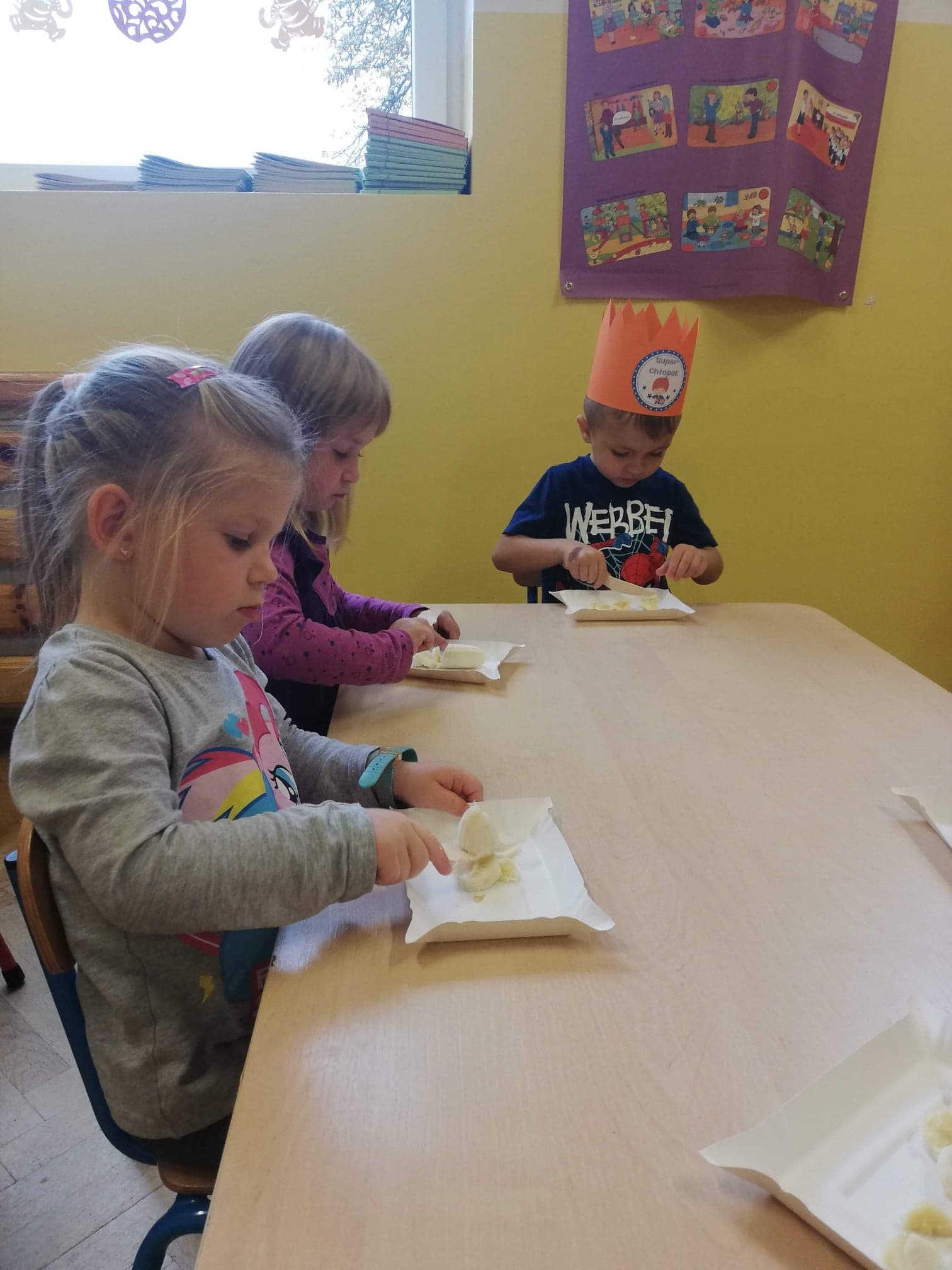 30 września obchodziliśmy w grupie dzieci 3-4-letnich Dzień Chłopaka. W tym roku to wyjątkowe święto połączyliśmy z Dniem Owocowym. Z tej okazji oprócz złożenia życzeń i wręczenia chłopcom koron z napisem "Super chłopak" odbyły się też ciekawe zajęcia o owocach. Dzieci m.in. segregowały owoce, liczyły, rozpoznawały je po zapachu i smaku. Po zajęciach dziewczynki przygotowały dla naszych chłopców sałatkę owocową. Chłopcy, jak na dżentelmenów przystało, oczywiście pomogli w jej przygotowaniu :) Następnie wszyscy kontynuowaliśmy świętowanie jedząc pyszną i zdrową sałatkę owocową. Jeszcze raz życzymy samych wspaniałości dla naszych przedszkolnych chłopców.