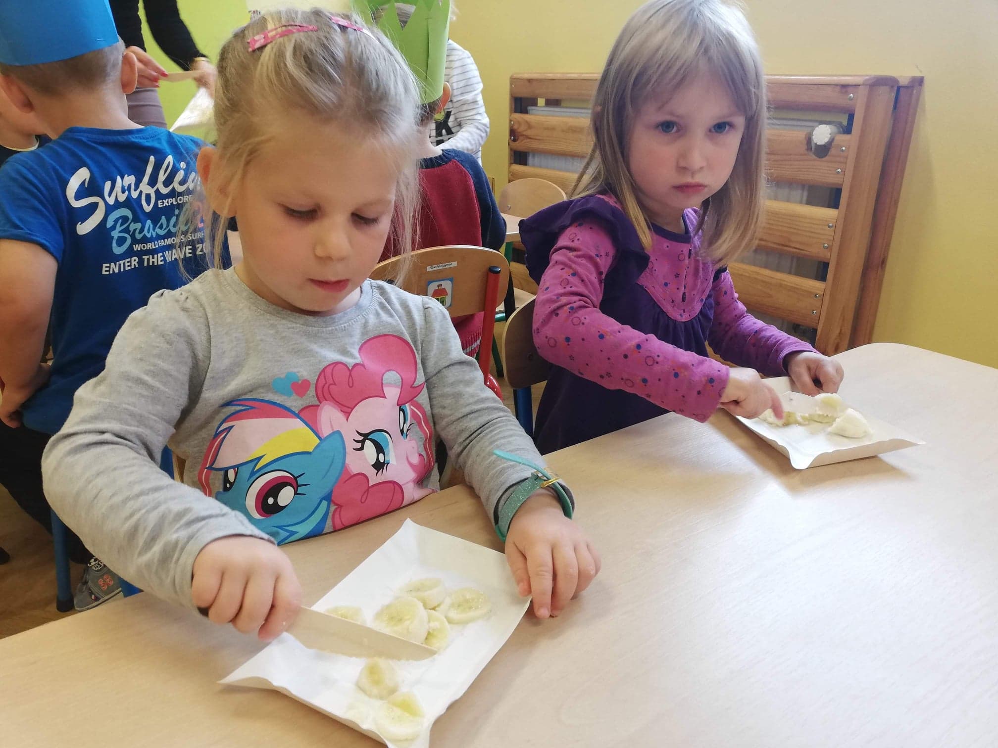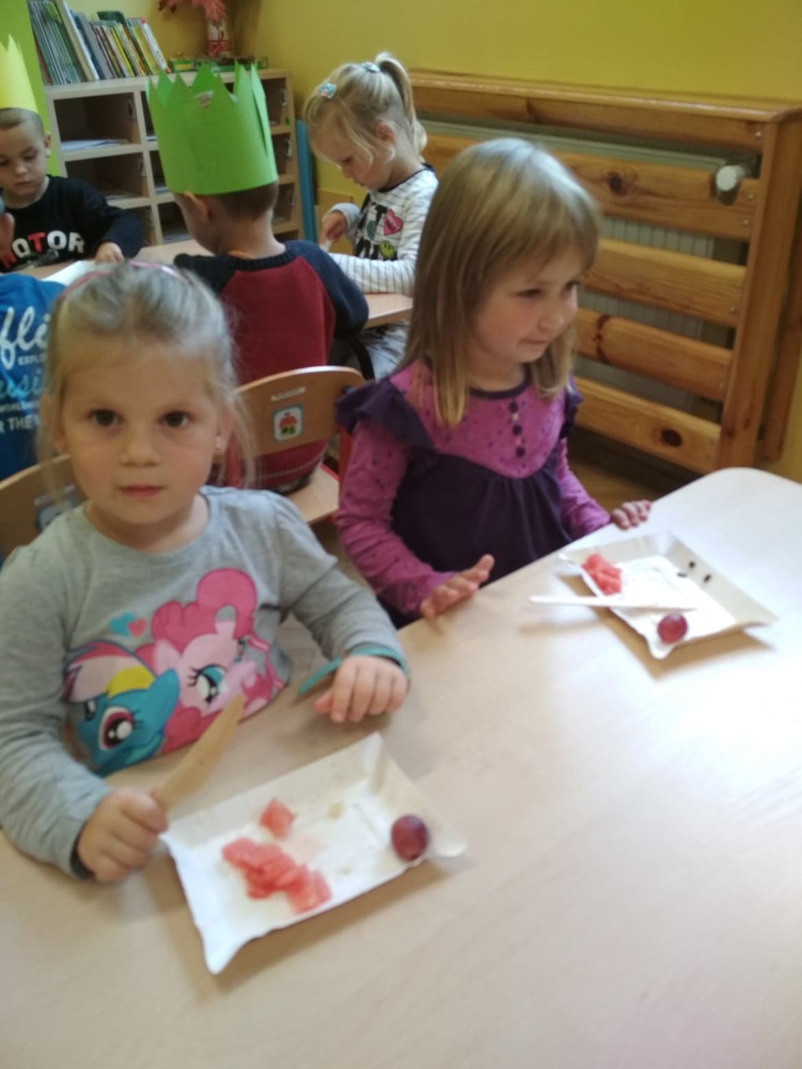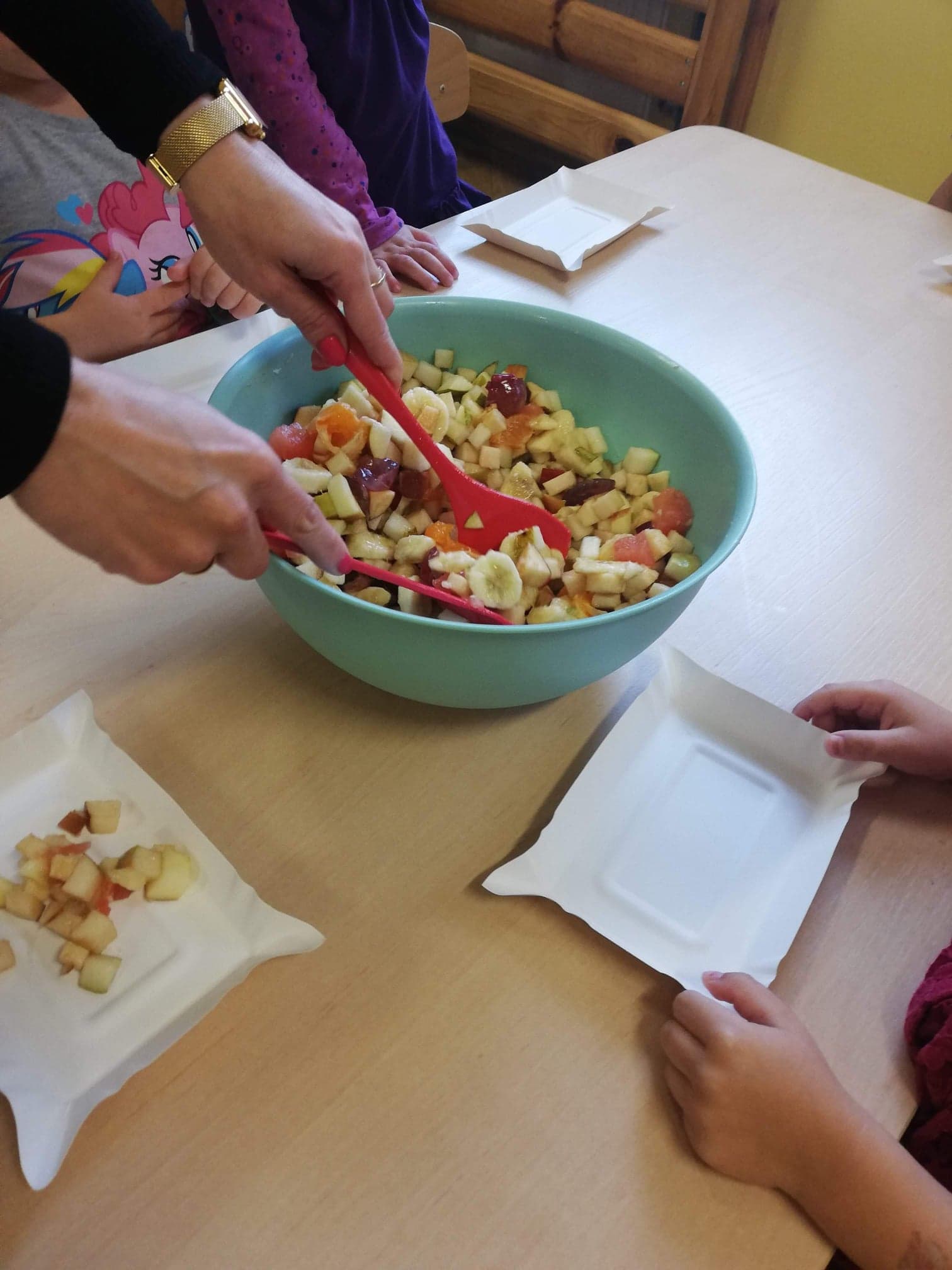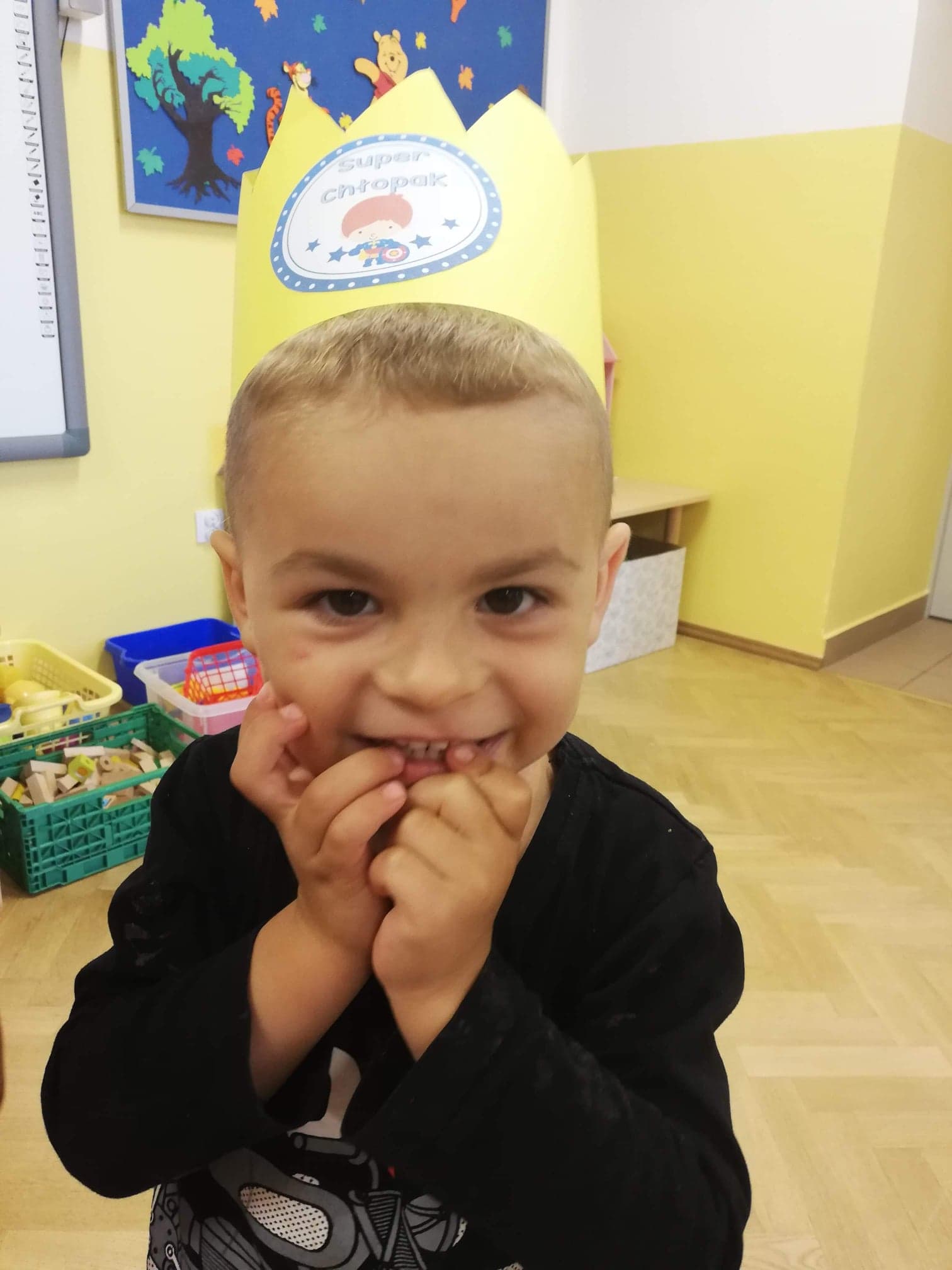 30 września obchodziliśmy w grupie dzieci 3-4-letnich Dzień Chłopaka. W tym roku to wyjątkowe święto połączyliśmy z Dniem Owocowym. Z tej okazji oprócz złożenia życzeń i wręczenia chłopcom koron z napisem "Super chłopak" odbyły się też ciekawe zajęcia o owocach. Dzieci m.in. segregowały owoce, liczyły, rozpoznawały je po zapachu i smaku. Po zajęciach dziewczynki przygotowały dla naszych chłopców sałatkę owocową. Chłopcy, jak na dżentelmenów przystało, oczywiście pomogli w jej przygotowaniu :) Następnie wszyscy kontynuowaliśmy świętowanie jedząc pyszną i zdrową sałatkę owocową. Jeszcze raz życzymy samych wspaniałości dla naszych przedszkolnych chłopców.