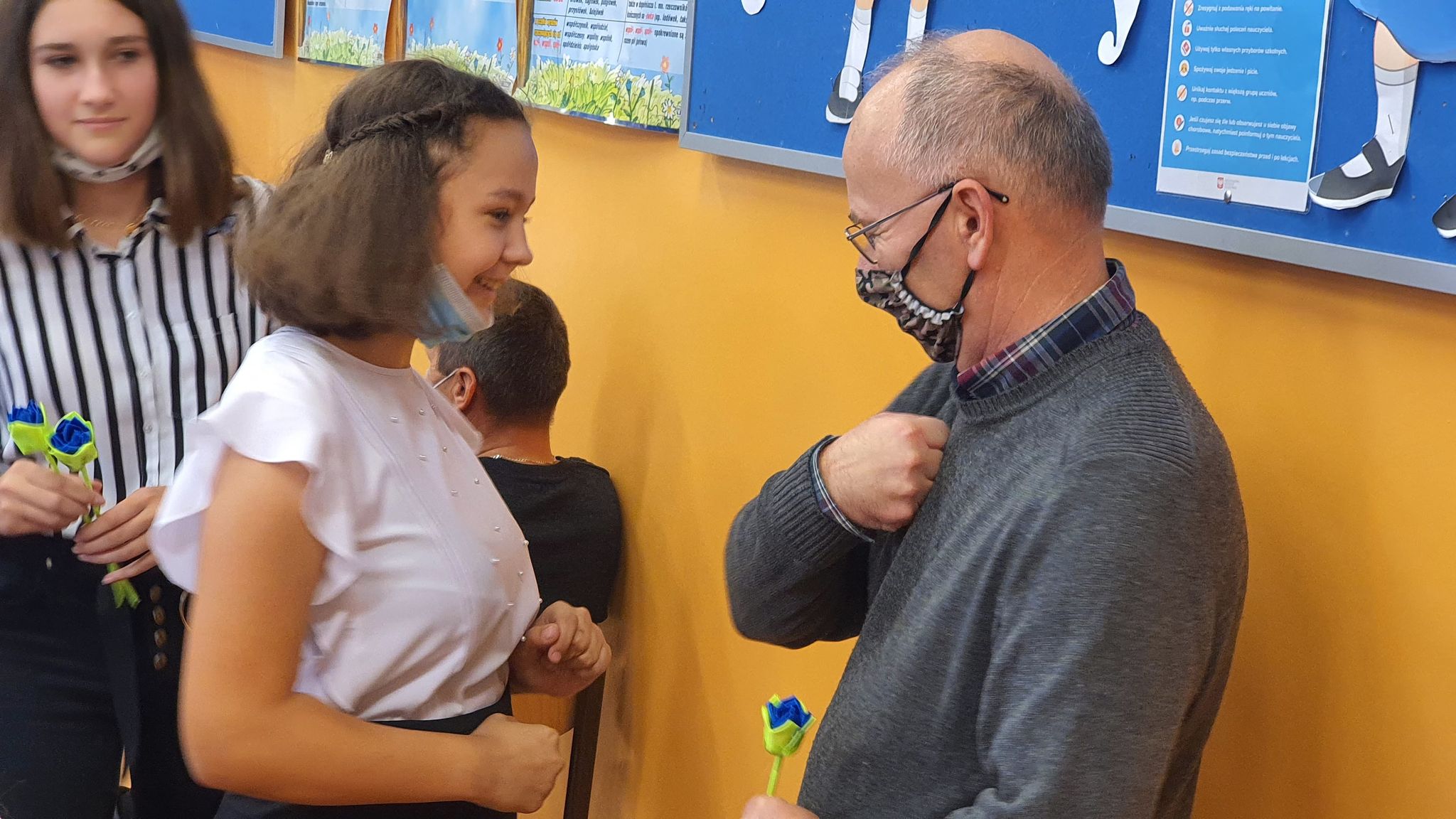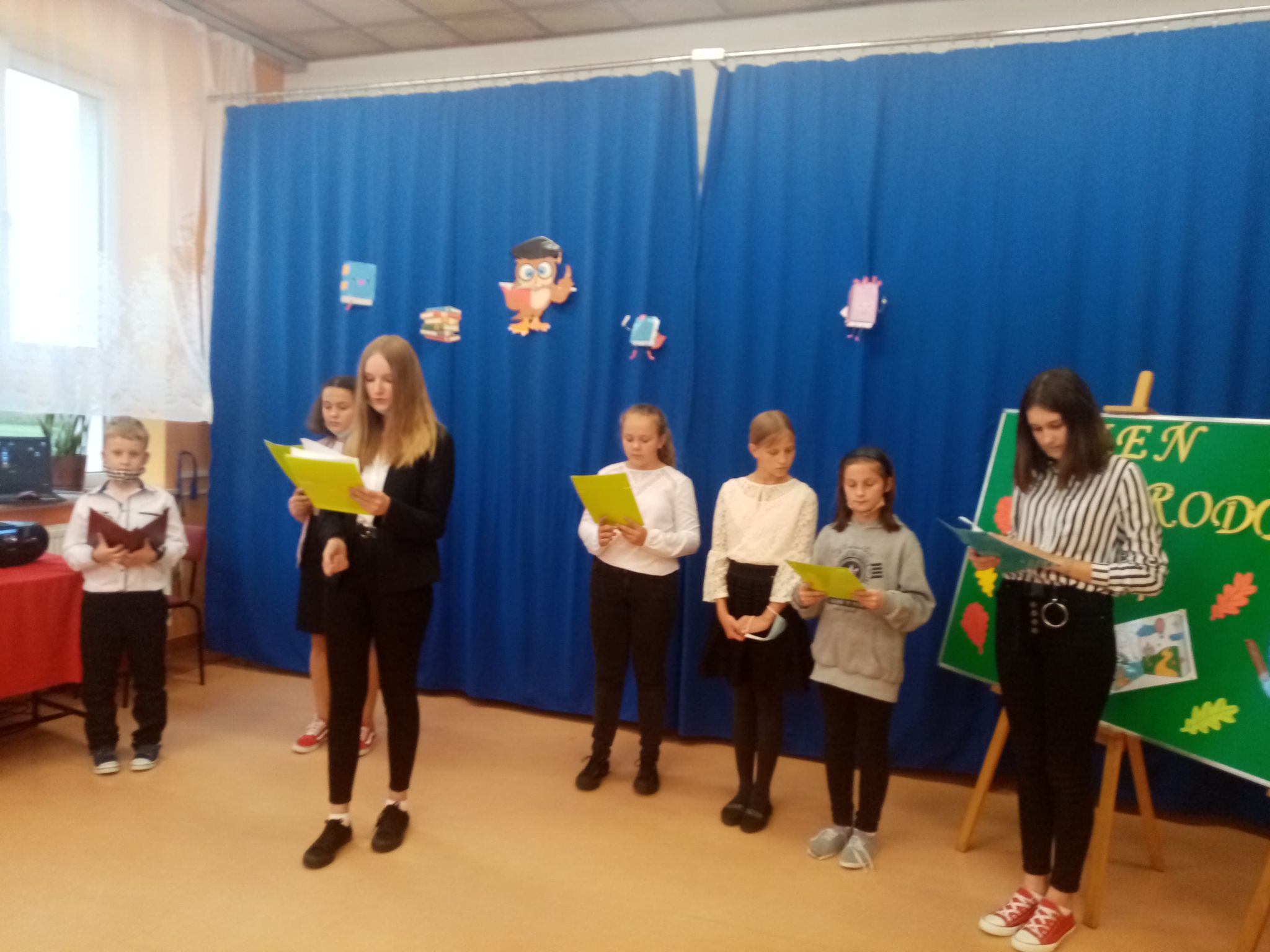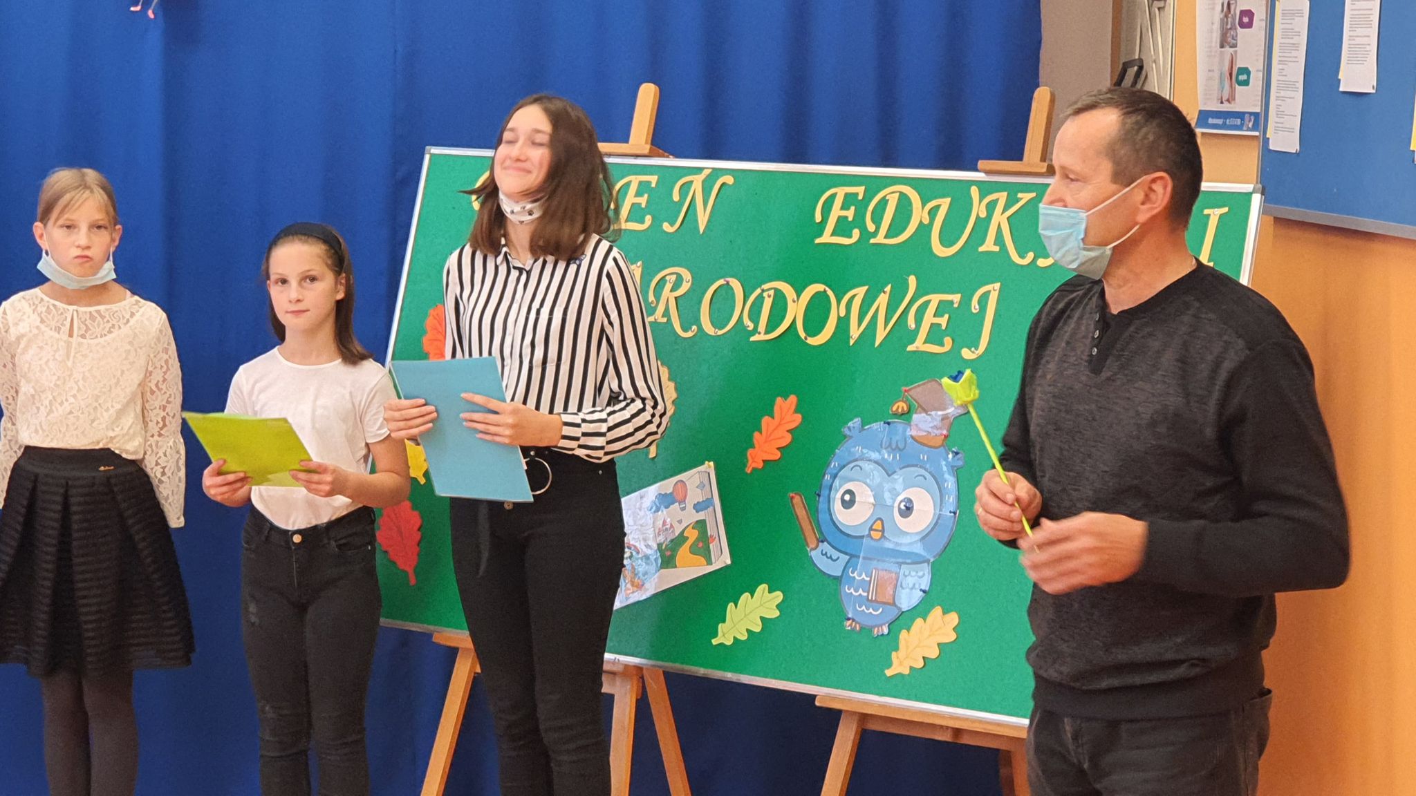 Uczniowie naszej szkoły, aby wyrazić swoją wdzięczność za trud włożony w ich nauczanie i wychowanie, przygotowali krótką część artystyczną z okazji Dnia Edukacji Narodowej. Pierwsza jej połowa była pełna żartów i humoru. Podczas drugiej części występu uczniowie podziękowali za przekazywane wartości i wiedzę. Uczennice wykonały również własnoręcznie symboliczne różyczki z kolorowych tasiemek, które otrzymali wszyscy pracownicy naszej szkoły.