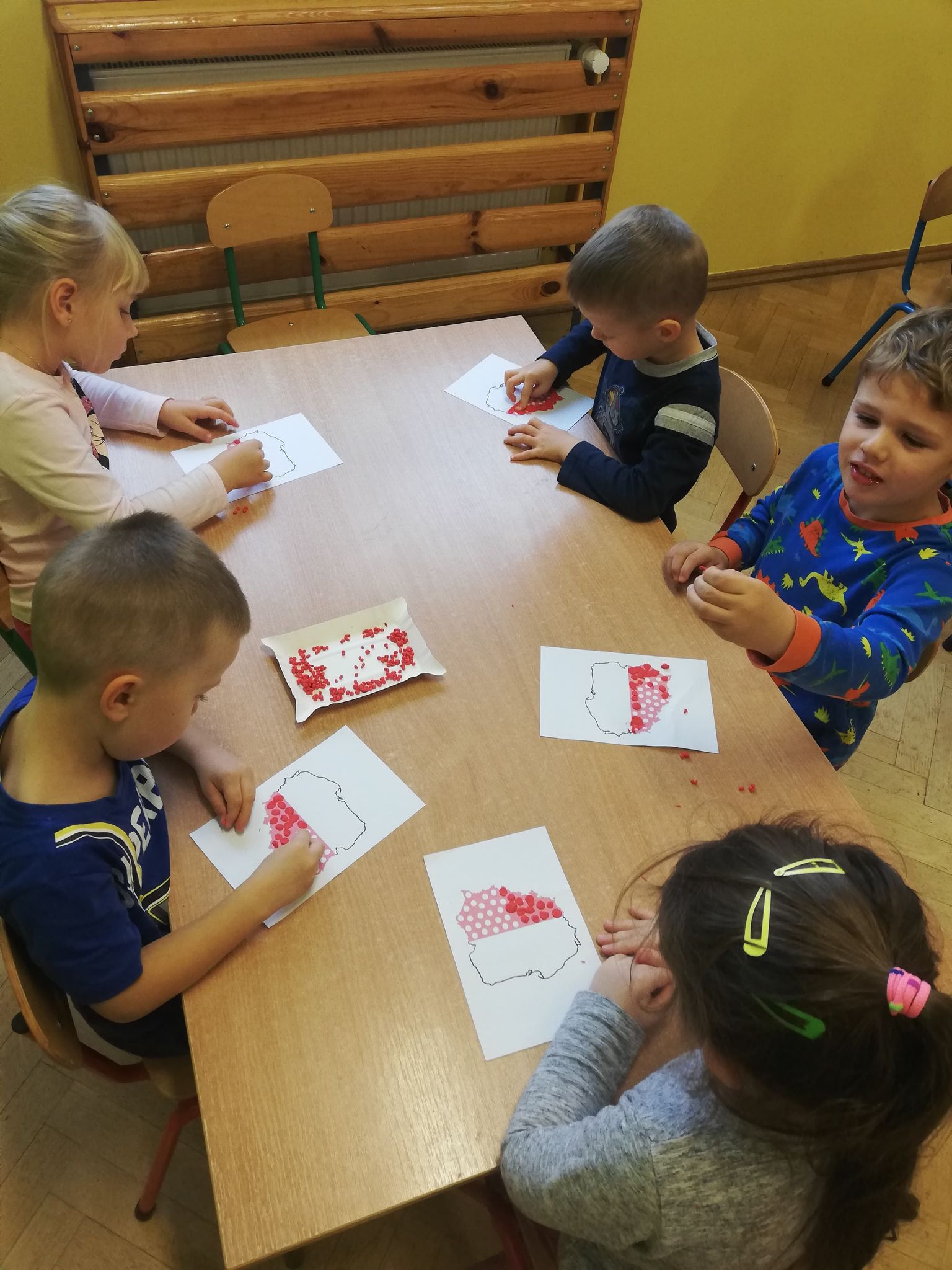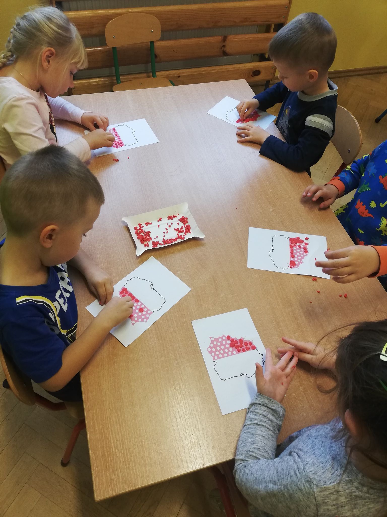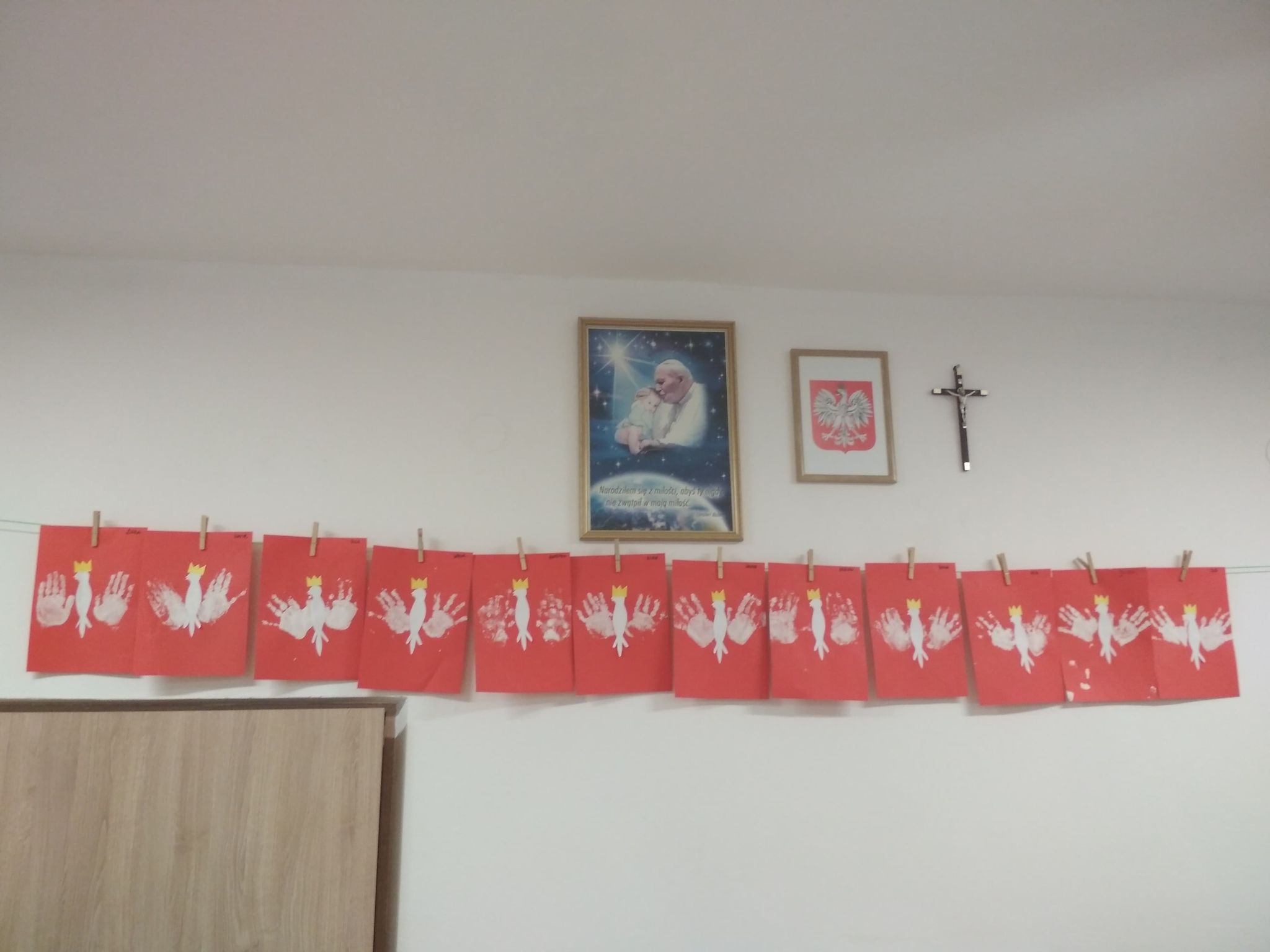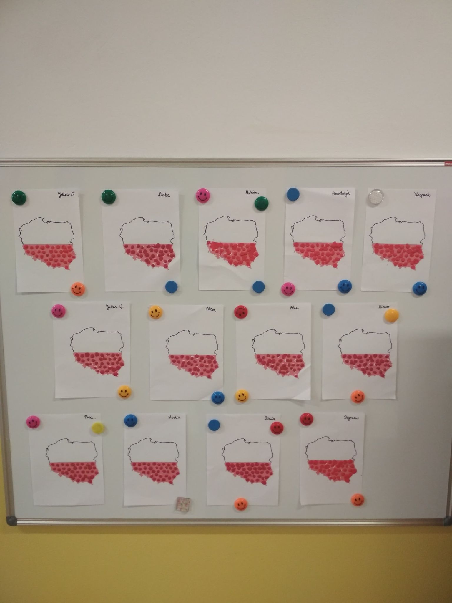 11 listopada obchodzimy w Polsce Narodowe Święto Niepodległości. Już od najmłodszych lat, trzeba rozbudzać u dzieci zainteresowanie swoją Ojczyzną i kształtować poczucie dumy z przynależności do Narodu Polskiego. Dlatego też na zajęciach, organizowanych w ramach projektu "Moje przedszkole w gminie Frampol" dzieci z grupy 3-4-latków poznały symbole narodowe: godło oraz flagę. Podczas zajęć z rytmiki przedszkolaki słuchały naszego hymnu narodowego oraz zapoznały się z wierszem: "Kto ty jesteś? Polak mały". Natomiast na zajęciach z panią psycholog i panią pedagog dzieci obejrzały krótki filmik opowiadający o naszym kraju. Przedszkolaki wykonały również przepiękne prace plastyczne o tematyce patriotycznej. Zapraszamy do obejrzenia fotogalerii.