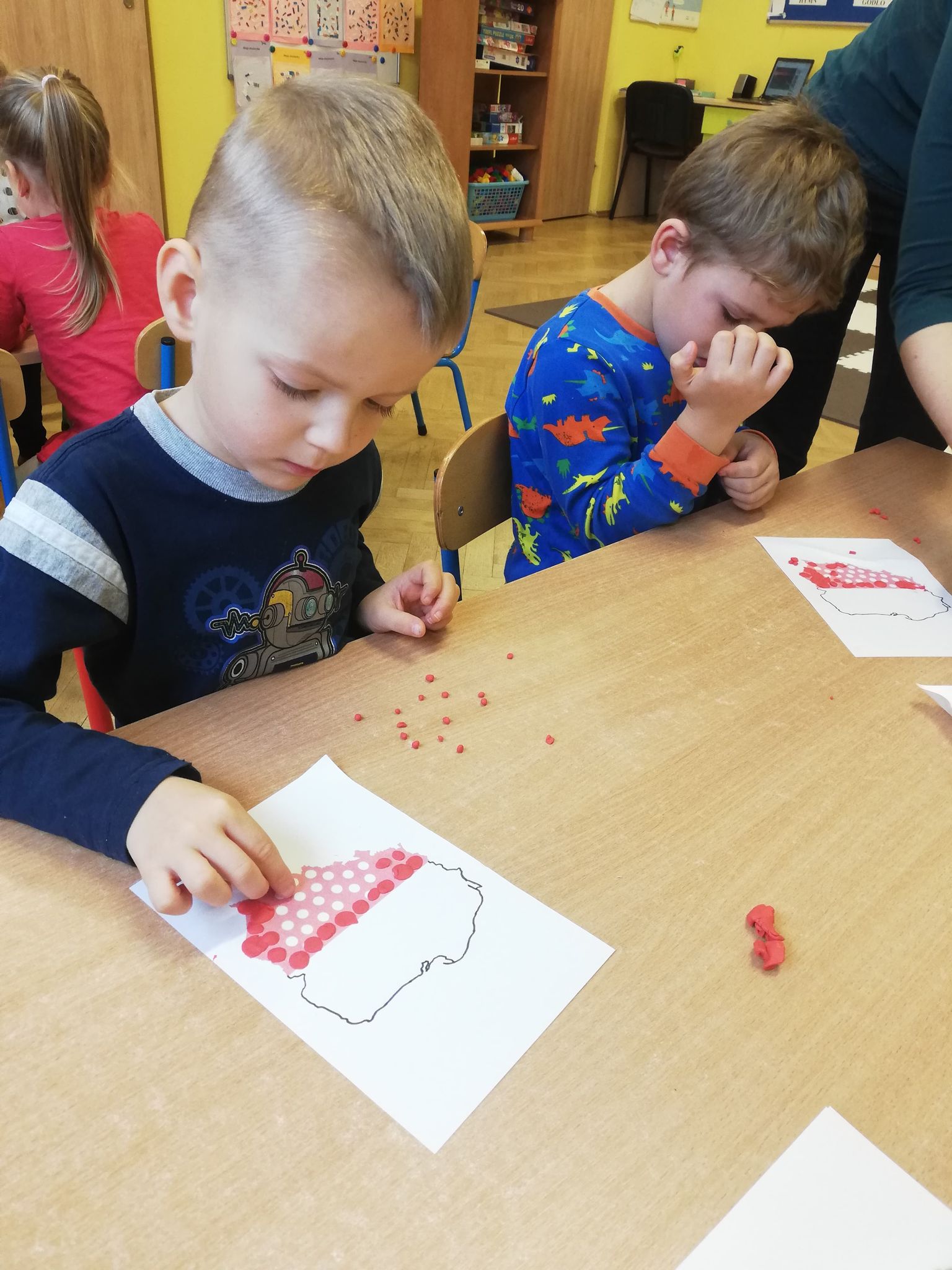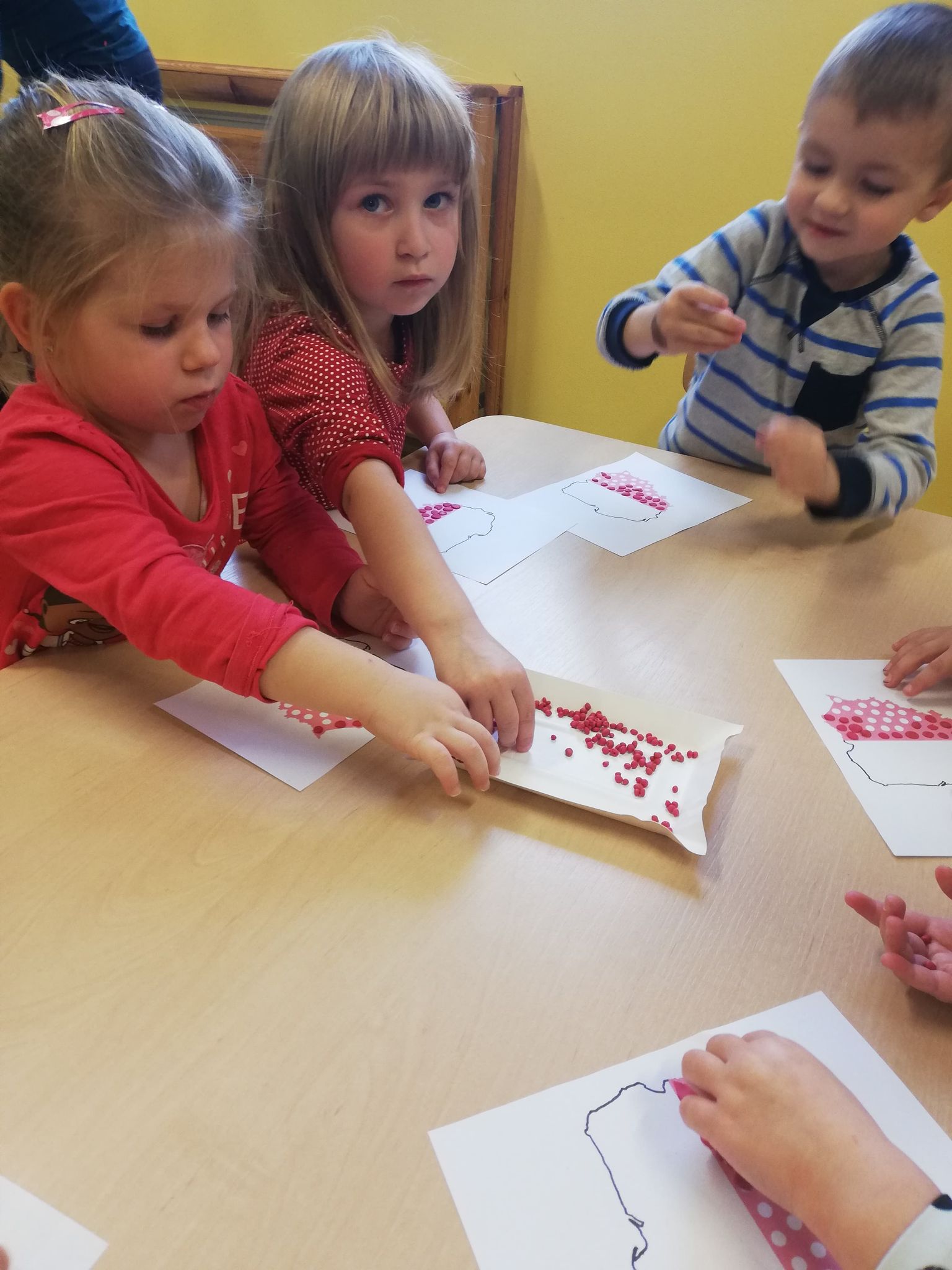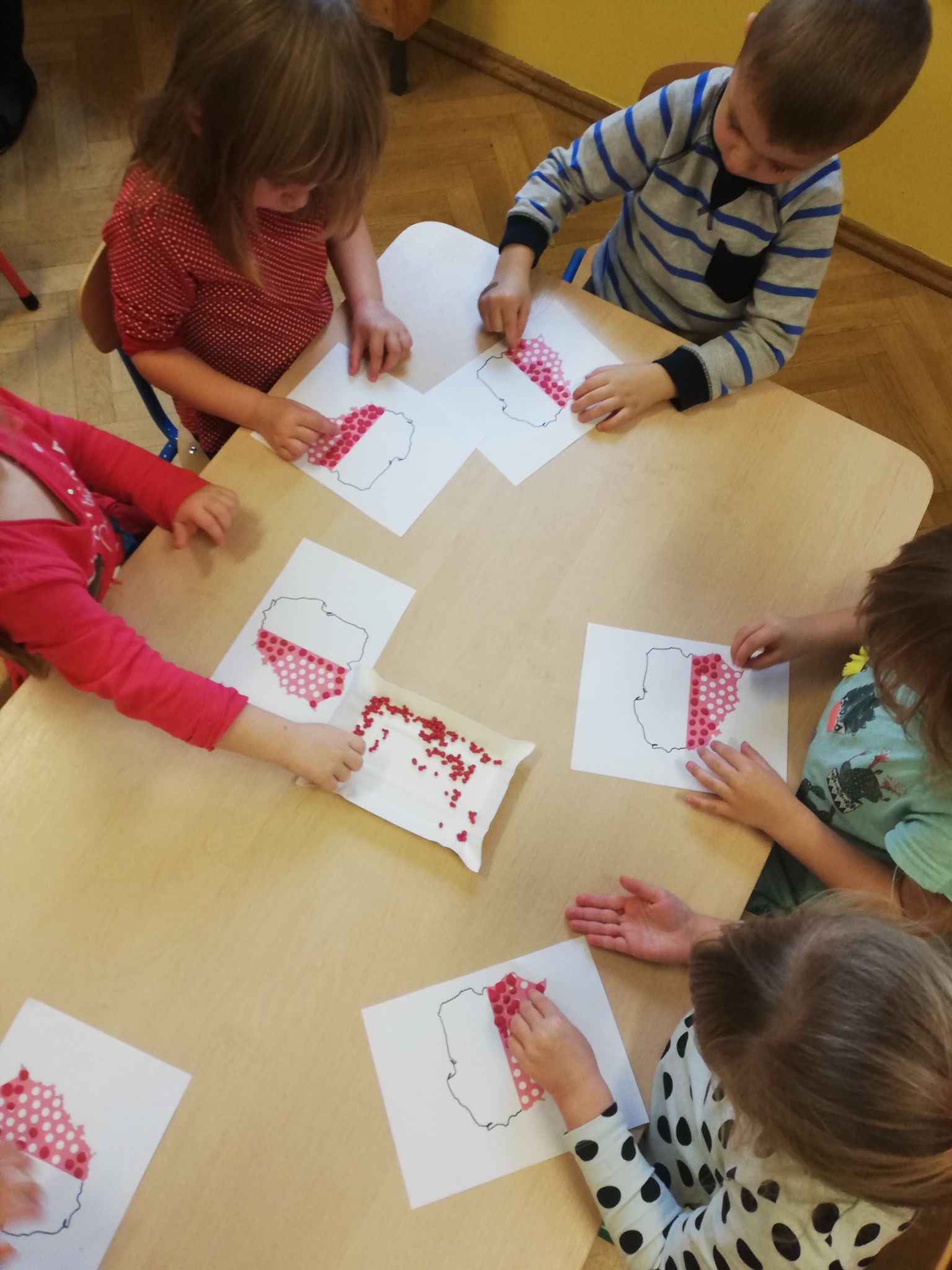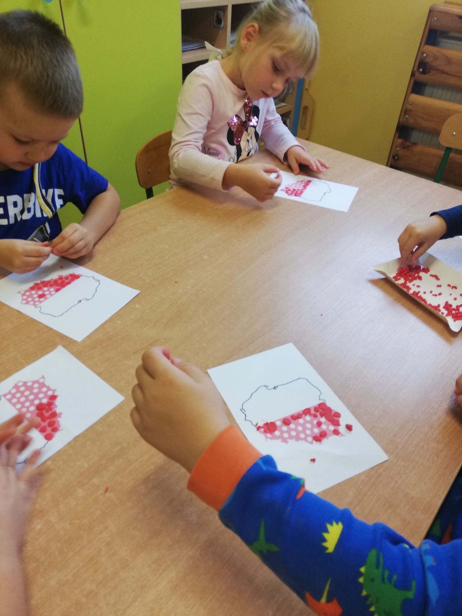 11 listopada obchodzimy w Polsce Narodowe Święto Niepodległości. Już od najmłodszych lat, trzeba rozbudzać u dzieci zainteresowanie swoją Ojczyzną i kształtować poczucie dumy z przynależności do Narodu Polskiego. Dlatego też na zajęciach, organizowanych w ramach projektu "Moje przedszkole w gminie Frampol" dzieci z grupy 3-4-latków poznały symbole narodowe: godło oraz flagę. Podczas zajęć z rytmiki przedszkolaki słuchały naszego hymnu narodowego oraz zapoznały się z wierszem: "Kto ty jesteś? Polak mały". Natomiast na zajęciach z panią psycholog i panią pedagog dzieci obejrzały krótki filmik opowiadający o naszym kraju. Przedszkolaki wykonały również przepiękne prace plastyczne o tematyce patriotycznej. Zapraszamy do obejrzenia fotogalerii.