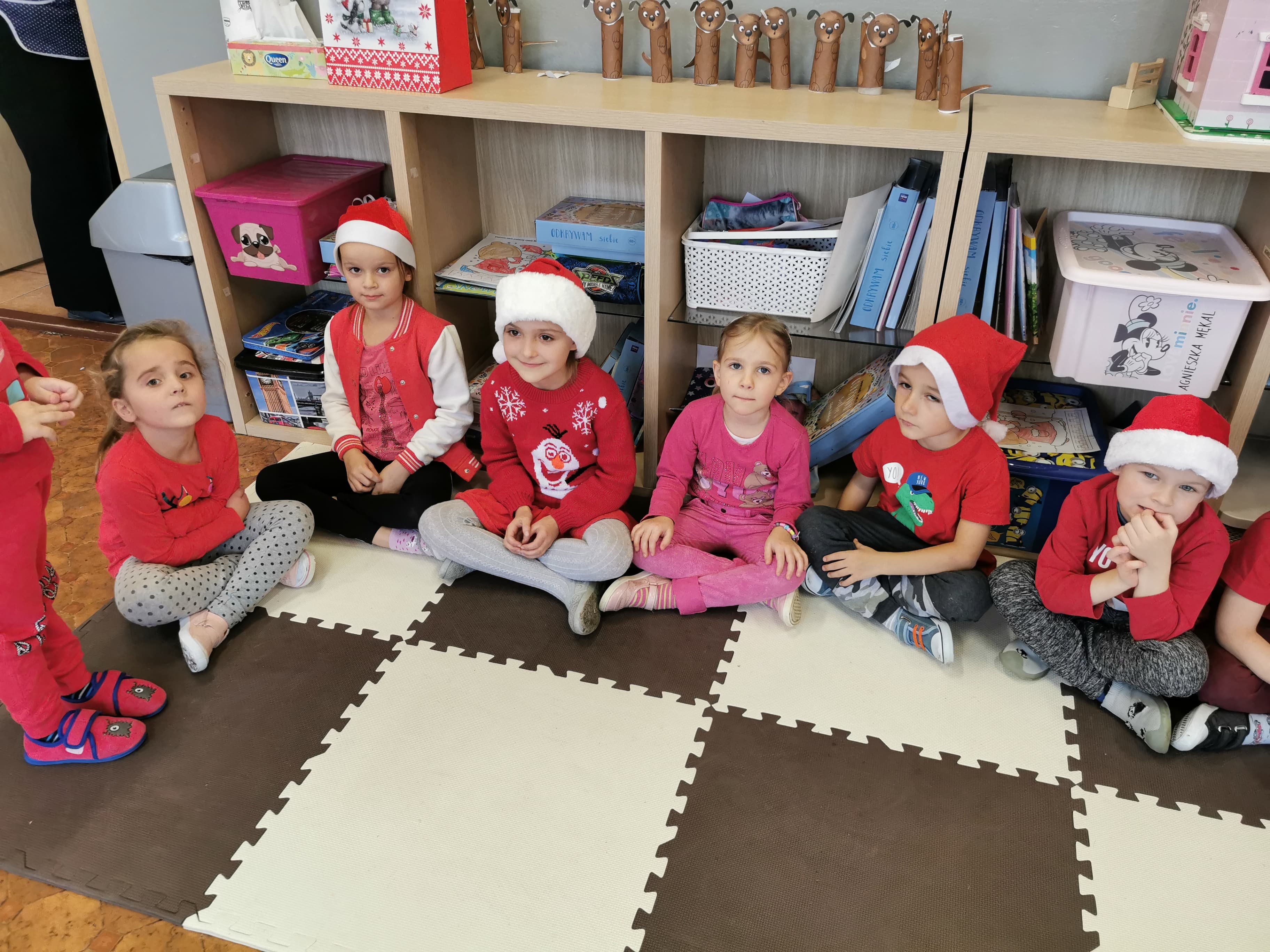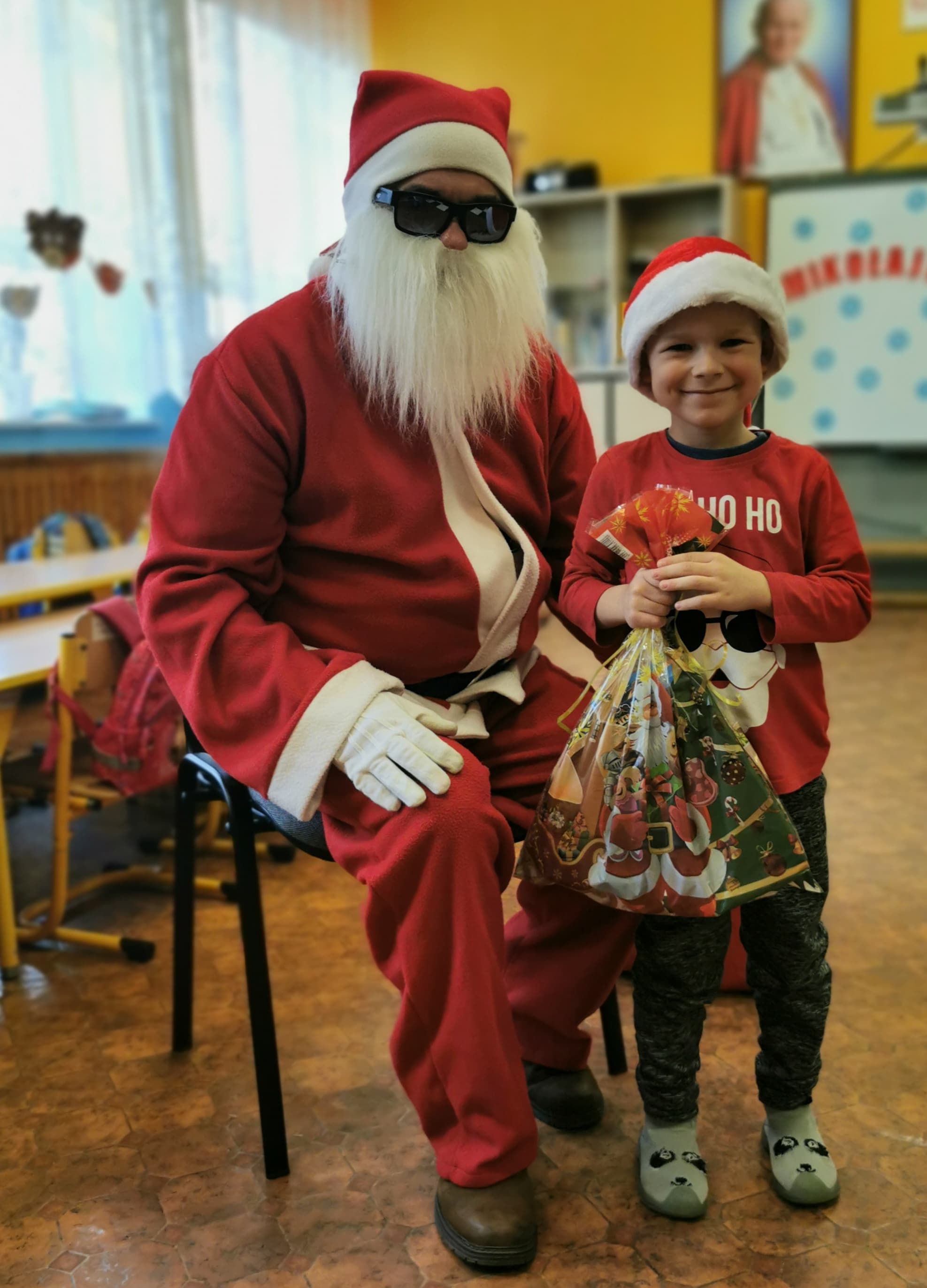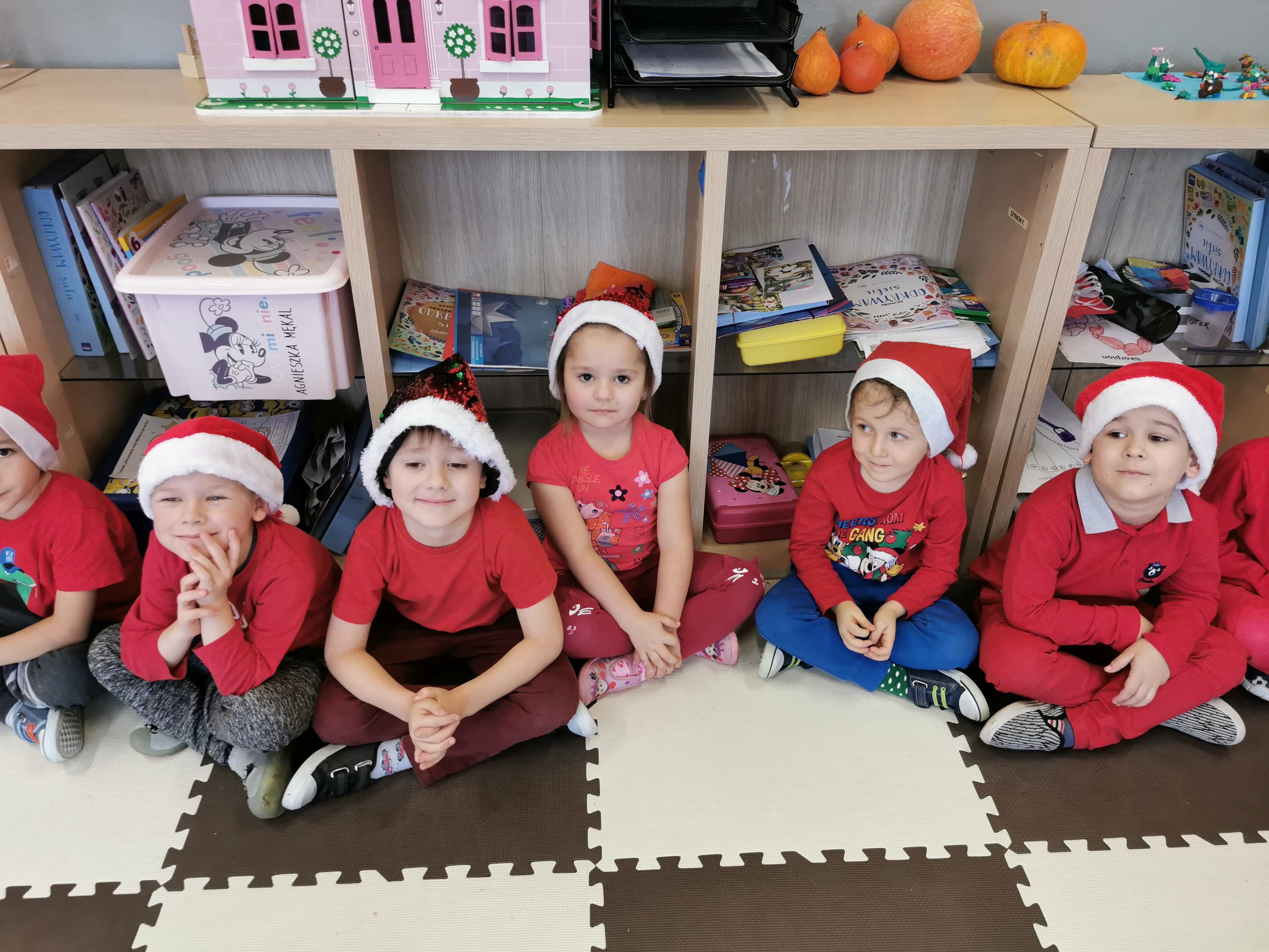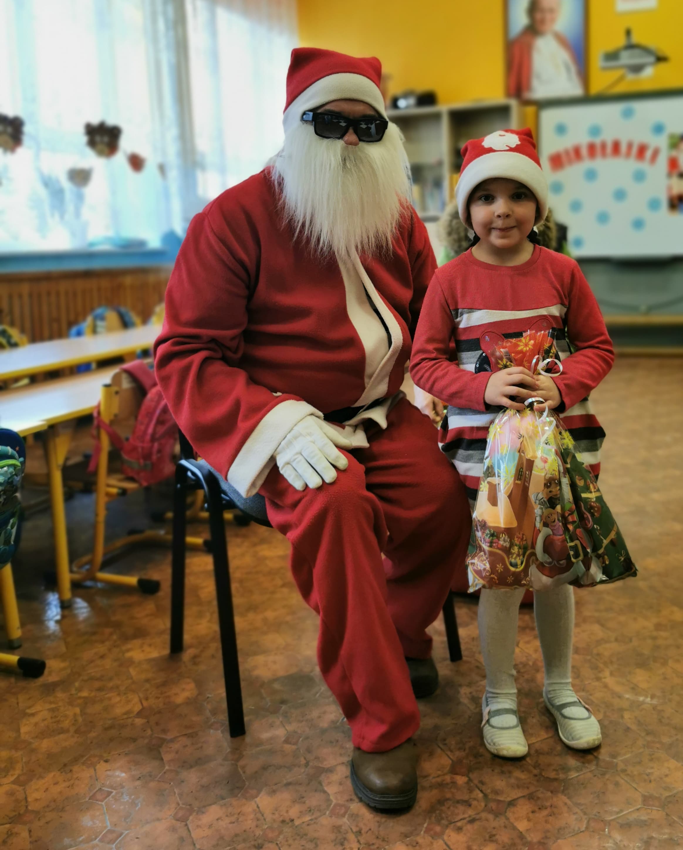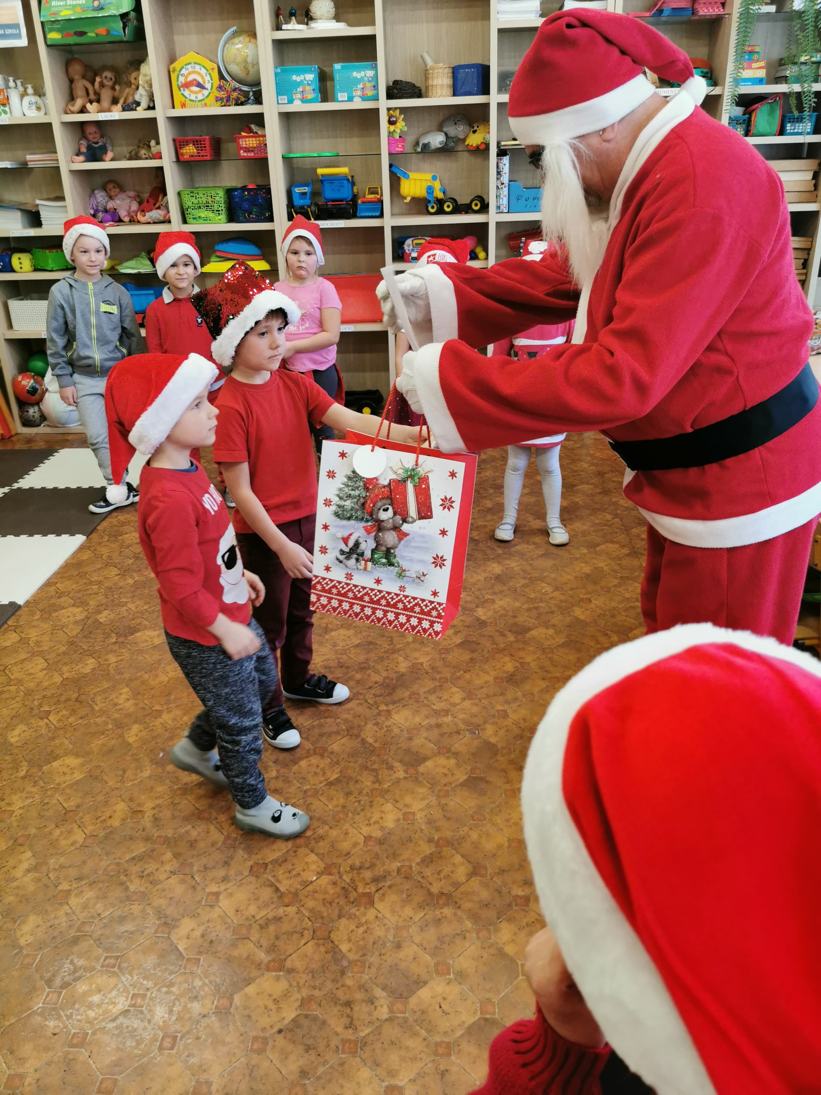 Święty Mikołaj co roku odwiedza wszystkie grzeczne dzieci. Tak też było w zerówce. 4 grudnia grzecznych starszaków odwiedził Święty Mikołaj z workiem pełnym prezentów. Dzieci do przedszkola przyszły pięknie ubrane na czerwono, w mikołajowych czapkach na głowach. Od rana przez okno wyglądały, czy Mikołaj nie zbliża się do naszego przedszkola. Przedszkolaki były radosne i uśmiechnięte a gdy znaleźli się blisko Mikołaja - były zawstydzone. Starszaki Świętego Mikołaja przywitały wierszykami oraz piosenką. Mikołaj oprócz worka pełnego prezentów przywiózł ze sobą mnóstwo uśmiechu. Święty Mikołaj zachęcał dzieci, aby były grzeczne i słuchały pani w przedszkolu oraz rodziców w domu. Święty Mikołaj osobiście wręczył paczkę przedszkolakom, a w niej dla każdego coś dobrego. Starszaki również przygotowały skromny upominek dla Mikołaja, ale żeby go dostać Mikołaj musiał zatańczyć z przedszkolakami taniec. Mikołaj w tańcu wypadł rewelacyjnie. Tak bardzo oczekiwaną przez dzieci wizyta Mikołaja minęła w miłej atmosferze i przyniosła dzieciom wiele radości.