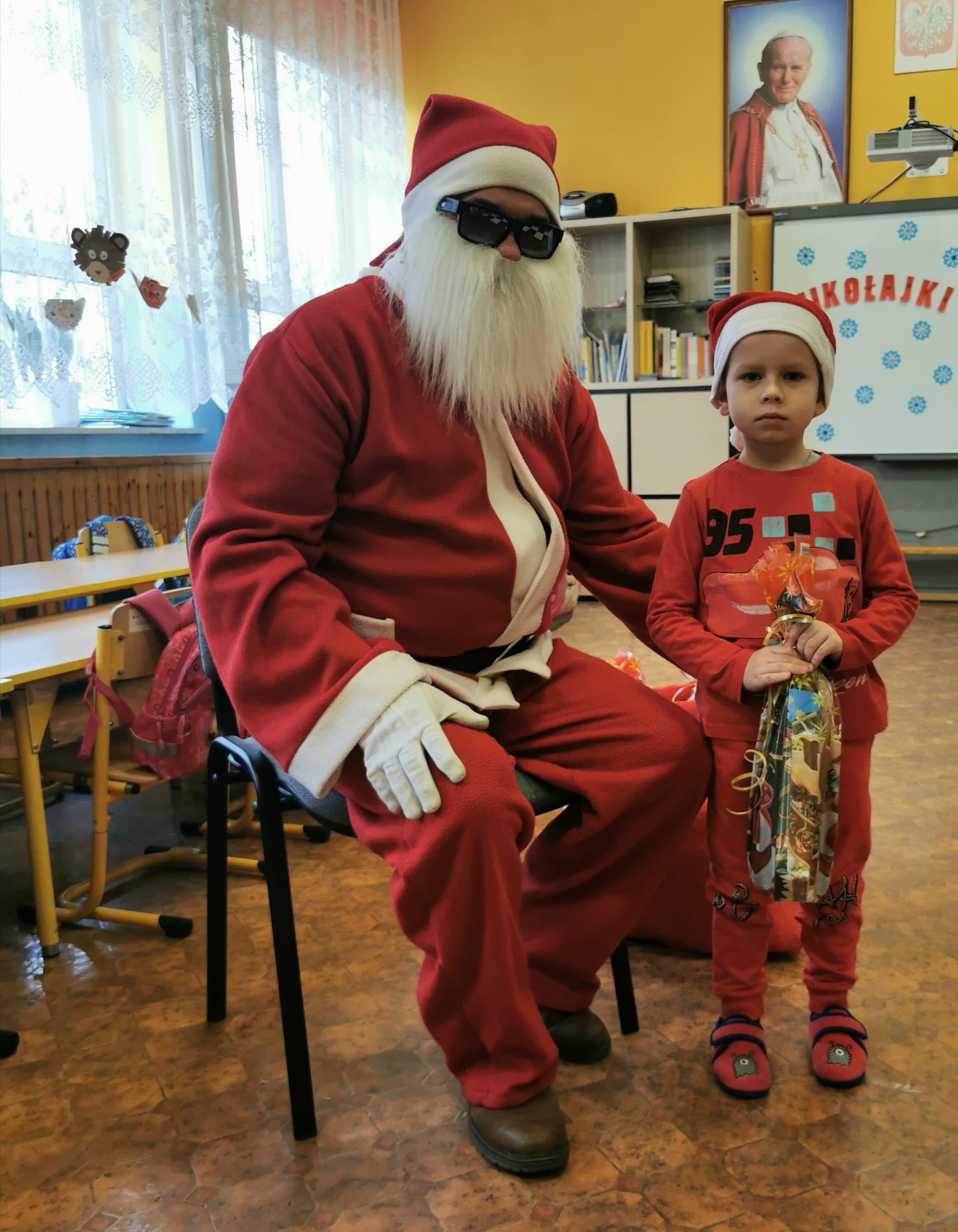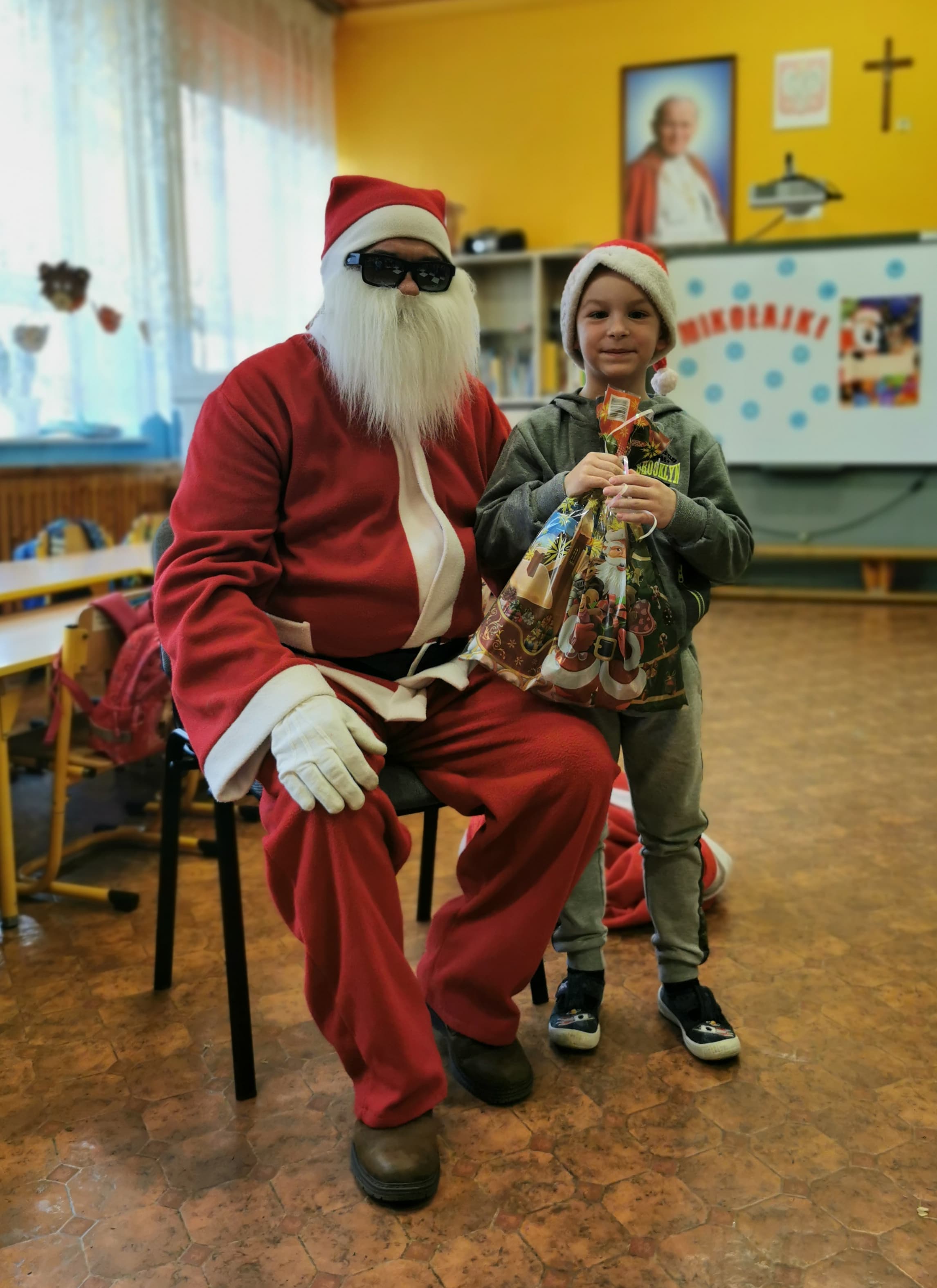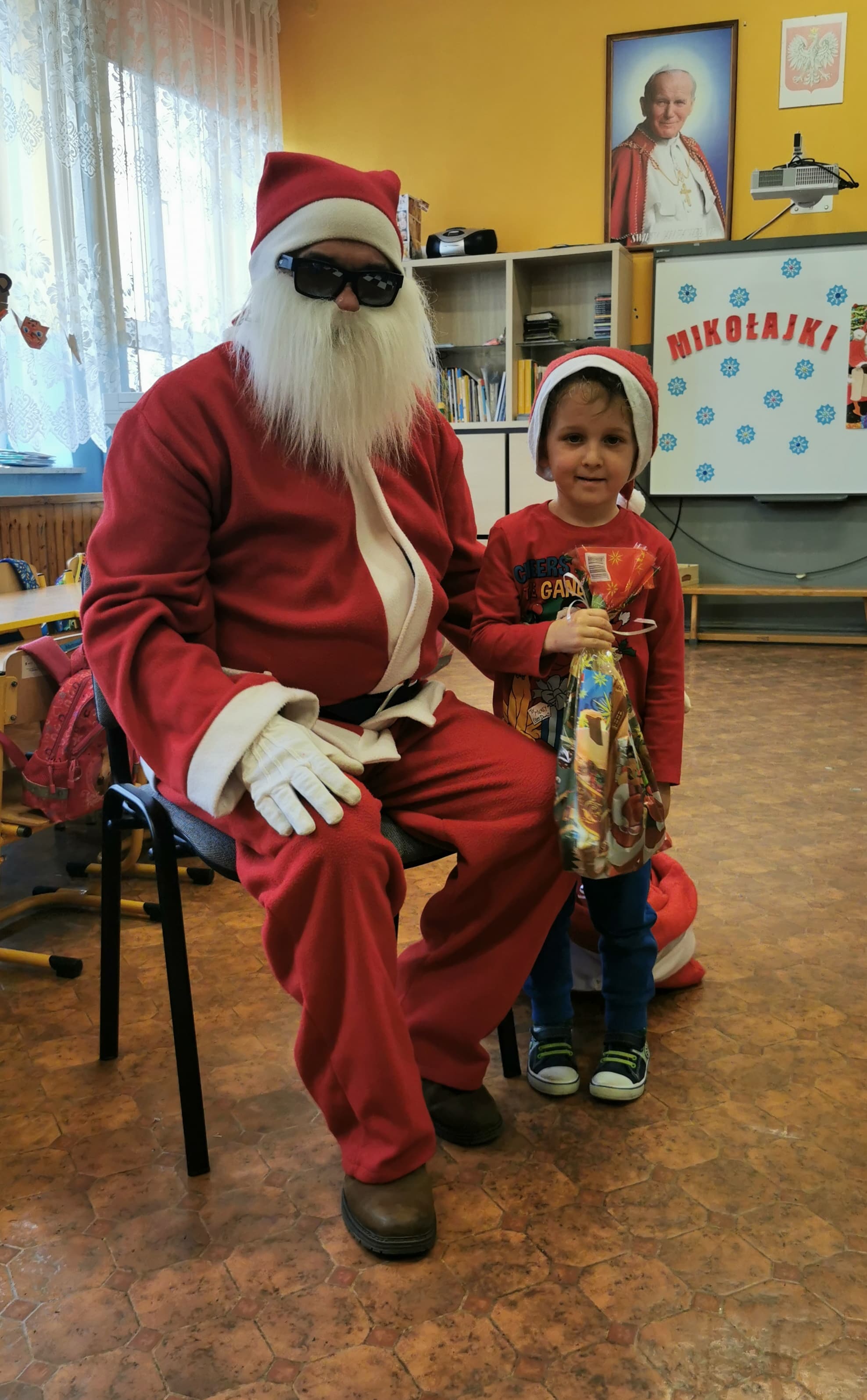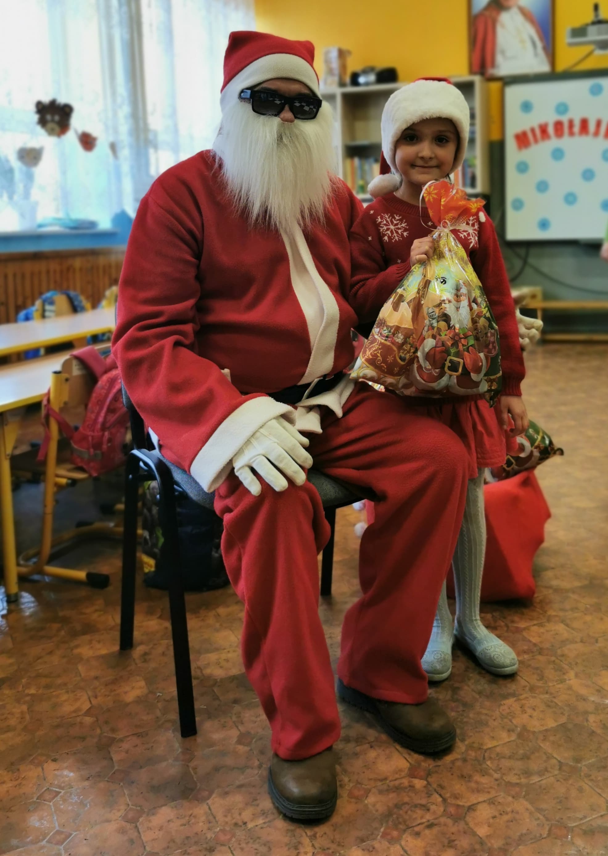 Święty Mikołaj co roku odwiedza wszystkie grzeczne dzieci. Tak też było w zerówce. 4 grudnia grzecznych starszaków odwiedził Święty Mikołaj z workiem pełnym prezentów. Dzieci do przedszkola przyszły pięknie ubrane na czerwono, w mikołajowych czapkach na głowach. Od rana przez okno wyglądały, czy Mikołaj nie zbliża się do naszego przedszkola. Przedszkolaki były radosne i uśmiechnięte a gdy znaleźli się blisko Mikołaja - były zawstydzone. Starszaki Świętego Mikołaja przywitały wierszykami oraz piosenką. Mikołaj oprócz worka pełnego prezentów przywiózł ze sobą mnóstwo uśmiechu. Święty Mikołaj zachęcał dzieci, aby były grzeczne i słuchały pani w przedszkolu oraz rodziców w domu. Święty Mikołaj osobiście wręczył paczkę przedszkolakom, a w niej dla każdego coś dobrego. Starszaki również przygotowały skromny upominek dla Mikołaja, ale żeby go dostać Mikołaj musiał zatańczyć z przedszkolakami taniec. Mikołaj w tańcu wypadł rewelacyjnie. Tak bardzo oczekiwaną przez dzieci wizyta Mikołaja minęła w miłej atmosferze i przyniosła dzieciom wiele radości.