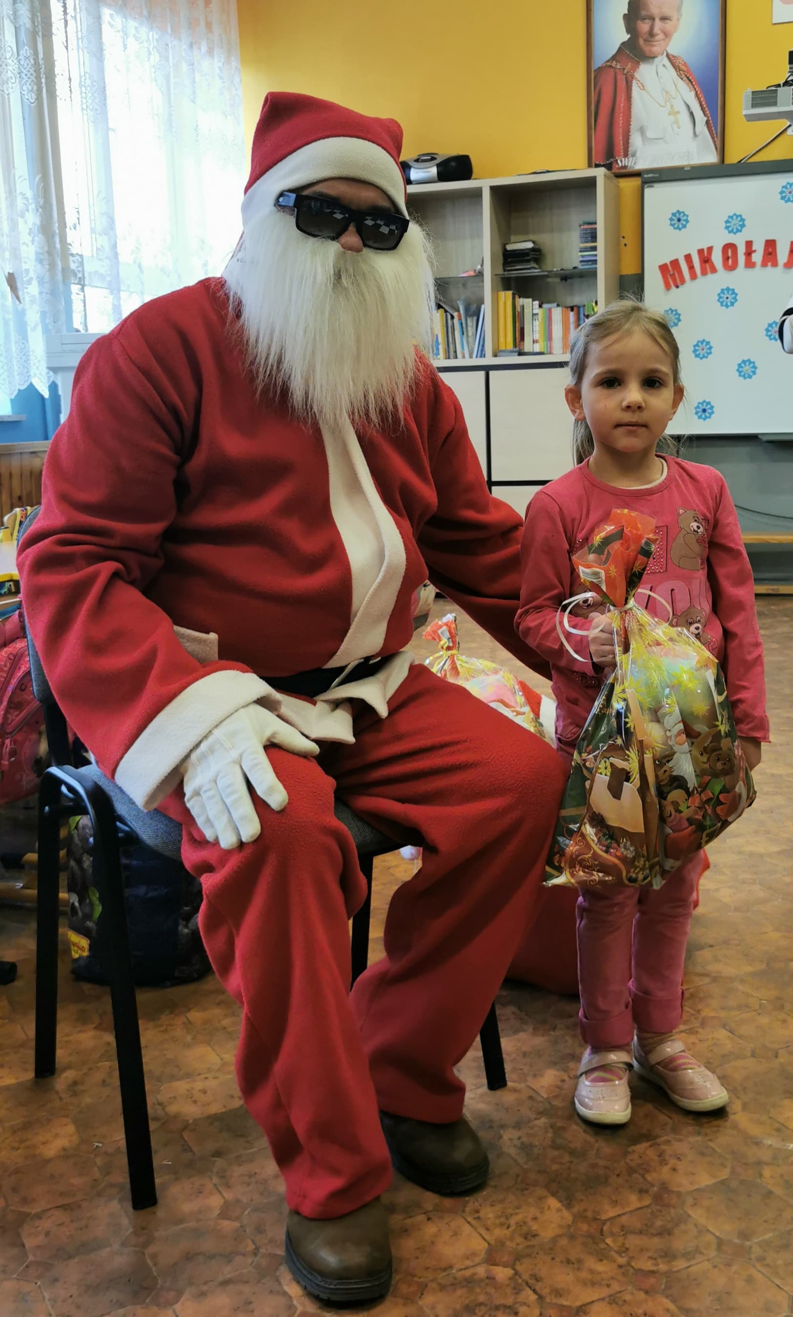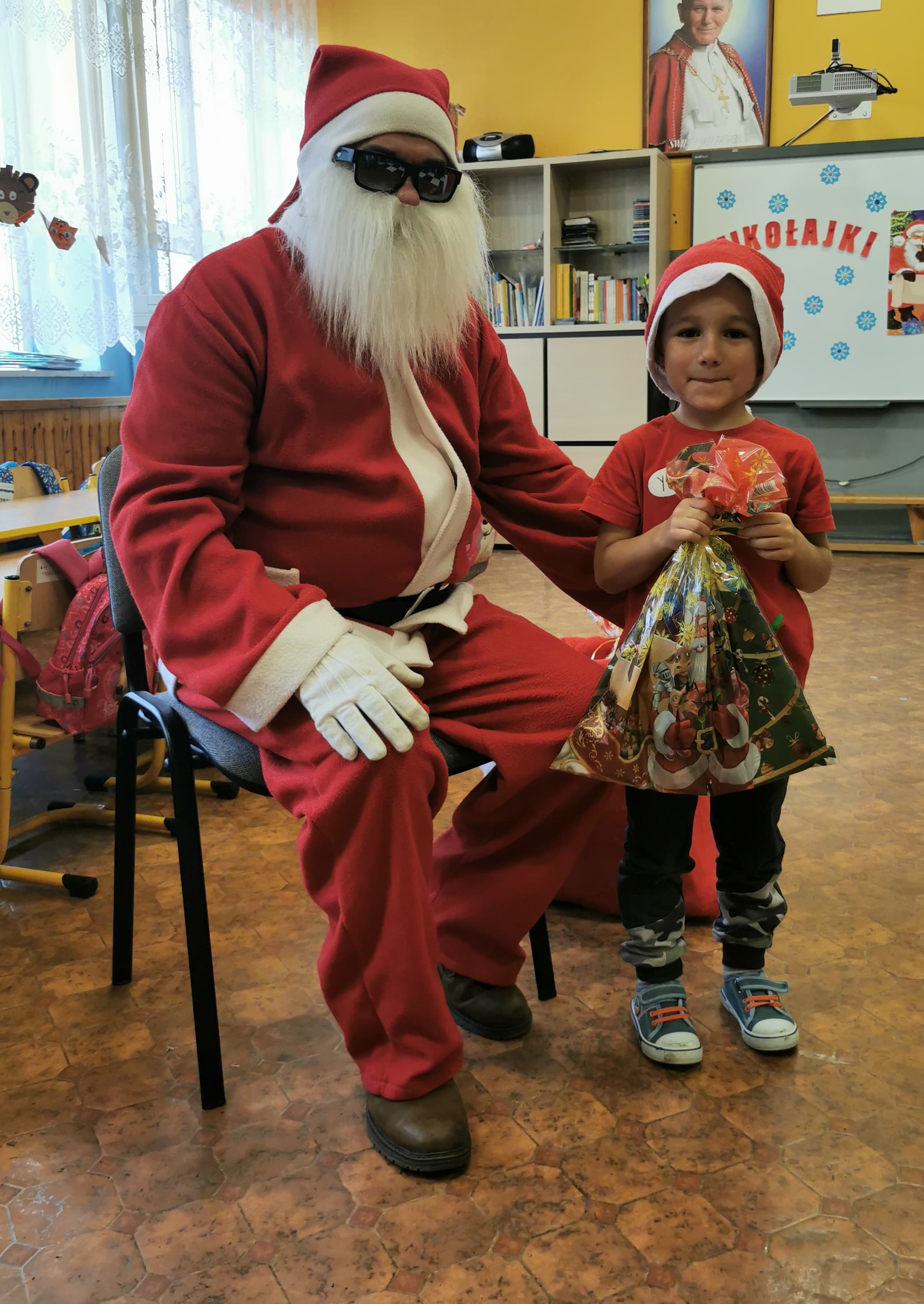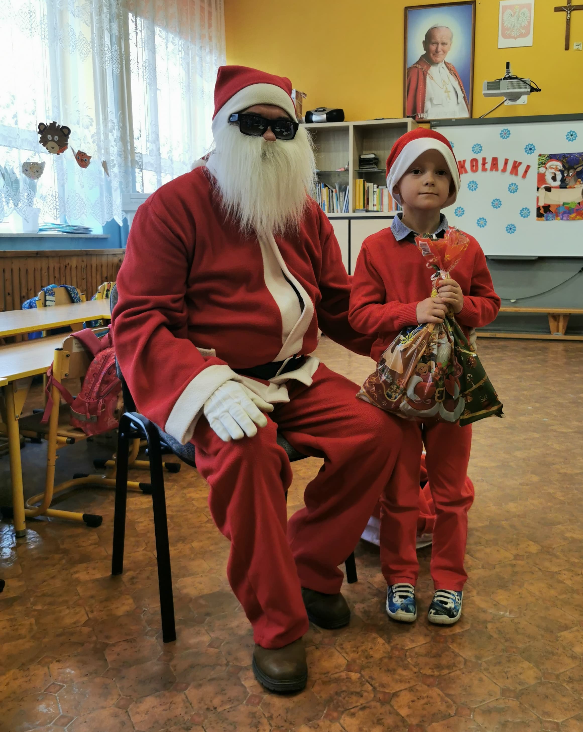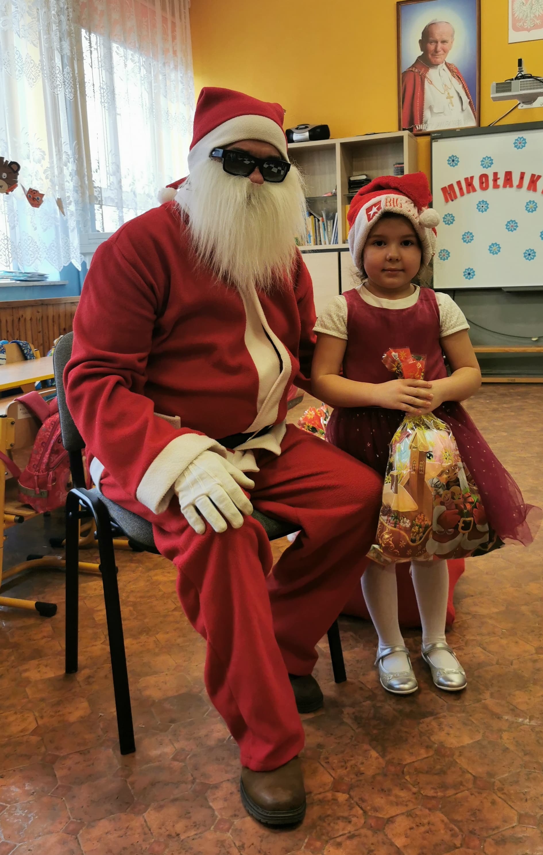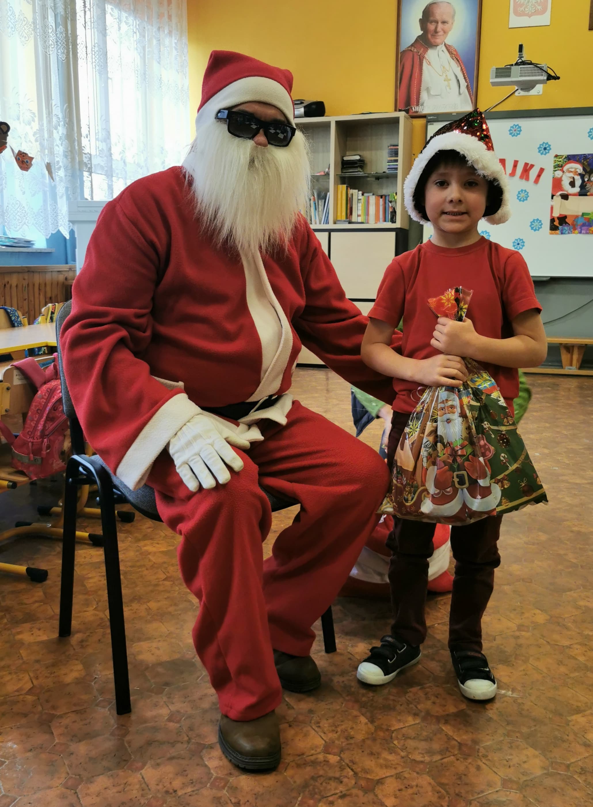 Święty Mikołaj co roku odwiedza wszystkie grzeczne dzieci. Tak też było w zerówce. 4 grudnia grzecznych starszaków odwiedził Święty Mikołaj z workiem pełnym prezentów. Dzieci do przedszkola przyszły pięknie ubrane na czerwono, w mikołajowych czapkach na głowach. Od rana przez okno wyglądały, czy Mikołaj nie zbliża się do naszego przedszkola. Przedszkolaki były radosne i uśmiechnięte a gdy znaleźli się blisko Mikołaja - były zawstydzone. Starszaki Świętego Mikołaja przywitały wierszykami oraz piosenką. Mikołaj oprócz worka pełnego prezentów przywiózł ze sobą mnóstwo uśmiechu. Święty Mikołaj zachęcał dzieci, aby były grzeczne i słuchały pani w przedszkolu oraz rodziców w domu. Święty Mikołaj osobiście wręczył paczkę przedszkolakom, a w niej dla każdego coś dobrego. Starszaki również przygotowały skromny upominek dla Mikołaja, ale żeby go dostać Mikołaj musiał zatańczyć z przedszkolakami taniec. Mikołaj w tańcu wypadł rewelacyjnie. Tak bardzo oczekiwaną przez dzieci wizyta Mikołaja minęła w miłej atmosferze i przyniosła dzieciom wiele radości.