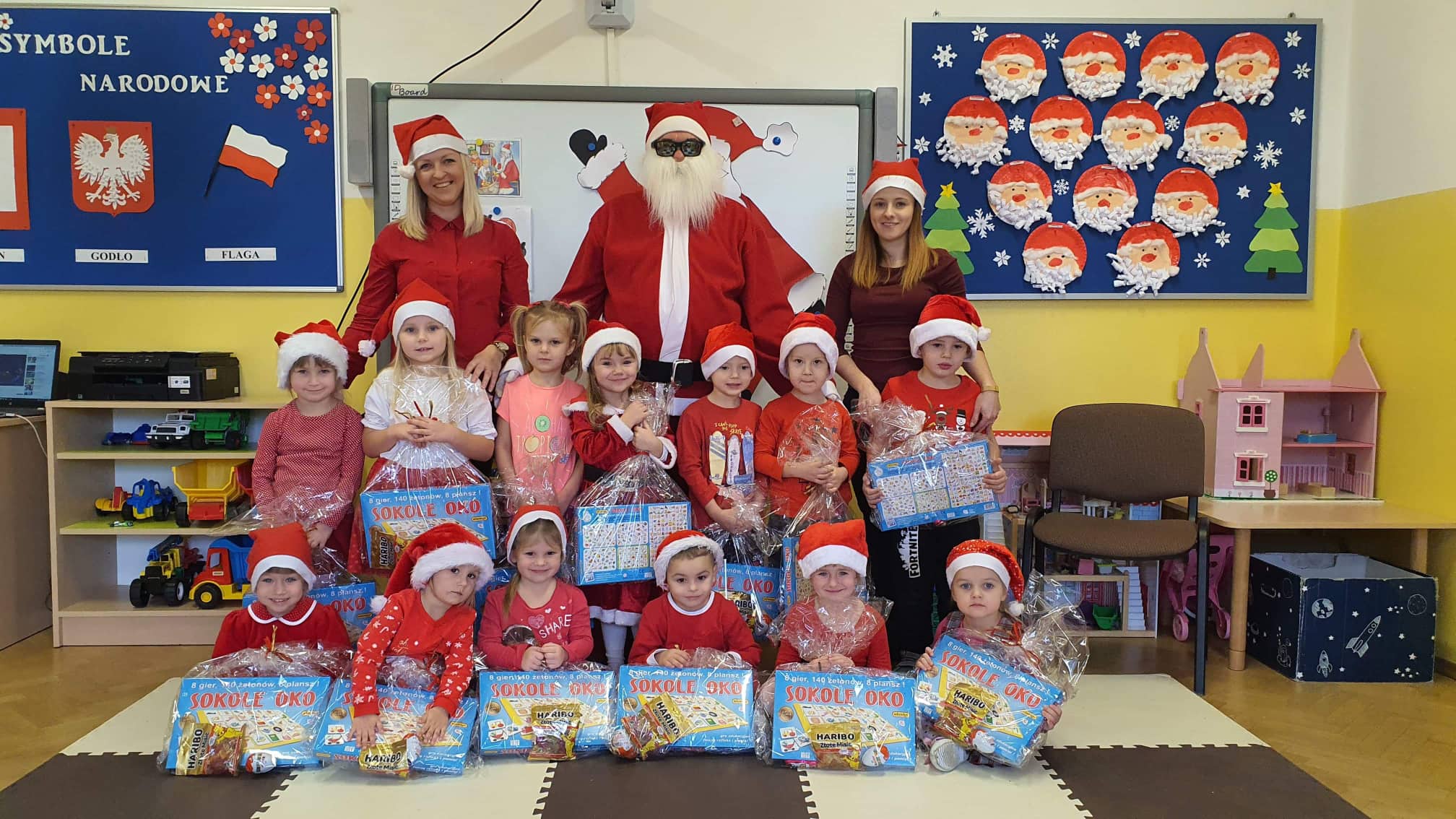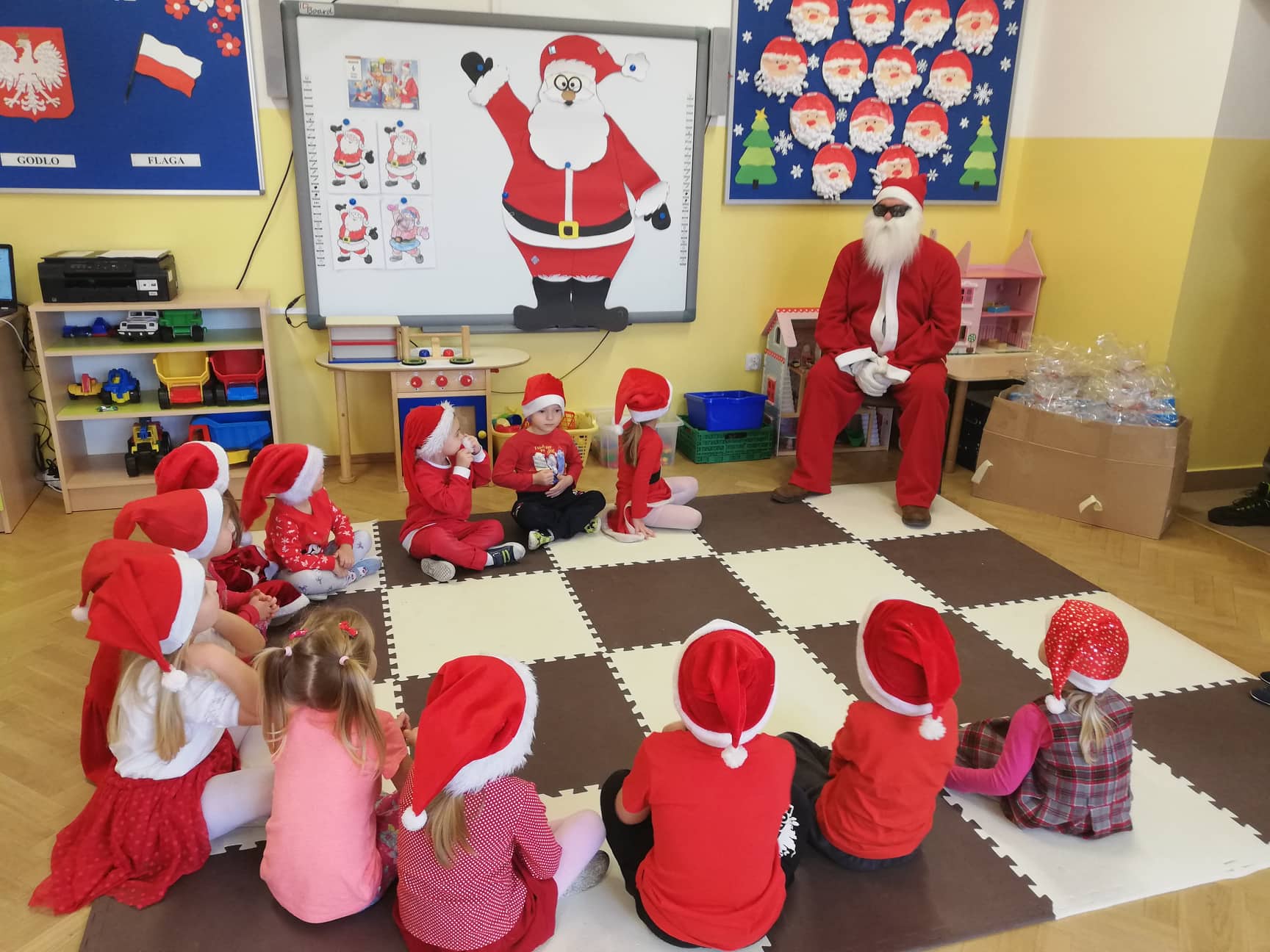 W piątek 4 grudnia grupę 3-4-latków odwiedził długo wyczekiwany Gość. Już od samego rana dzieci nasłuchiwały dźwięku dzwoneczków, a gdy w końcu Święty Mikołaj ukazał się w drzwiach do sali, na twarzach przedszkolaków pojawił się uśmiech. Dzieci przywitały Mikołaja piosenką i wierszykiem. A po rozmowie z Gościem otrzymały od niego prezenty. Miło spędzony czas uświetniły wspólne zdjęcia z ulubionym Świętym. Na koniec dzieci obiecały, że będą grzeczne i zaprosiły Mikołaja na odwiedziny w przyszłym roku.