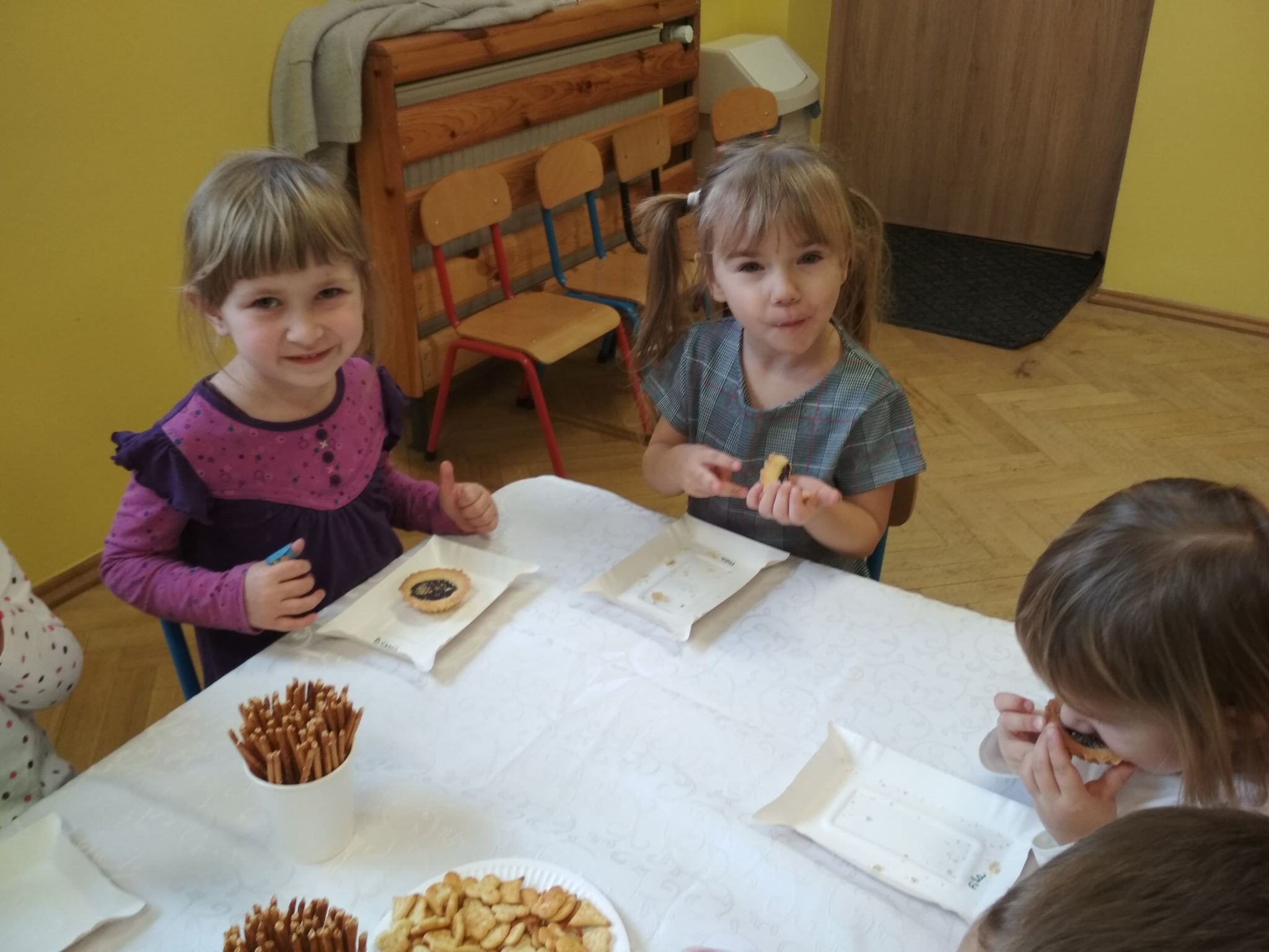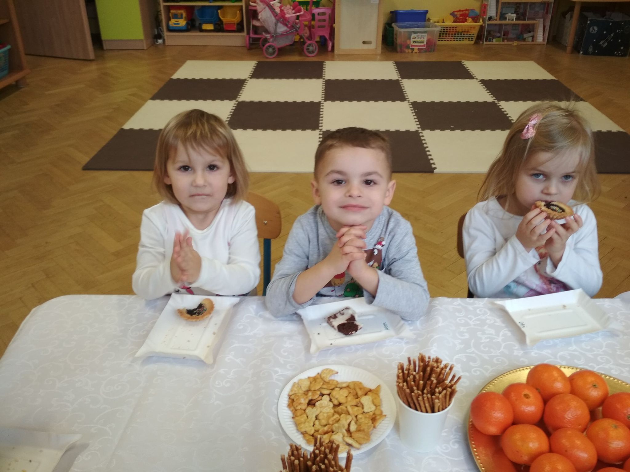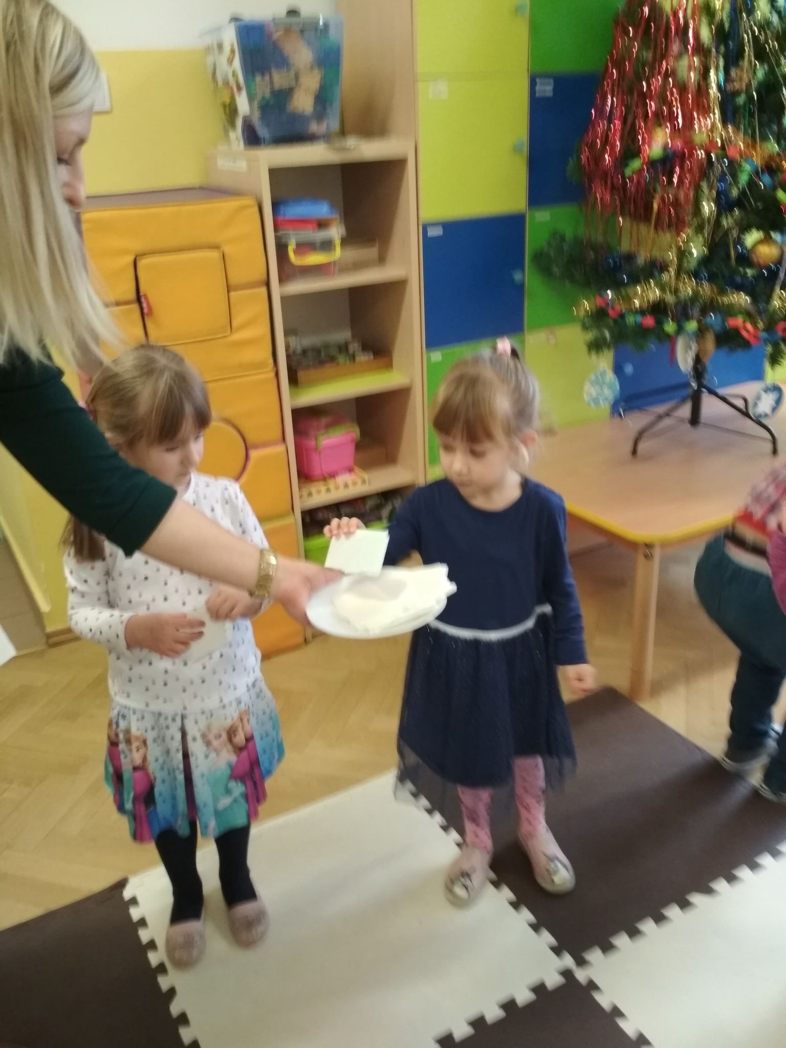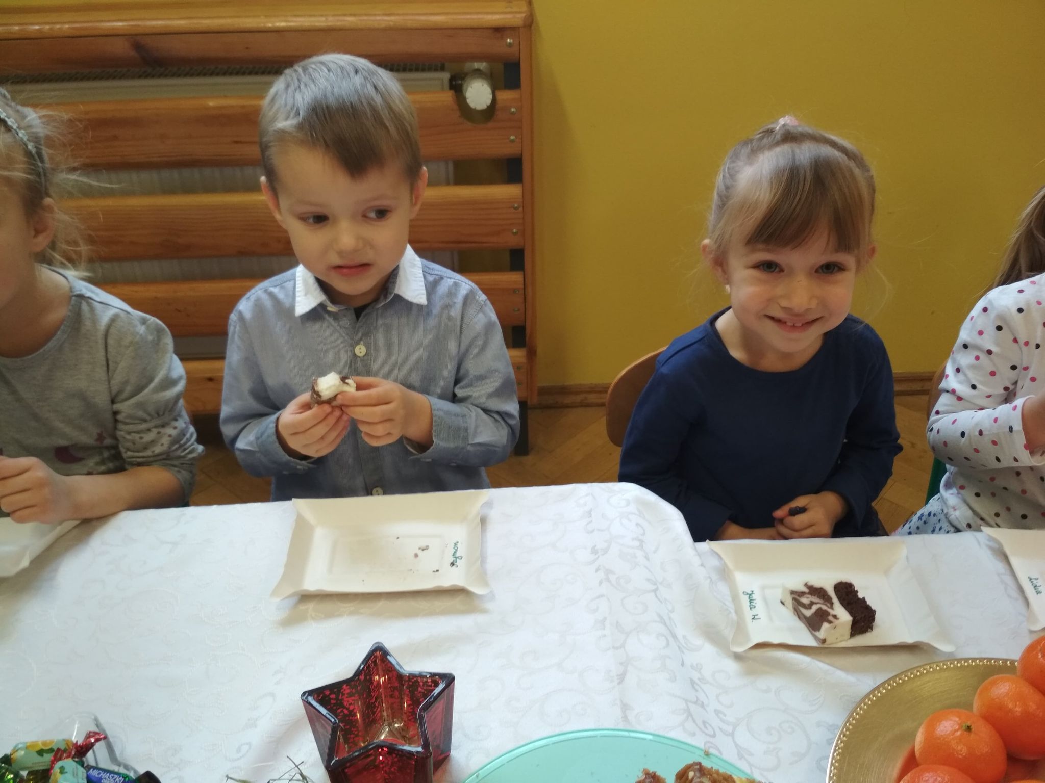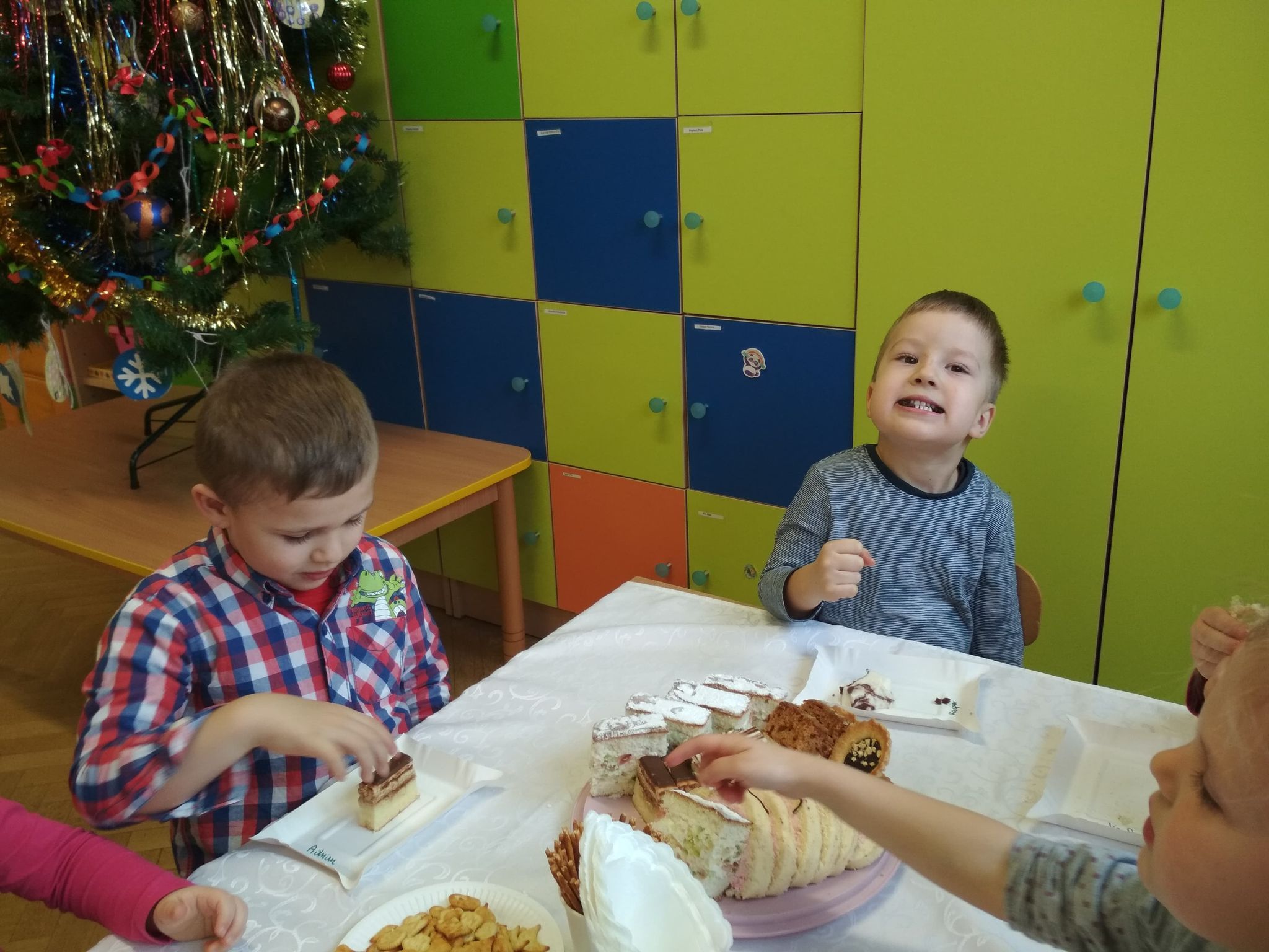 Święta Bożego Narodzenia są najpiękniejszymi świętami, na które czekają nie tylko dzieci, ale i dorośli. Są to święta najbliższe i najdroższe naszym sercom, gdyż towarzyszy im niepowtarzalna i wyjątkowa atmosfera. Jest to również okazja do wspólnego spotkania i wspólnego kolędowania. Świąteczny nastrój zapanował również w naszej grupie. 22 grudnia odbyło się wigilijne spotkanie w grupie dzieci 3-4-letnich. Bożonarodzeniowy klimat dopełniały okolicznościowe dekoracje, lampki, choinka oraz odświętnie nakryty stół z poczęstunkiem przygotowanym przez rodziców. Nie zabrakło również wspólnego śpiewania kolęd.Wigilia w naszej grupie upłynęła w miłej i serdecznej atmosferze, na długo pozostanie w naszej pamięci. Takie szczególne momenty wzmacniają wzajemne relacje oraz integrują. Dzieci życzą wszystkim Wesołych i Spokojnych Świąt Bożego Narodzenia :)
