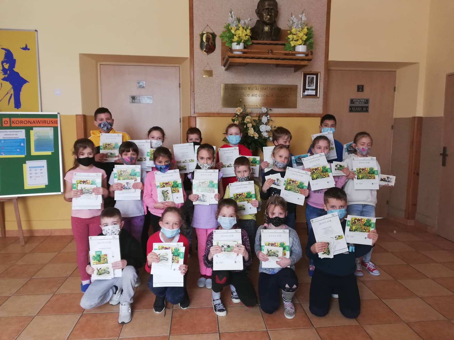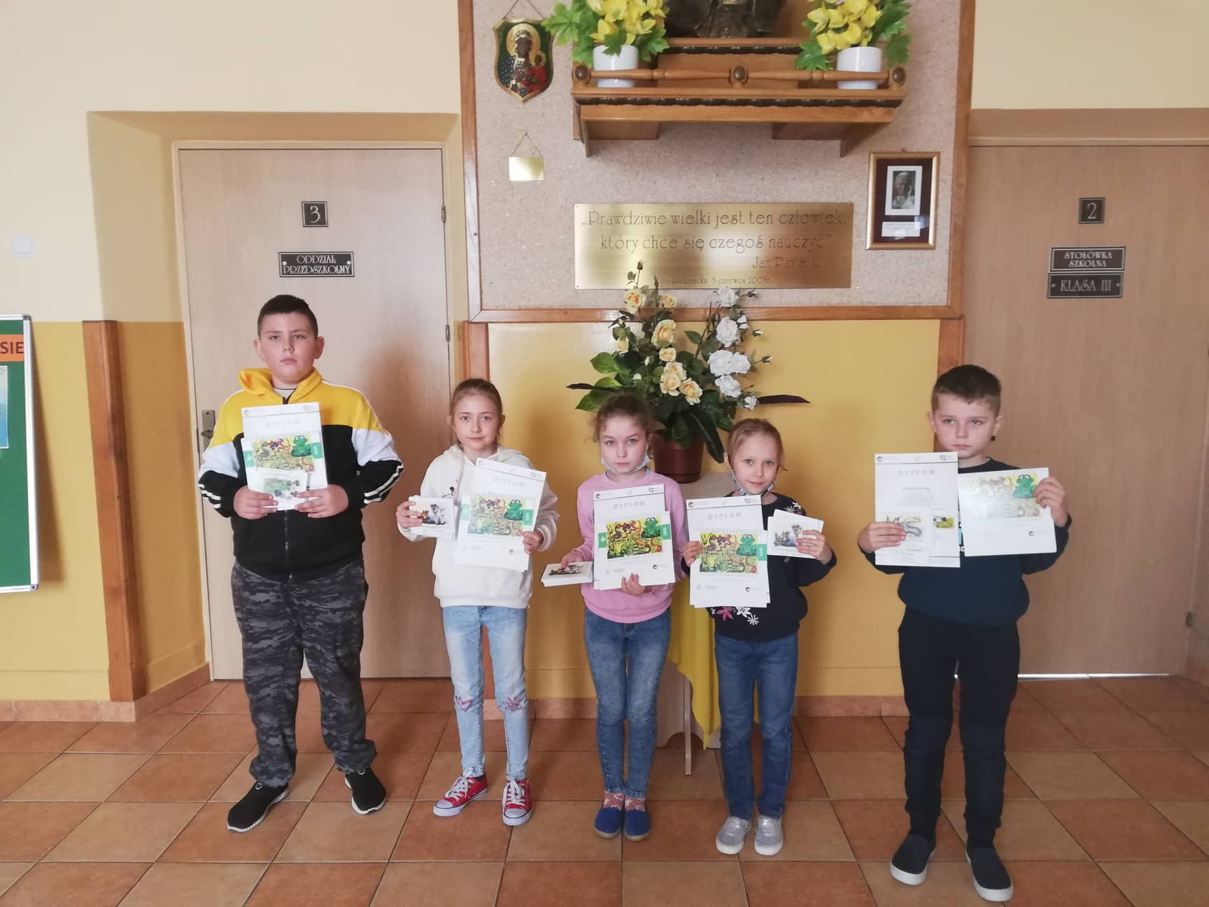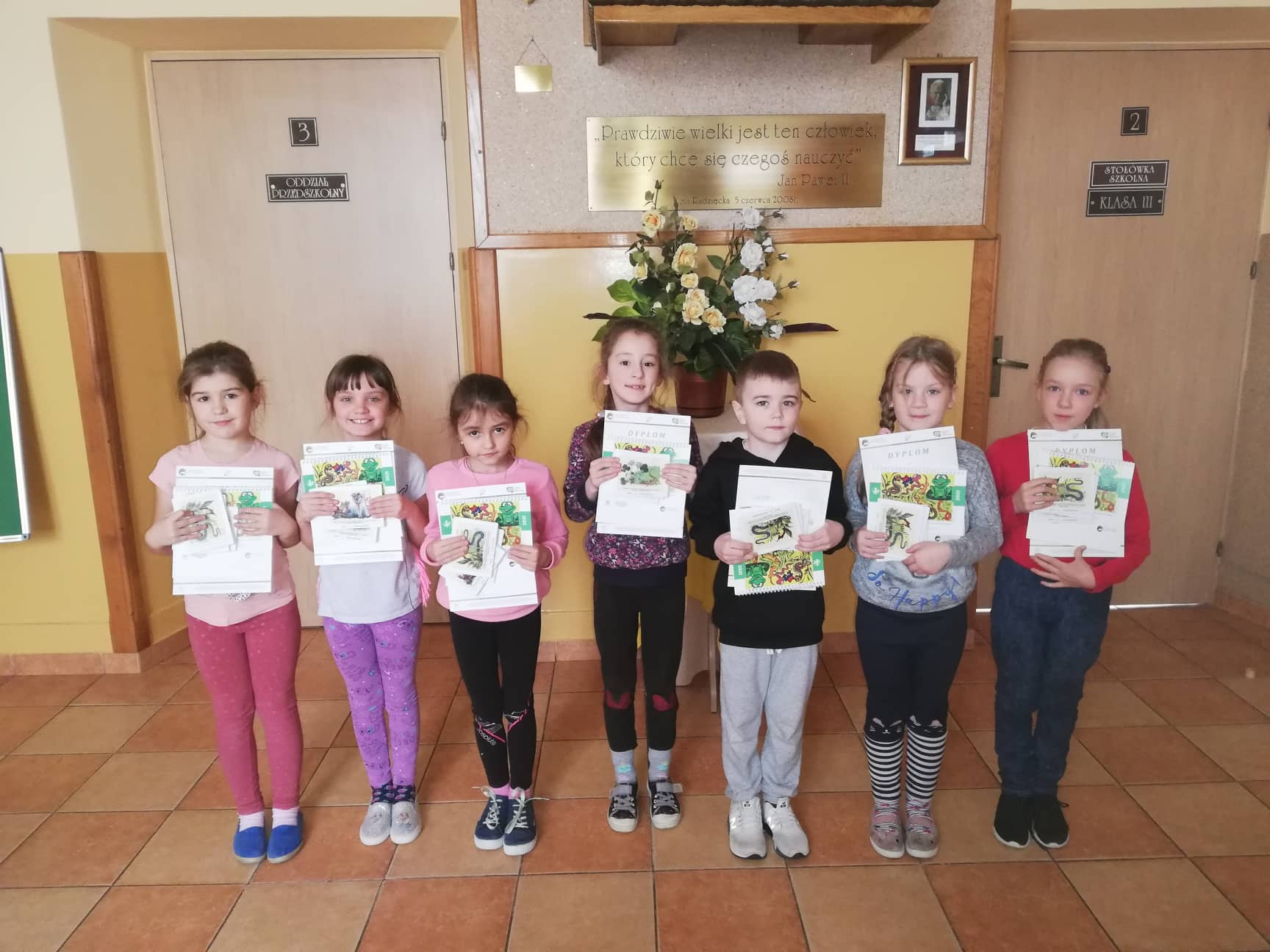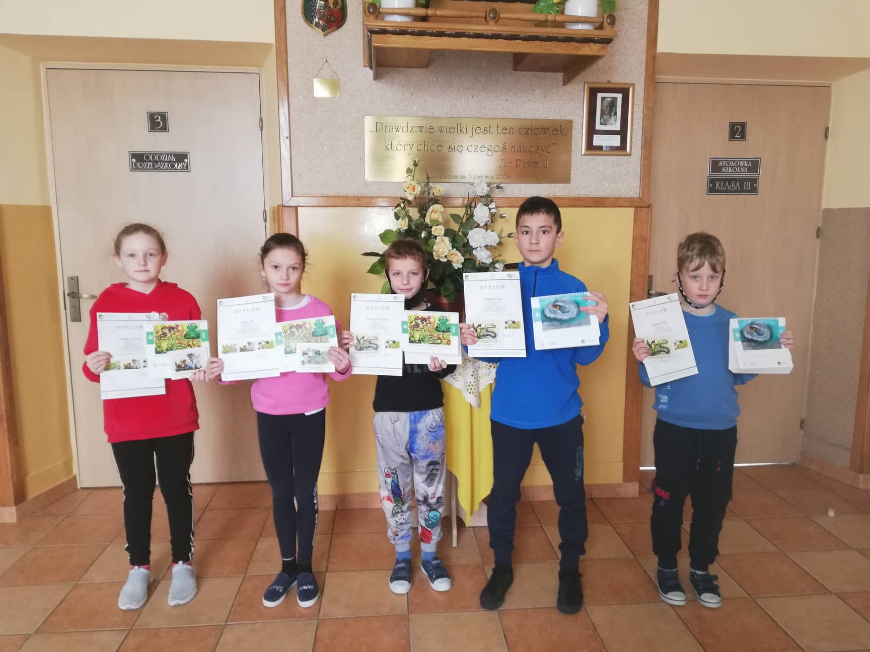 Uczniowie klas I-III, przedszkolaki i jedna uczennica z klasy IV wzięli udział w XVII Przeglądzie Prac Plastycznych "Śladami Aleksandry Wachniewskiej, malarki i orędowniczki ochrony przyrody Roztocza." Konkurs, zorganizowany przez Roztoczański Park Narodowy, był dedykowany dla uczniów szkół podstawowych i przedszkoli. Tematyka prac związana była z przyrodą Roztocza "Węże, żaby i jaszczurki, czyli płazy i gady w oczach dzieci." Za udział w konkursie plastycznym dzieci otrzymały upominki i pamiątkowe dyplomy.