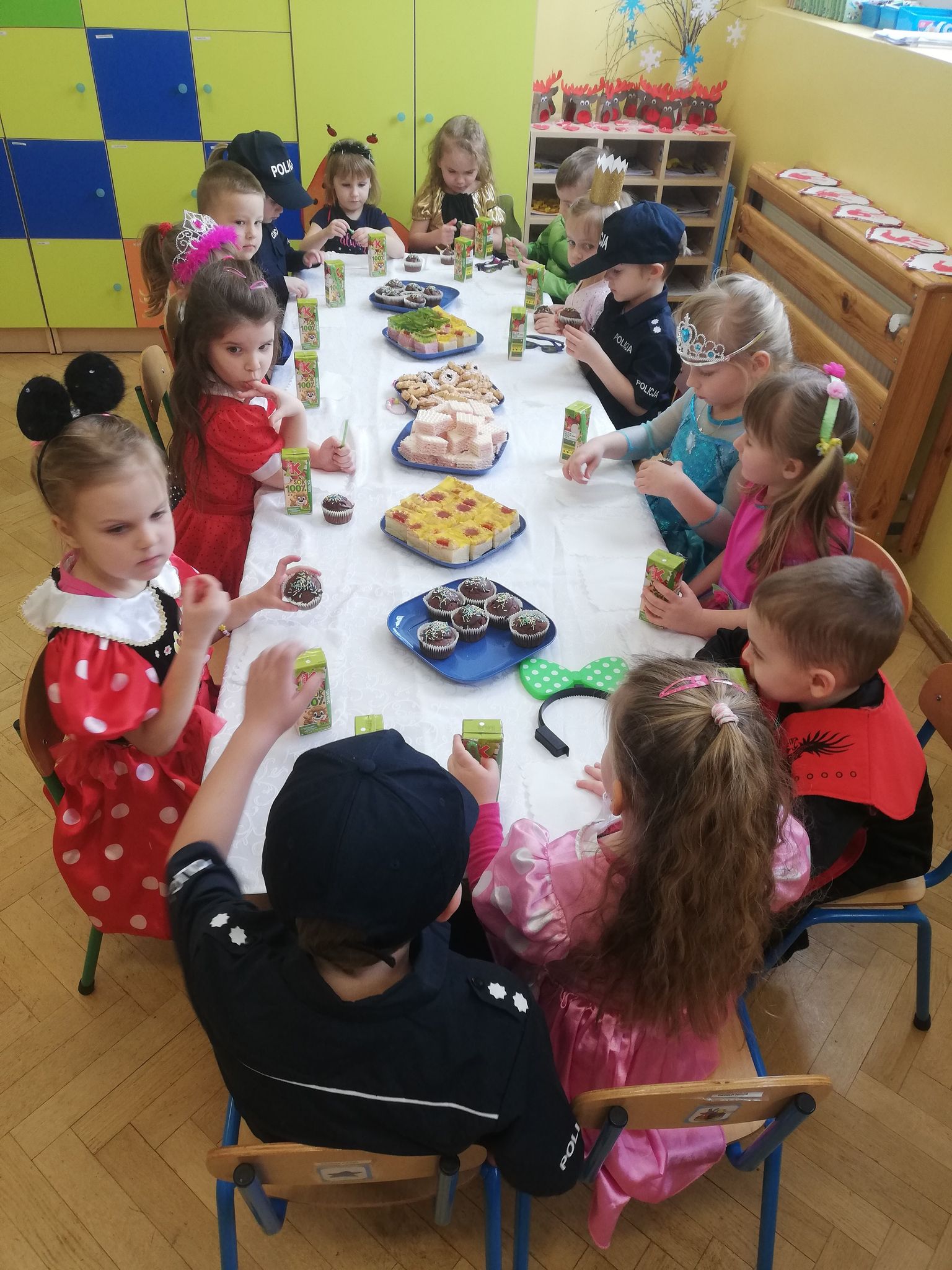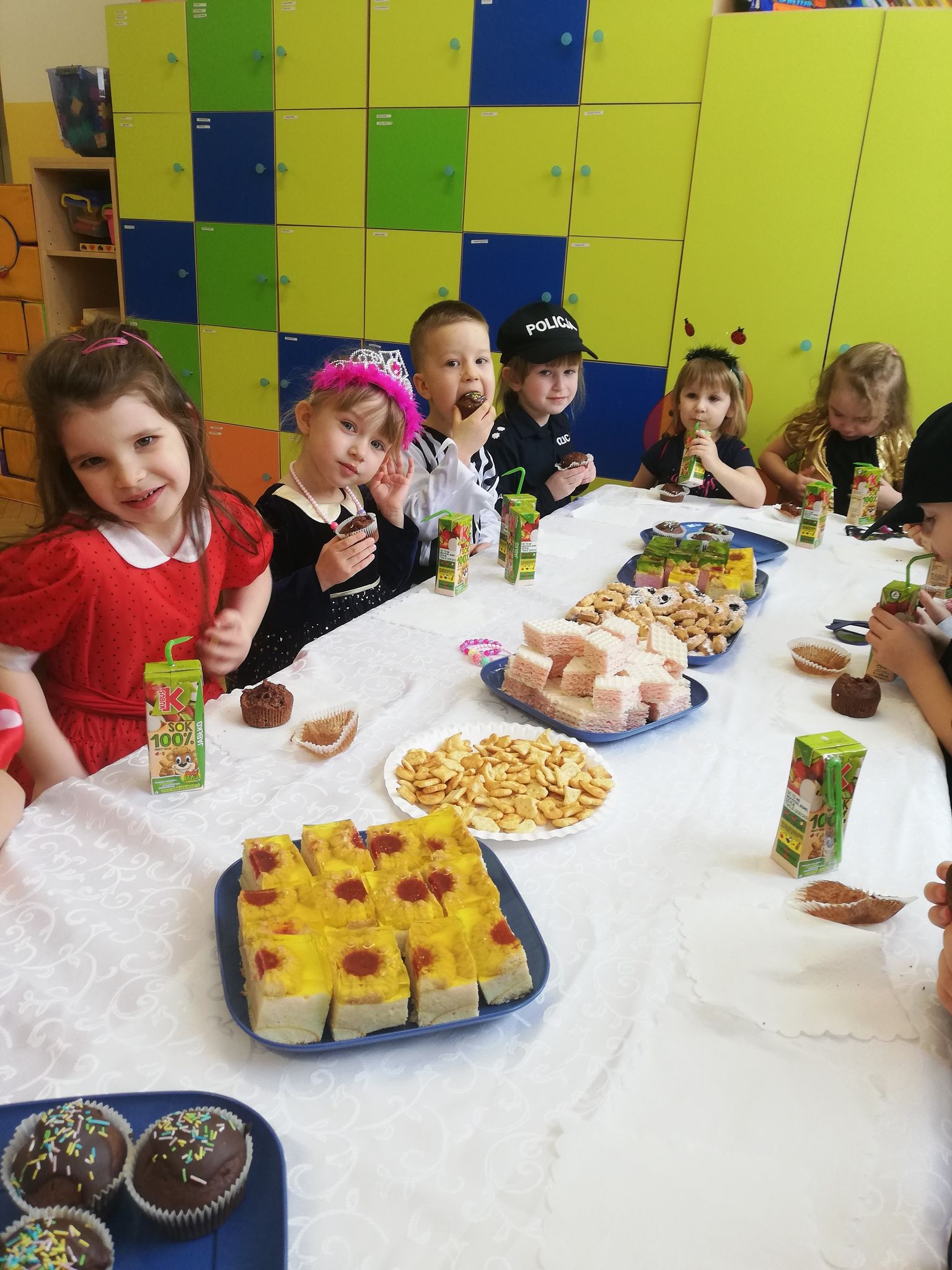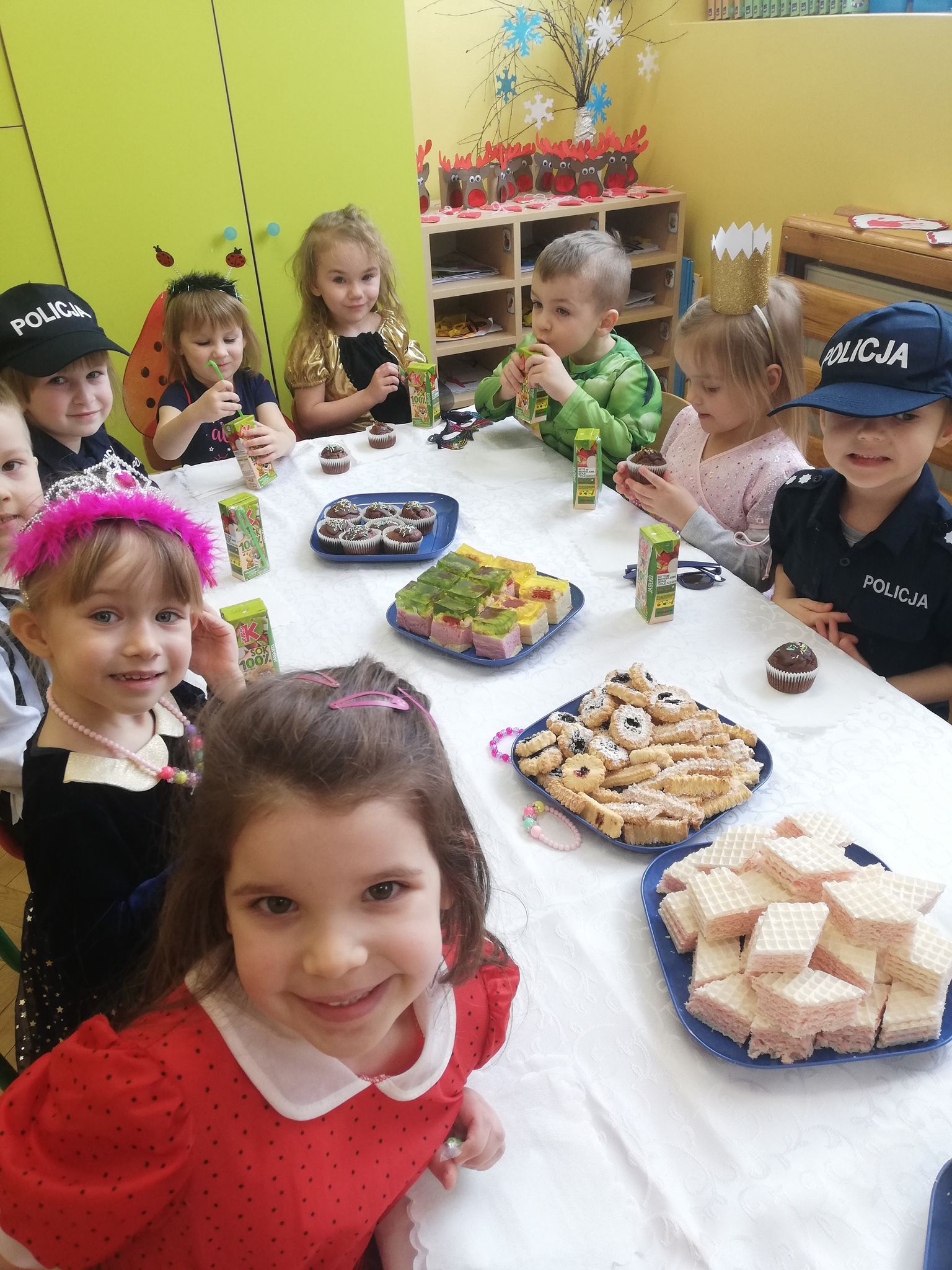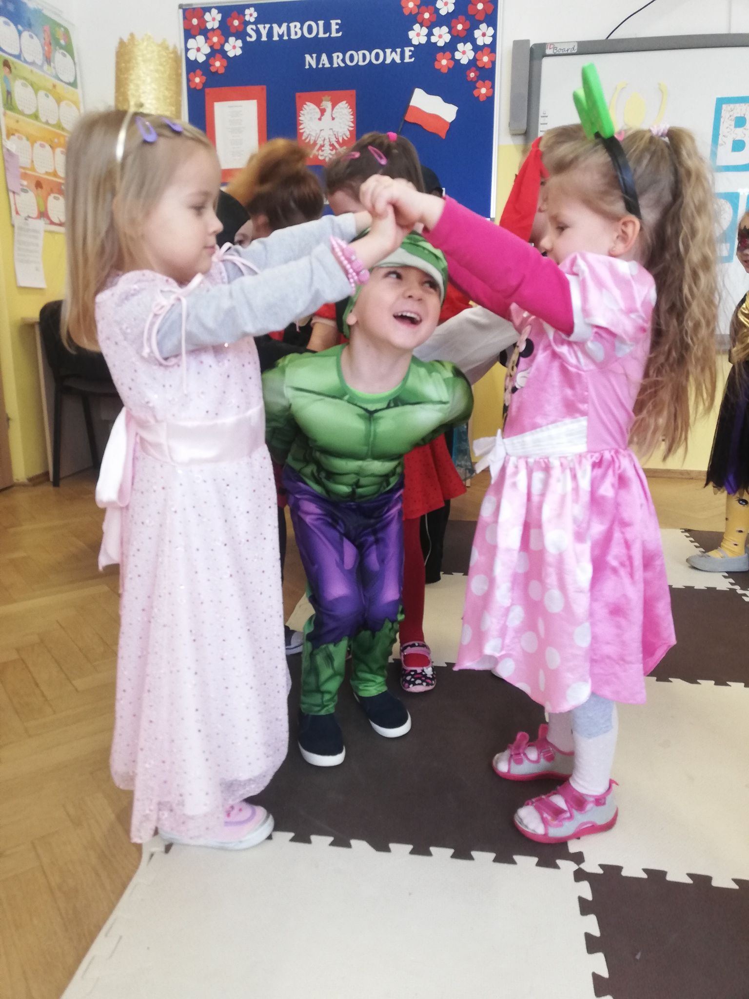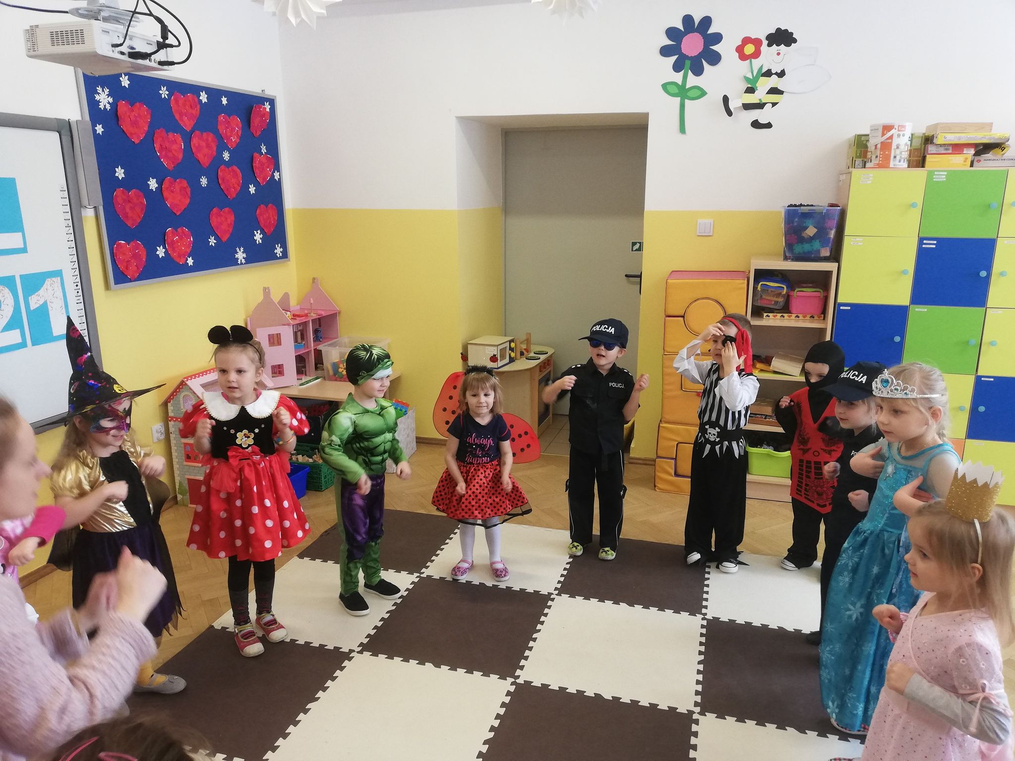 Zabawa karnawałowa to czas, na który czekają dzieci. 15 lutego w naszych oddziałach przedszkolnych odbył się bal karnawałowy. Dzieci miały okazję przebrać się za swoje ulubione postacie i z dumą zaprezentować swój wymyślny strój. Przedszkolaki przebrane były za postacie z bajek i nie tylko. W salach można było spotkać policjantów, piratów, wróżki, żołnierzy, kowbojkę, Elzę, Spider-Mana, Wojowników Ninja a nawet czarownice. Nie sposób wymienić wszystkie postacie. A same dzieci w tym dniu ciężko było rozpoznać. Przedszkolaki bawiły się świetnie a zachęcała ich do tego skoczna i rytmiczna muzyka. W trakcie balu skosztować można było słodkich smakołyków przygotowanych przez rodziców. Dzieci do domów wracały zmęczone ale zarazem szczęśliwe. Wspomnienia z tego balu na długo pozostaną w naszej pamięci.