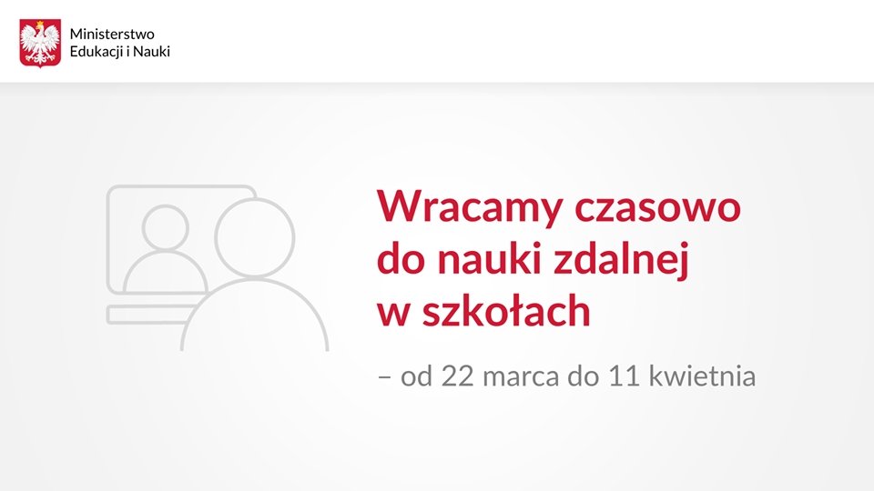 Od 22 marca do 11 kwietnia br. uczniowie wszystkich klas szkół podstawowych oraz ponadpodstawowych będą uczyli się zdalnie. Zmiany te wynikają ze znaczącego wzrostu liczby zachorowań na COVID-19. Rozporządzenie w tej sprawie zostało przekazane do publikacji w Dzienniku Ustaw. Na dotychczasowych zasadach, przy zachowaniu reżimu sanitarnego, będą funkcjonowały placówki wychowania przedszkolnego.