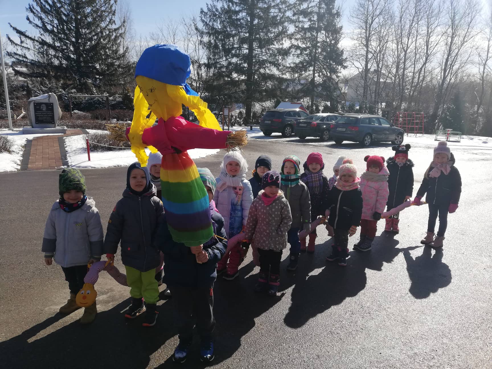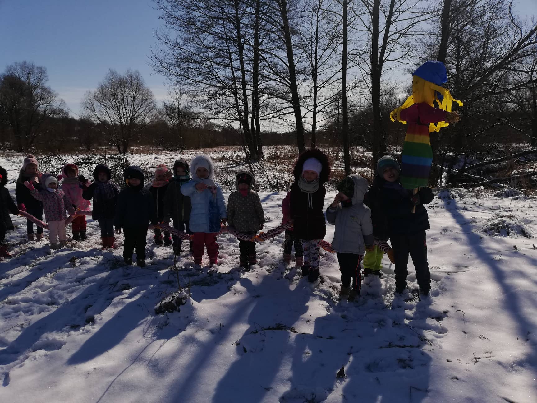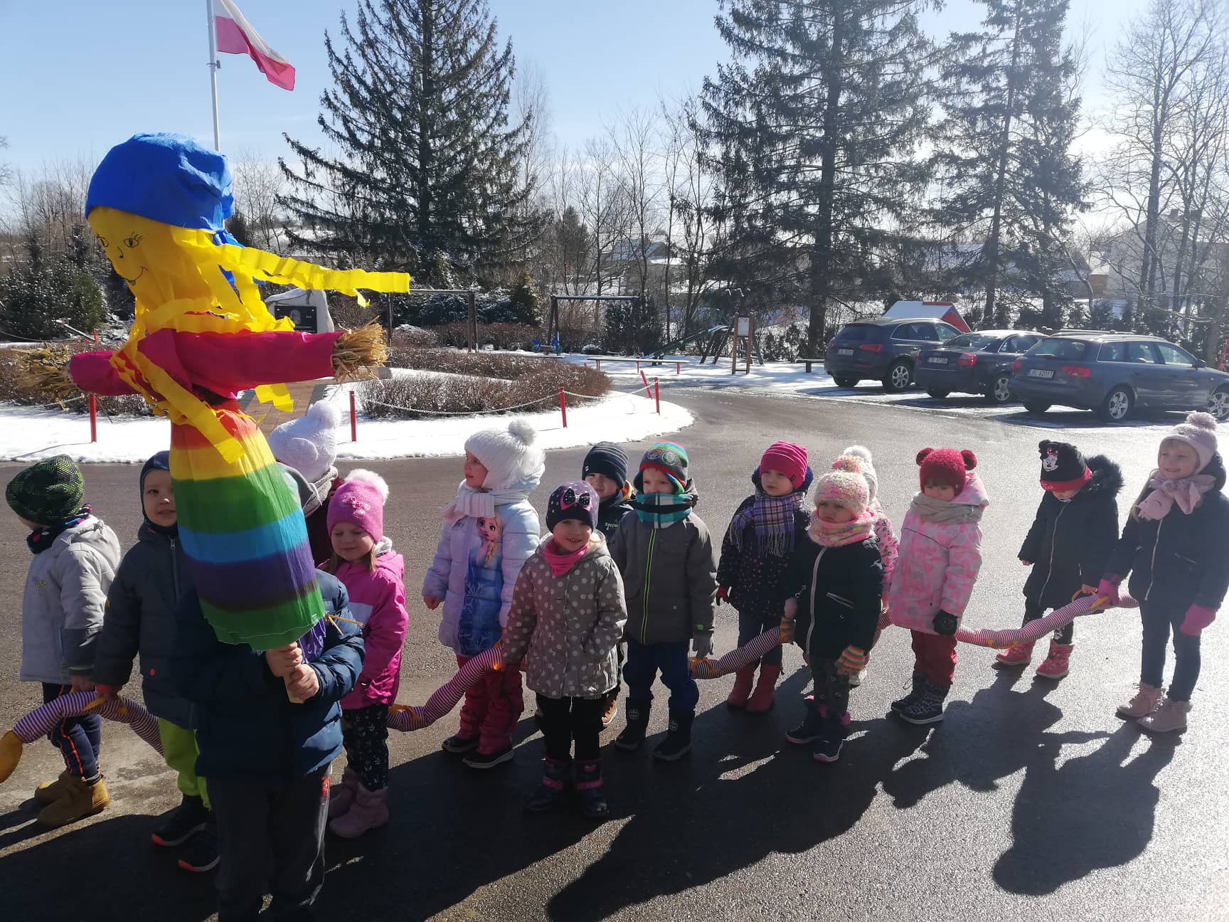 Wiosna to najbardziej oczekiwana pora roku. Srogie mrozy i opady śniegu wreszcie odchodzą w zapomnienie, a cała przyroda budzi się do życia. 21 marca, czyli pierwszego dnia kalendarzowej wiosny, utarł się zwyczaj topienia marzanny. Marzanna, która w Polsce jest już znana od wieków, to bogini słowiańska - symbol zimy i śmierci. Stąd właśnie wzięła się nazwa kukły – symbolu odchodzącej zimy, którą niszczymy w Pierwszy Dzień Wiosny. W poniedziałek 22 marca przedszkolaki z grupy 3-4-latków wspólnie z grupą zerówkową wyruszyły nad pobliską rzekę, aby pożegnać zimę i przywitać wiosnę. Dzieci zebrane wokół swoich słomianych panien krzyczały donośnymi głosami: „Marzanno, Marzanno Ty zimowa panno, Ciebie pożegnamy, wiosnę powitamy” żegnając zimę. Panowanie zimy zakończyło się na dobre, kiedy zimowe panny wrzucone do rzeki odpłynęły daleko do morza. Mamy nadzieję, że teraz wiosna rozgości się na dobre.