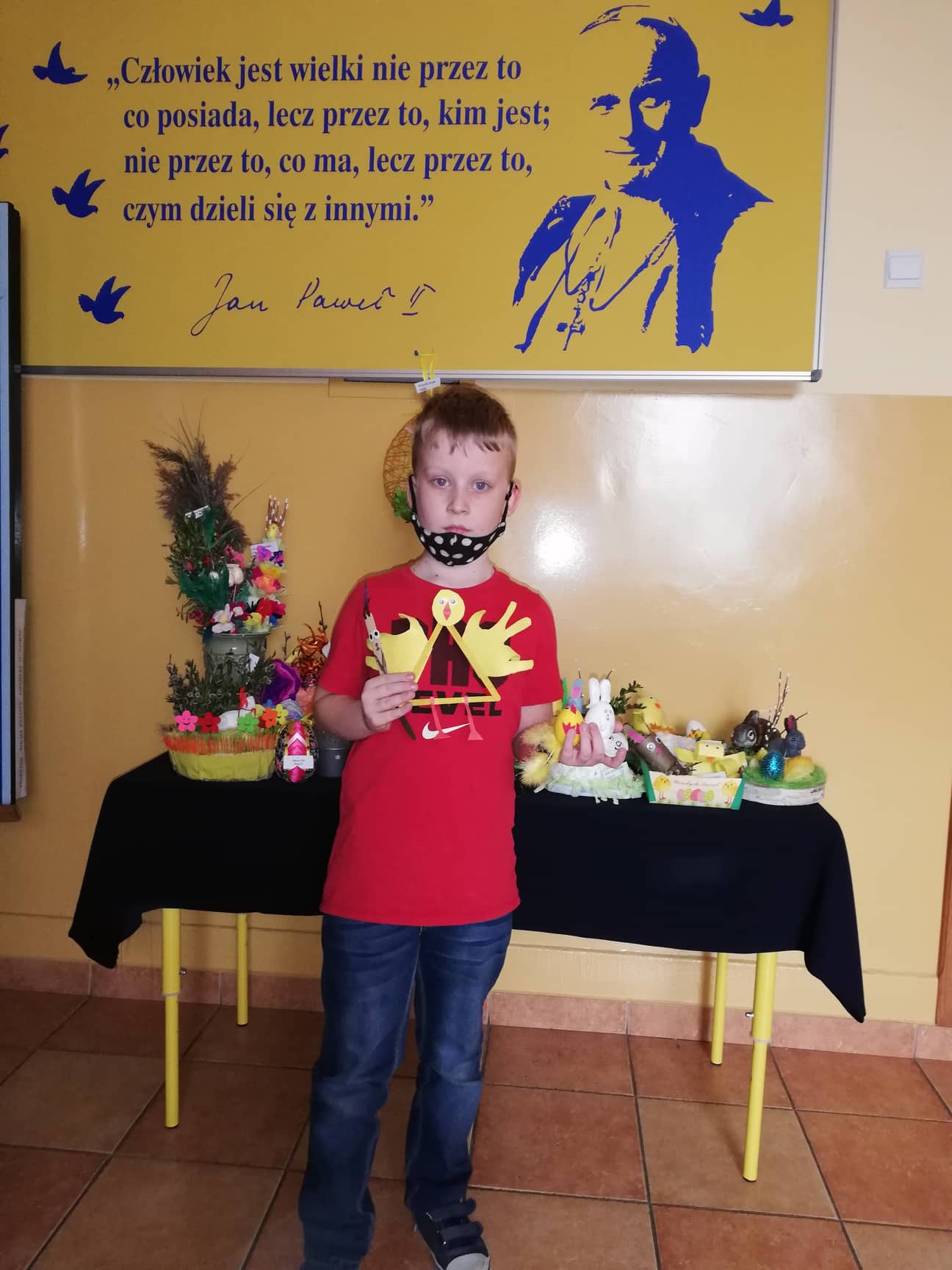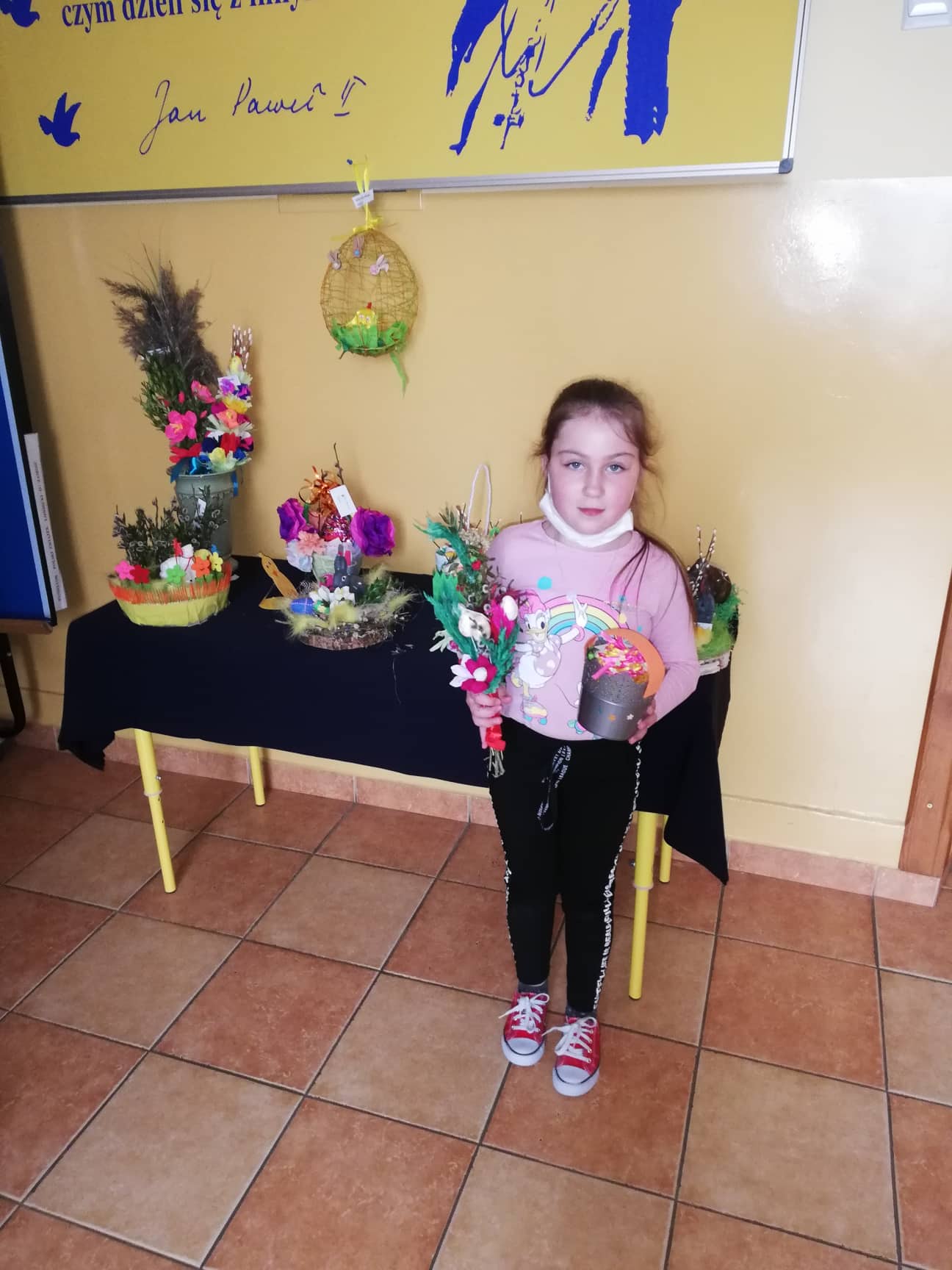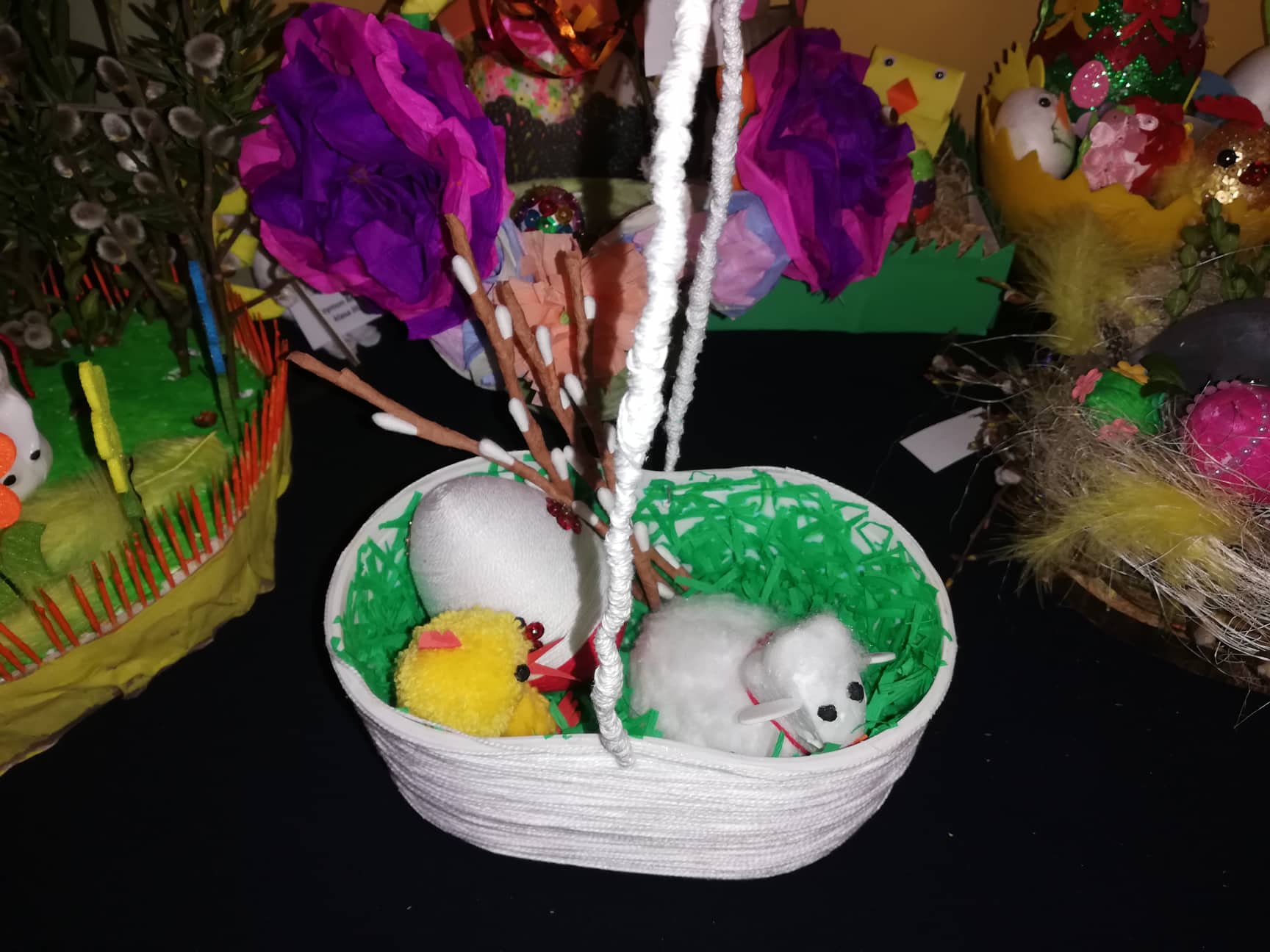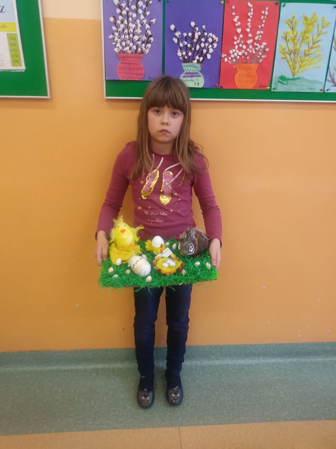Przed świętami uczniowie naszej szkoły przygotowali prace na szkolny konkurs plastyczny "Ozdoby wielkanocnego stołu." Celem konkursu było kultywowanie tradycji oraz pogłębienie wiedzy na temat symboliki Świąt Wielkanocnych. Prace były bardzo ciekawe i pomysłowe, prezentowały różne techniki plastyczne. Palmy, pisanki, baranki, zajączki i koszyczki wielkanocne w okresie przedświątecznym ozdobiły szkolny korytarz, a wiosenne odcienie zieleni i żółci przykuwały wzrok. Wszystkie dzieci po powrocie do szkoły otrzymają pamiątkowe dyplomy. Uczestnikom konkursu gratulujemy zdolności plastycznych.