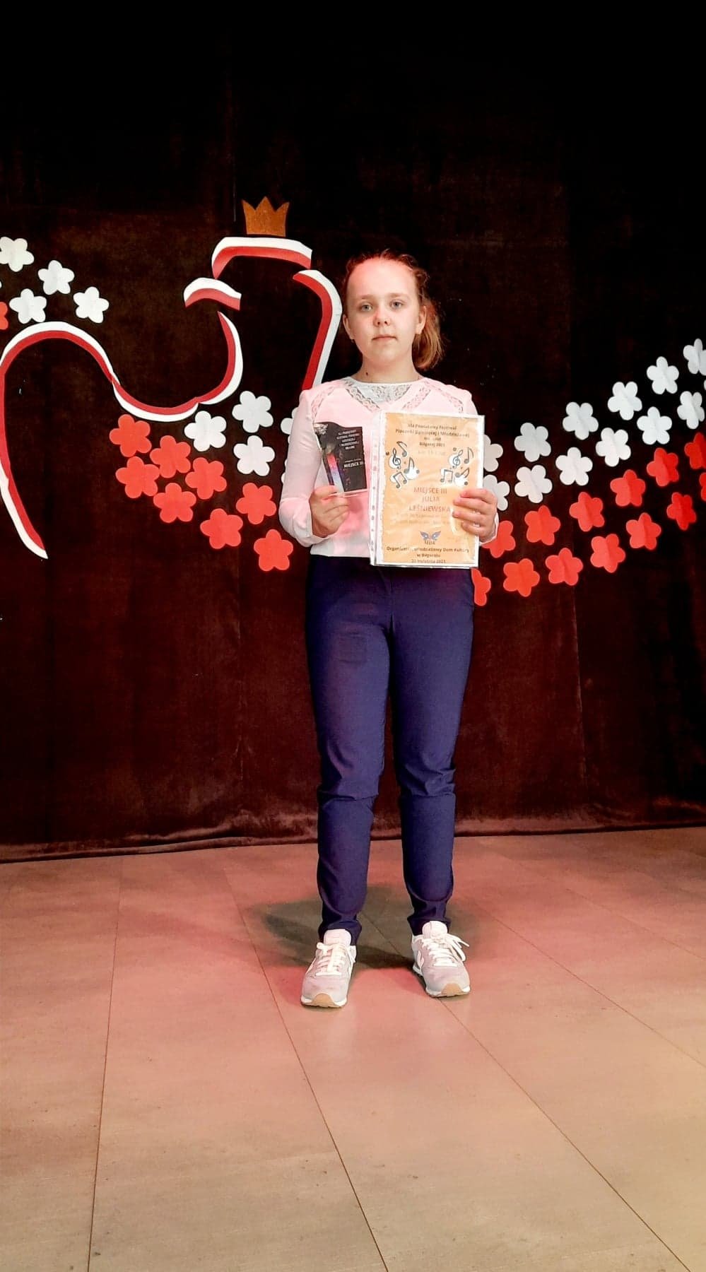 Sukces Julii Leśniewskiej w XLI POWIATOWYM FESTIWALU PIOSENKI DZIECIĘCEJ I MŁODZIEŻOWEJ BIŁGORAJ 2021