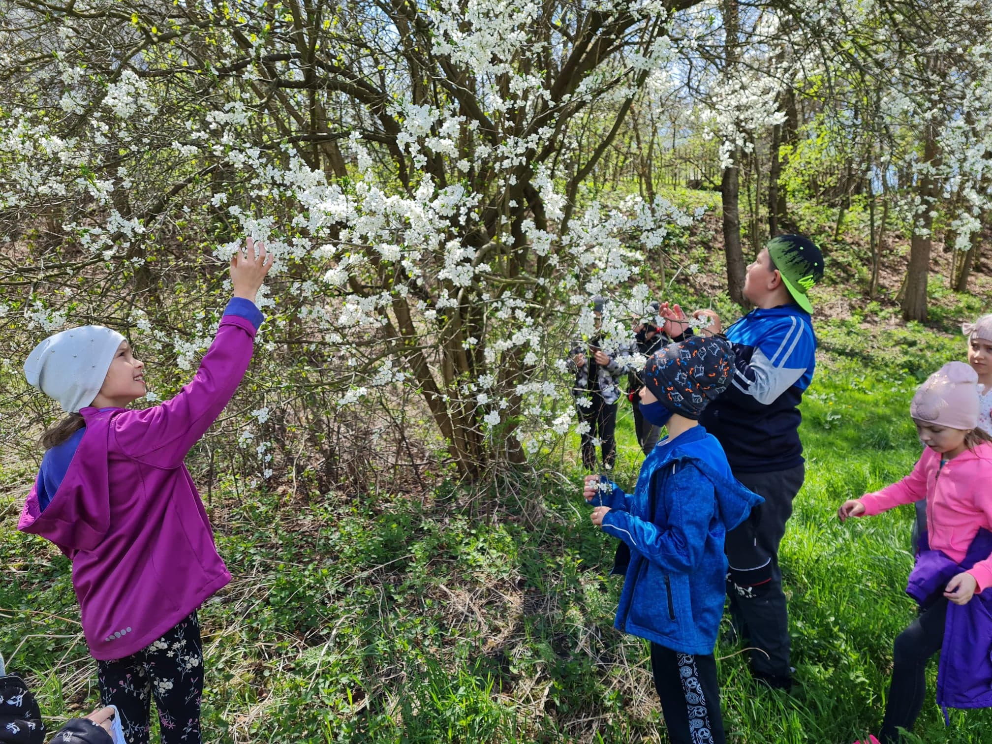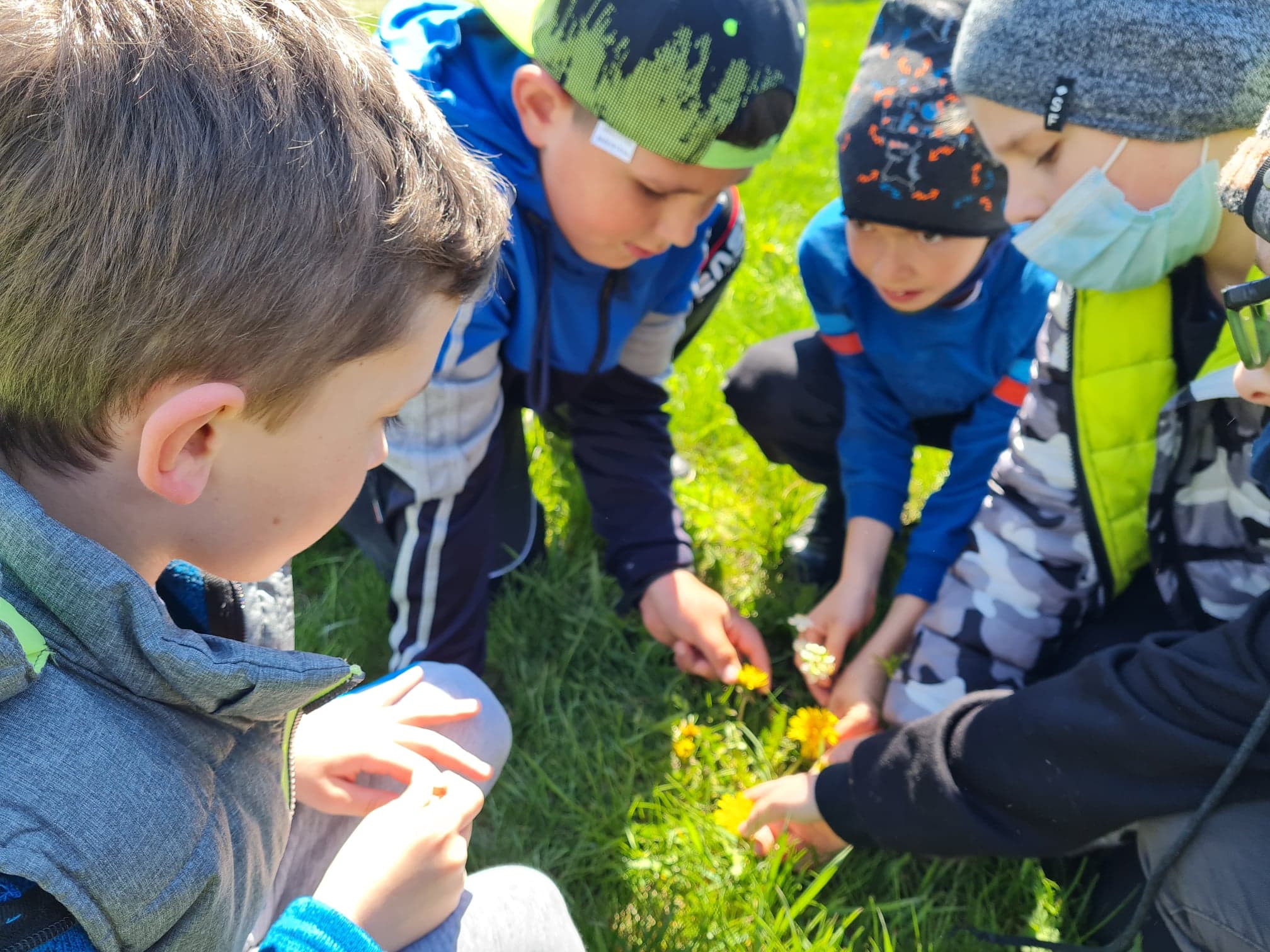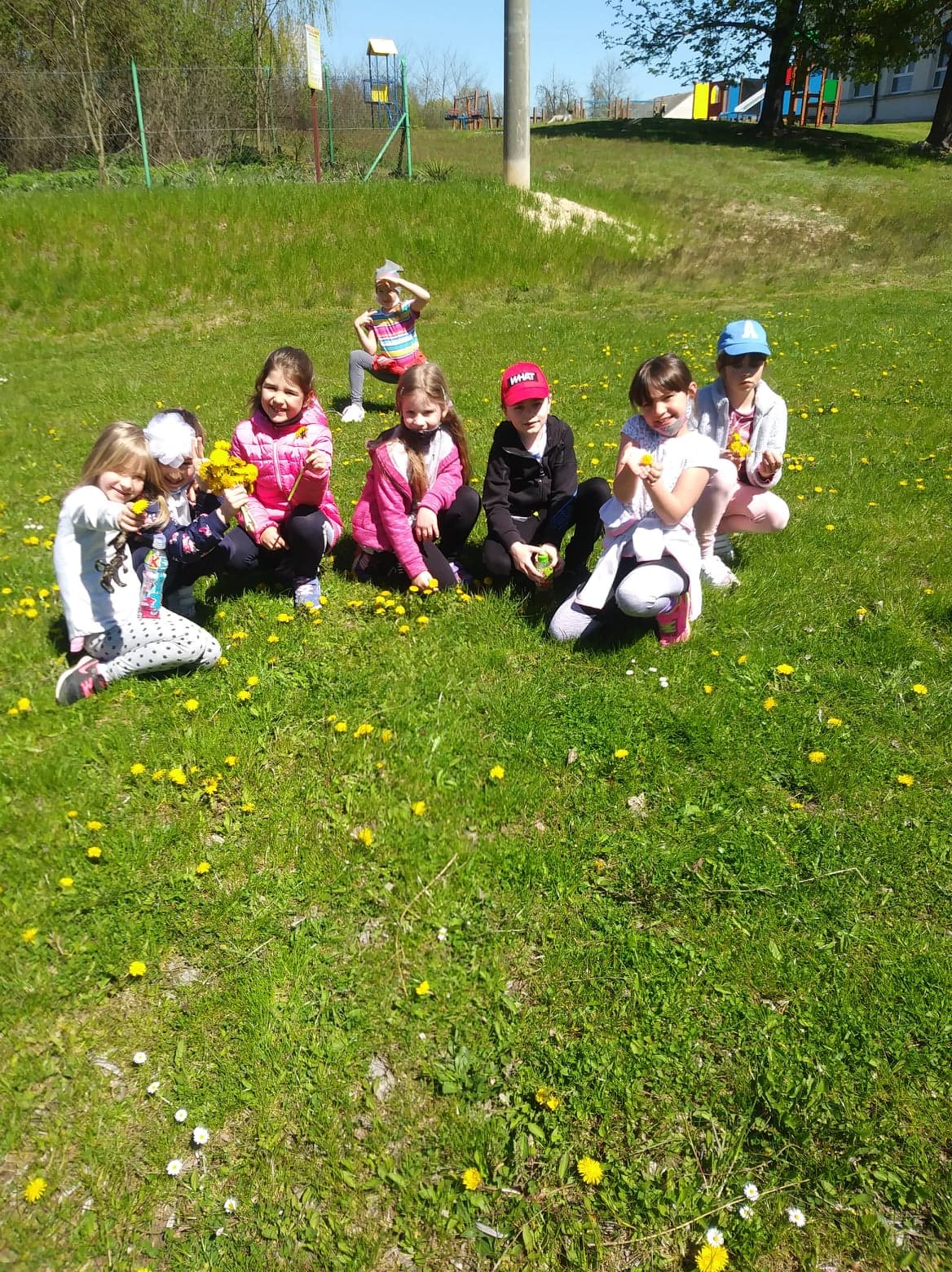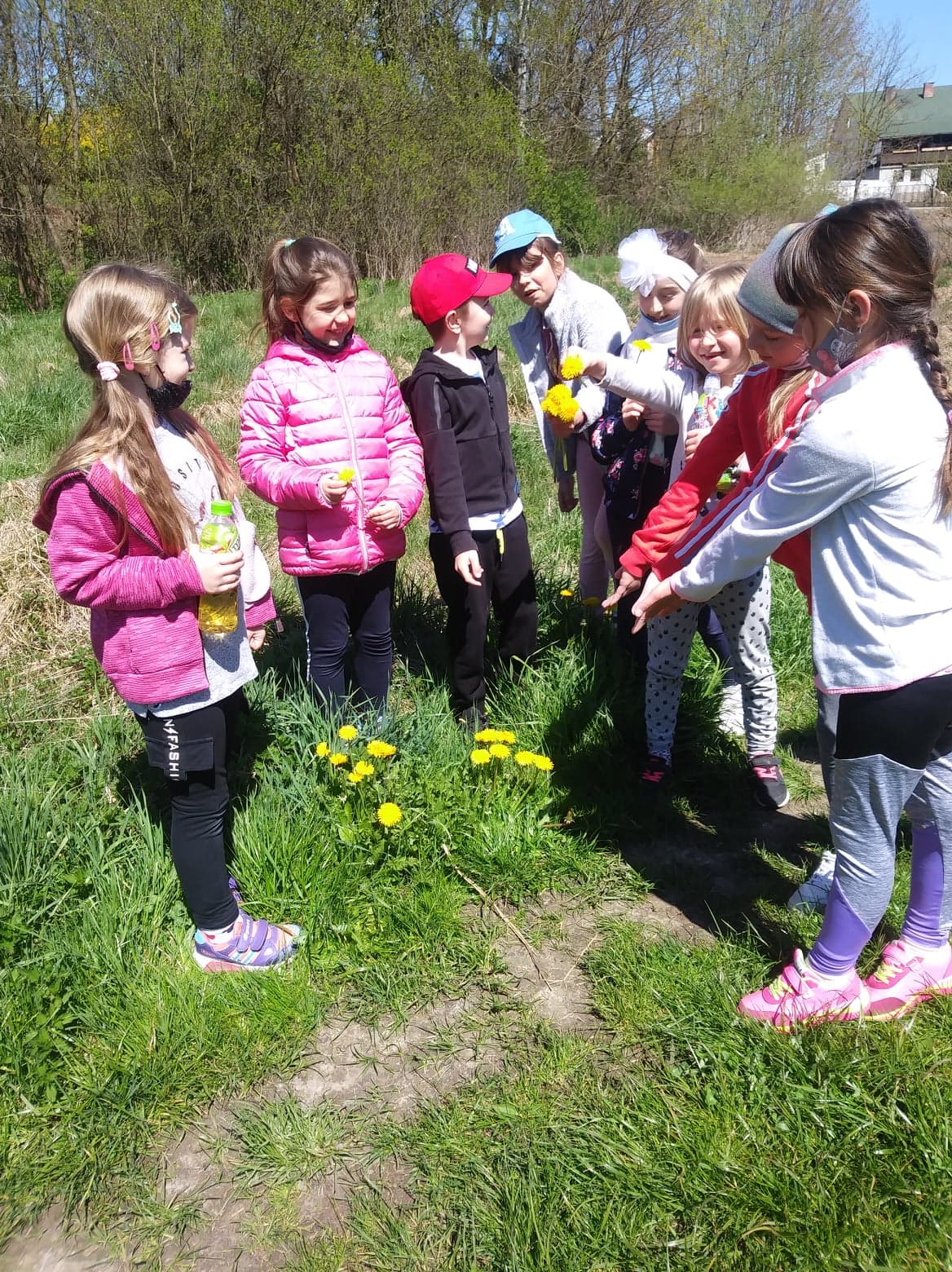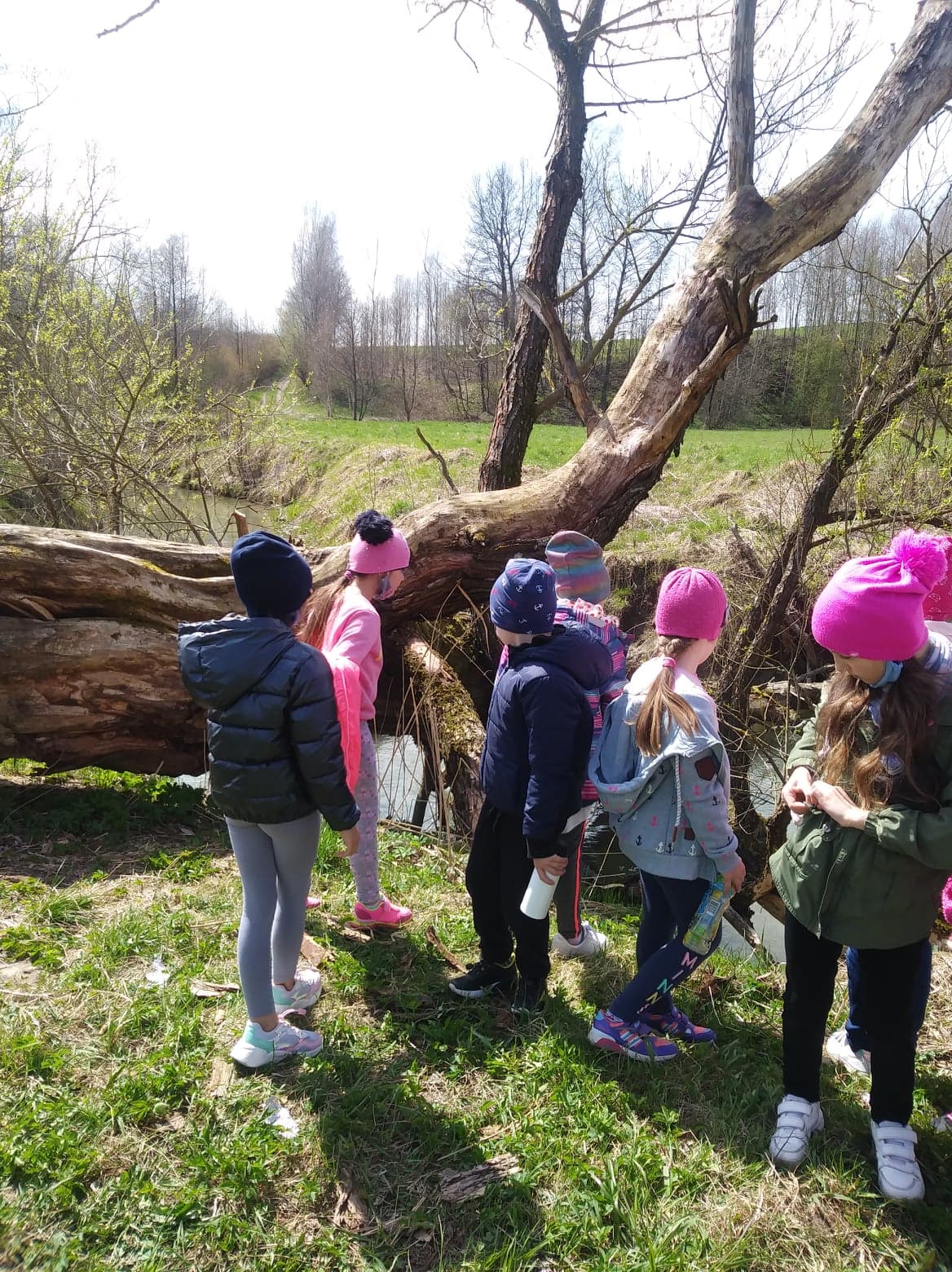 Korzystając z pięknej pogody, uczniowie klasy I i II wybrali się na łąkę znajdującą się w pobliżu szkoły. Dzieci miały okazję do obserwowania roślin i zwierząt w ich naturalnym środowisku. Z niezwykłą uwagą badały otaczającą je przyrodę. Obserwowały wygląd ślimaka, biedronki, mrówki oraz pszczoły. Miały również okazję słyszeć przepiękny śpiew ptaków oraz zobaczyć z bliska kwitnące mniszki lekarskie, kaczeńce, stokrotki i jaskry. Nad rzeką Biała Łada zauważyły na pniu drzewa nacięcia typowe dla zębów bobra. Wycieczka na łąkę sprawiła dzieciom dużo radości.