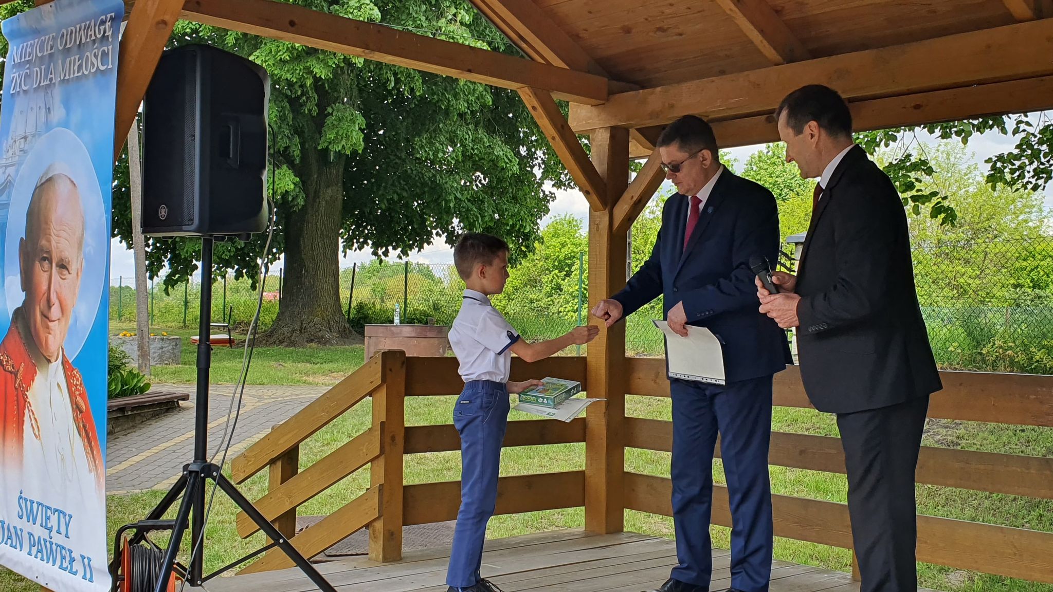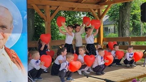 1 czerwca odbyły się uroczyste obchody XIII rocznicy nadania szkole imienia Jana Pawła II. W naszej szkolnej tradycji są one Dniem Patrona. Jak co roku, swoją obecnością zaszczycili nas zaproszeni goście: Pan Józef Rudy - Burmistrz Frampola, Pani Barbara Małek - Kierownik Referatu Oświaty we Frampolu, Ksiądz Adam Czupich - Proboszcz Parafii Radzięcin, Ksiądz Mateusz Kozyra - Wikariusz Parafii Radzięcin, Pani Teodora Rapa - Przewodnicząca Rady Rodziców oraz rodzice i mieszkańcy Woli Radzięckiej i okolicznych miejscowości. Uroczystości rozpoczęły się Mszą Świętą, którą odprawił Ks Mateusz Kozyra. Po zakończeniu Mszy Świętej wszyscy zgromadzeni na uroczystości wysłuchali przemówień Pana Stanisława Saja - Dyrektora Szkoły oraz Pana Józefa Rudego - Burmistrza Frampola. Kolejnym punktem uroczystości były występy artystyczne w wykonaniu uczniów klas I-III oraz dzieci z oddziałów przedszkolnych. Podczas występów uczniowie upamiętnili postać Jana Pawła II oraz złożyli życzenia swoim rodzicom z okazji Dnia Matki i Ojca. Po zakończonych występach uczniowie udali się do swoich klas na poczęstunek przygotowany przez rodziców. Uzupełnieniem obchodów Dnia Patrona były gry i zabawy sportowe z okazji Dnia Dziecka. Do rywalizacji stanęły drużyny złożone z uczniów, rodziców i nauczycieli. Ogromną atrakcją dla najmłodszych uczniów było też malowanie twarzy. Piękna pogoda i znakomita zabawa sprawiły, że wszyscy wrócili do domów w świetnych humorach.