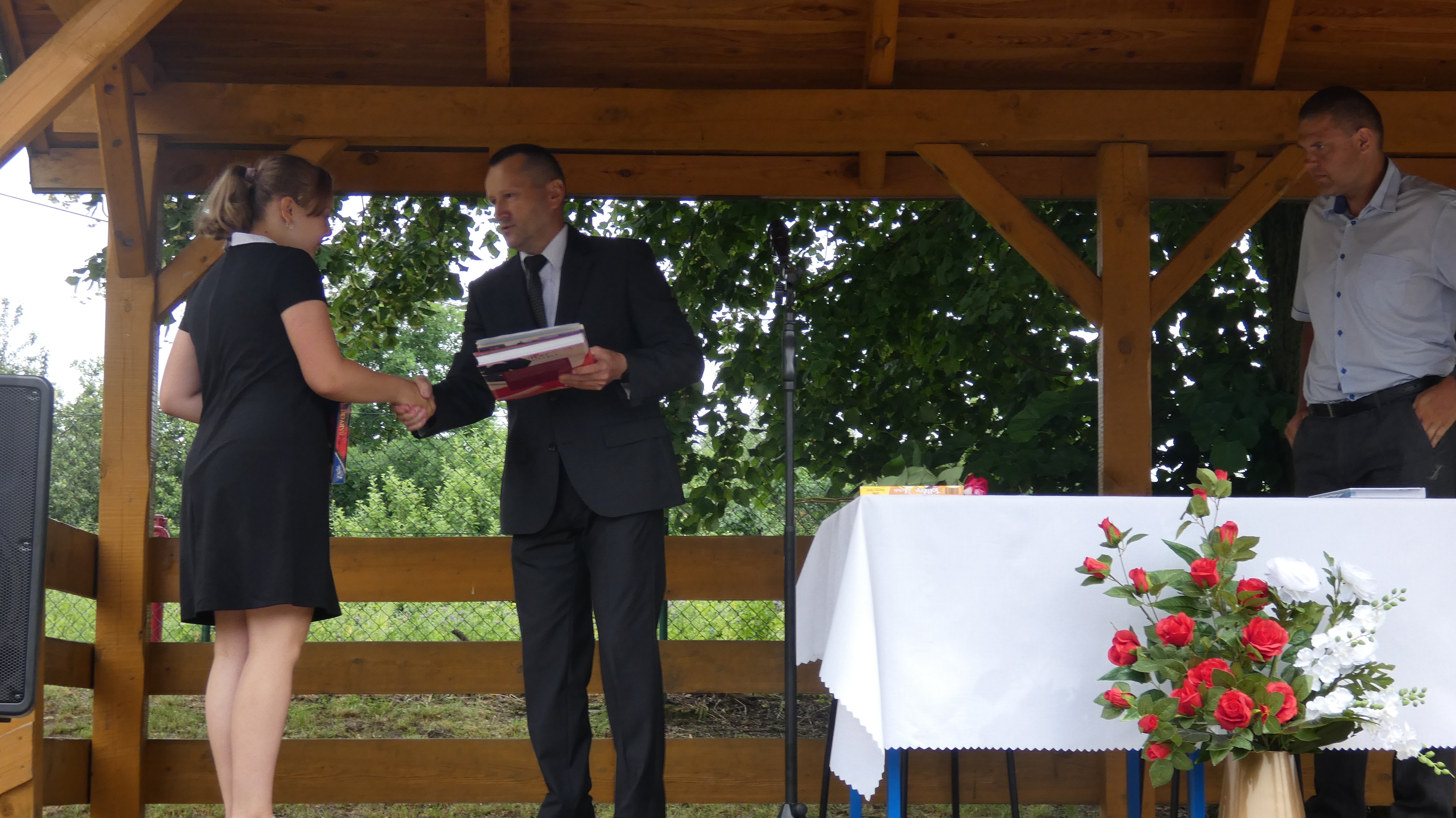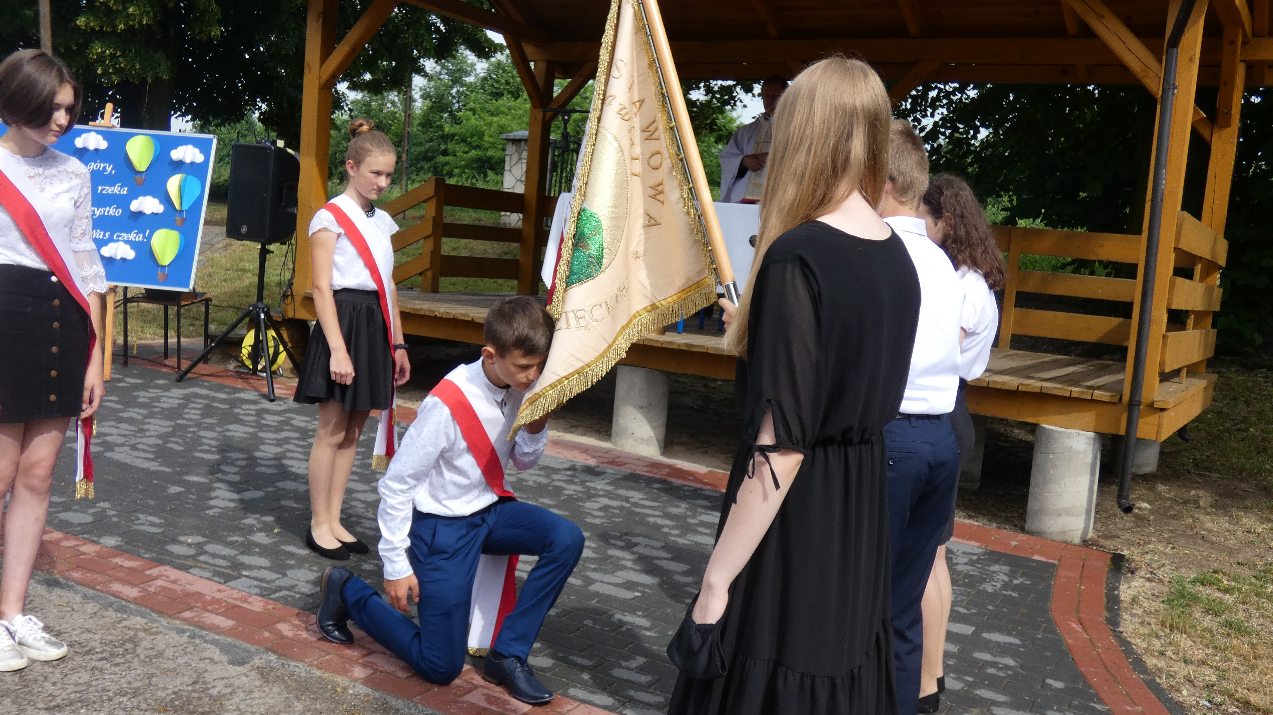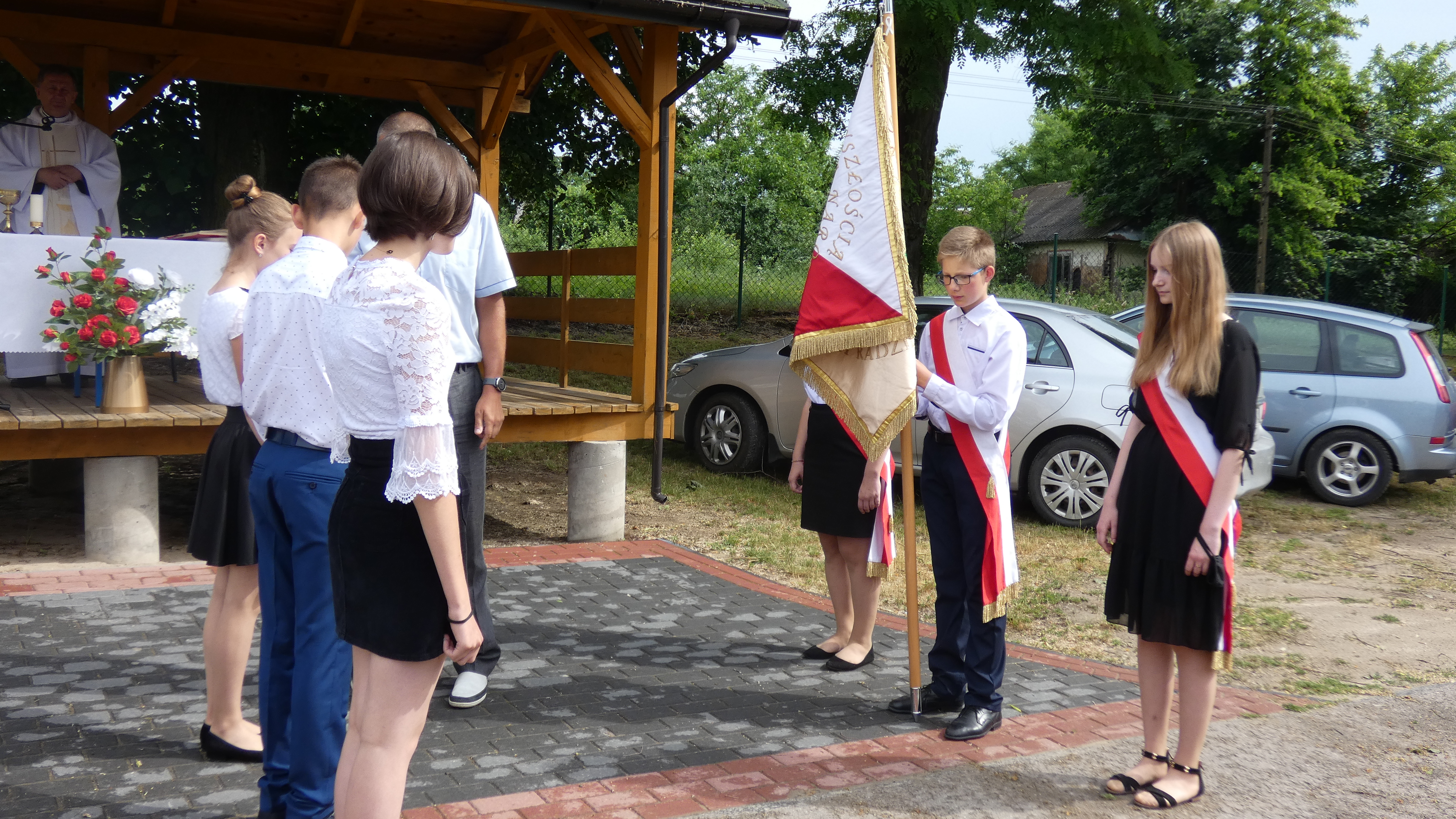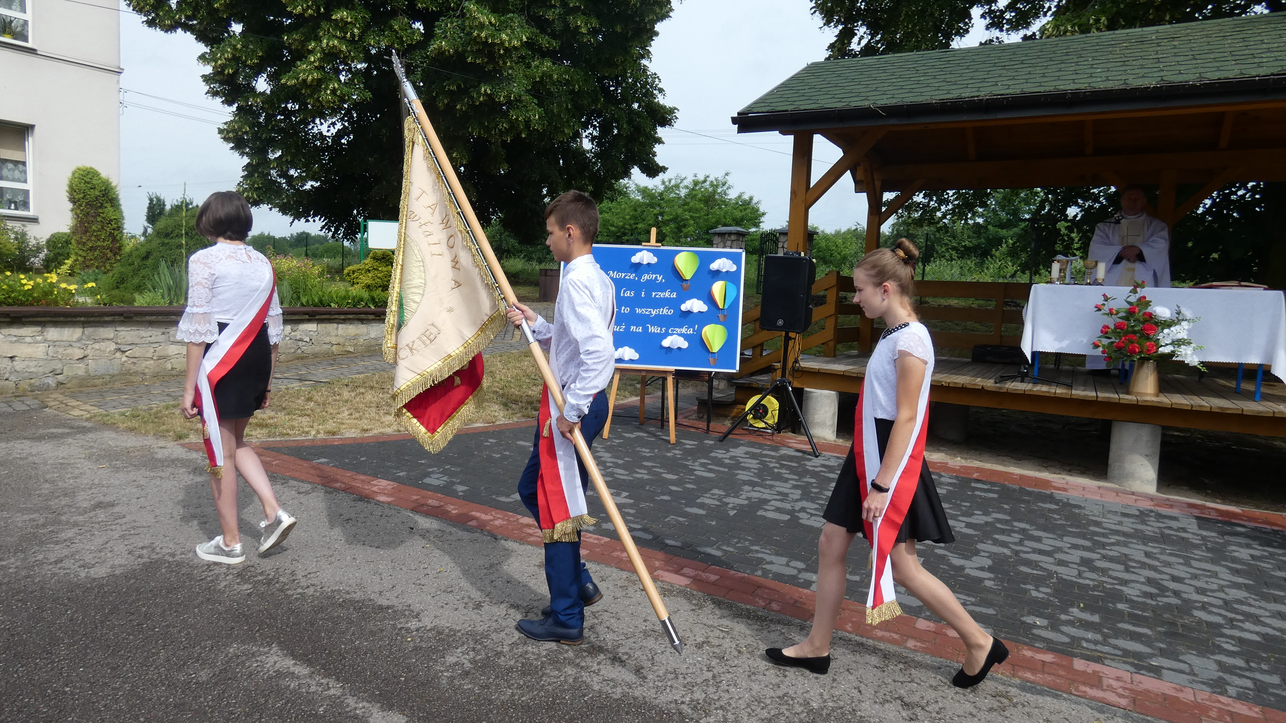25 czerwca miało miejsce uroczyste zakończenie roku szkolnego. Uroczystość rozpoczęła Msza Święta, którą odprawił Ks. Adam Czupich z Radzięcina. Po jej zakończeniu odbyło się przekazanie sztandaru szkoły przez poczet klasy VIII uczniom klasy VII oraz ślubowanie absolwentów naszej szkoły. W dalszej kolejności głos zabrał Dyrektor Szkoły - Pan Stanisław Saj, który powitał zaproszonych gości i rodziców na czele z Panią Teodorą Rapa - Przewodniczącą Rady Rodziców. Władze samorządowe reprezentowali Pan Józef Rudy - Burmistrz Frampola, Pani Anna Ruszczak - Sekretarz Gminy Frampol oraz Pan Lech Kaczor - Przewodniczący Rady Miejskiej. Następną częścią uroczystości było wręczenie świadectw z wyróżnieniem oraz nagród książkowych i rzeczowych uczniom, którzy osiągnęli najwyższe wyniki nauczania i odnieśli sukcesy w konkursach. Pan Dyrektor przekazał również list gratulacyjny Państwu Jolancie i Grzegorzowi Dubaj, rodzicom ucznia klasy VIII Kacpra Dubaja, który zdobył dwukrotnie tytuł laureata oraz tytuł finalisty w Konkursie Wiedzy o Biblii i Kościele. Po oficjalnej części uroczystości uczniowie udali się do klas, gdzie otrzymali od swoich wychowawców świadectwa i życzenia zdrowych, bezpiecznych i radosnych wakacji.