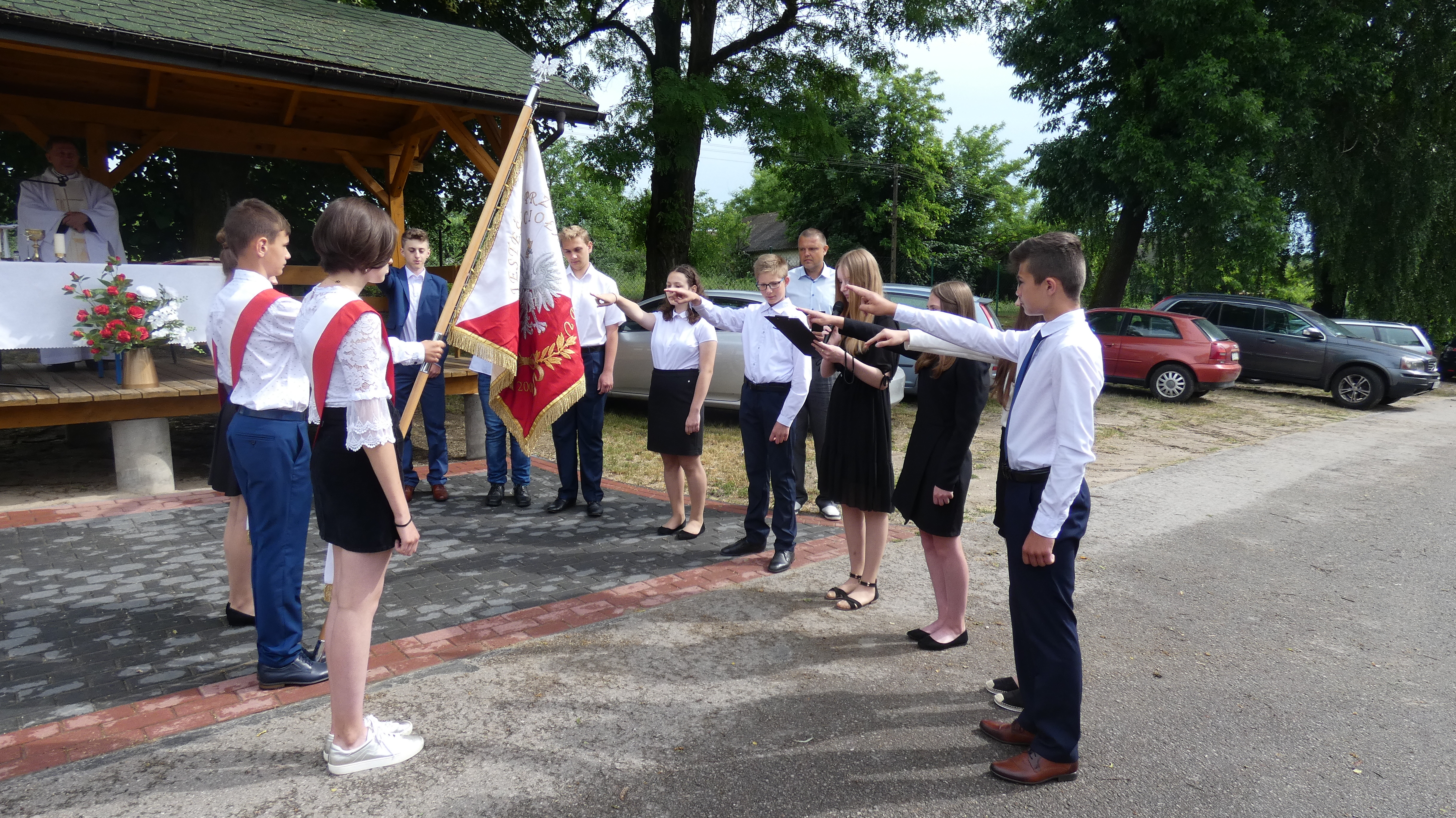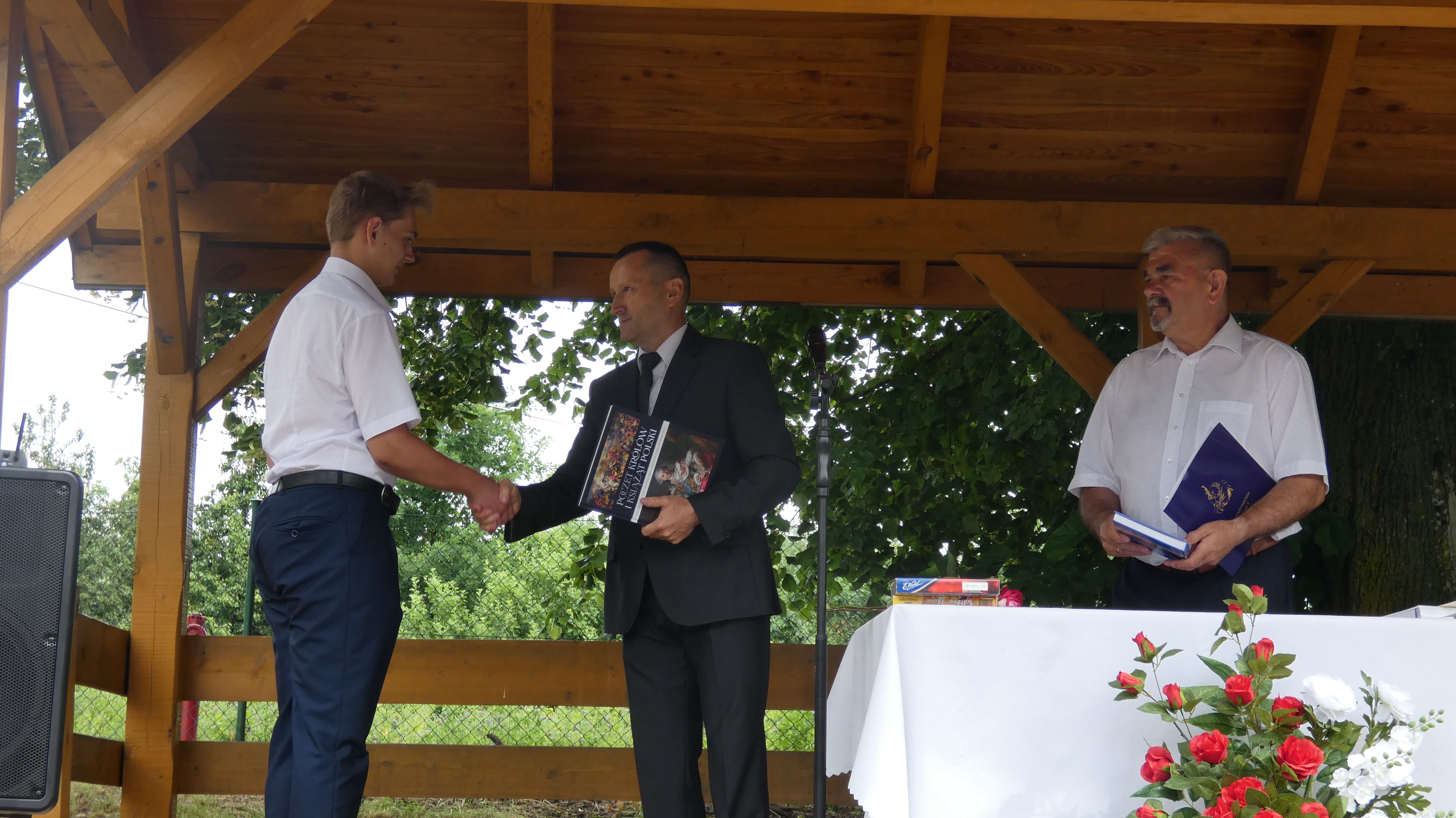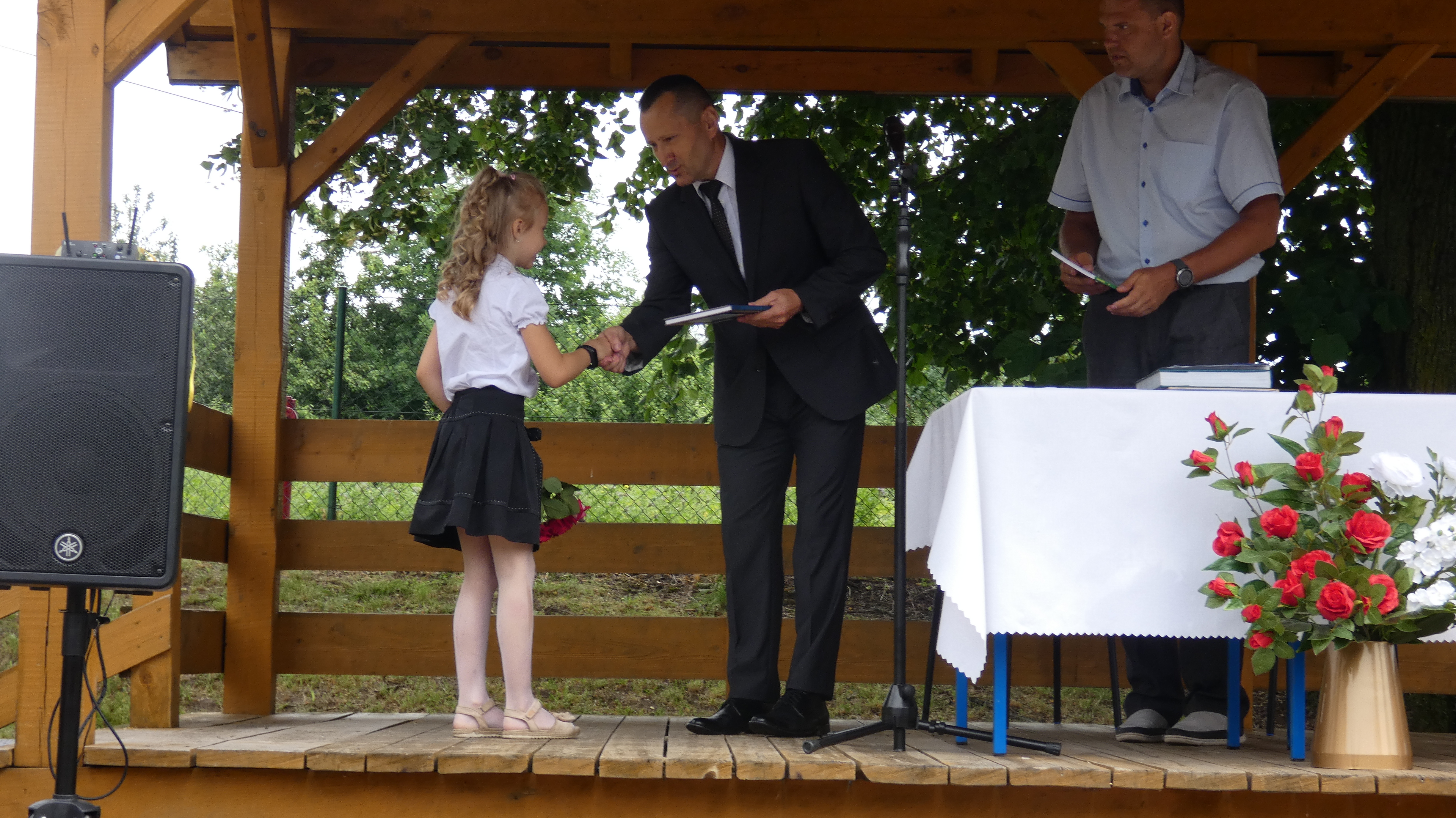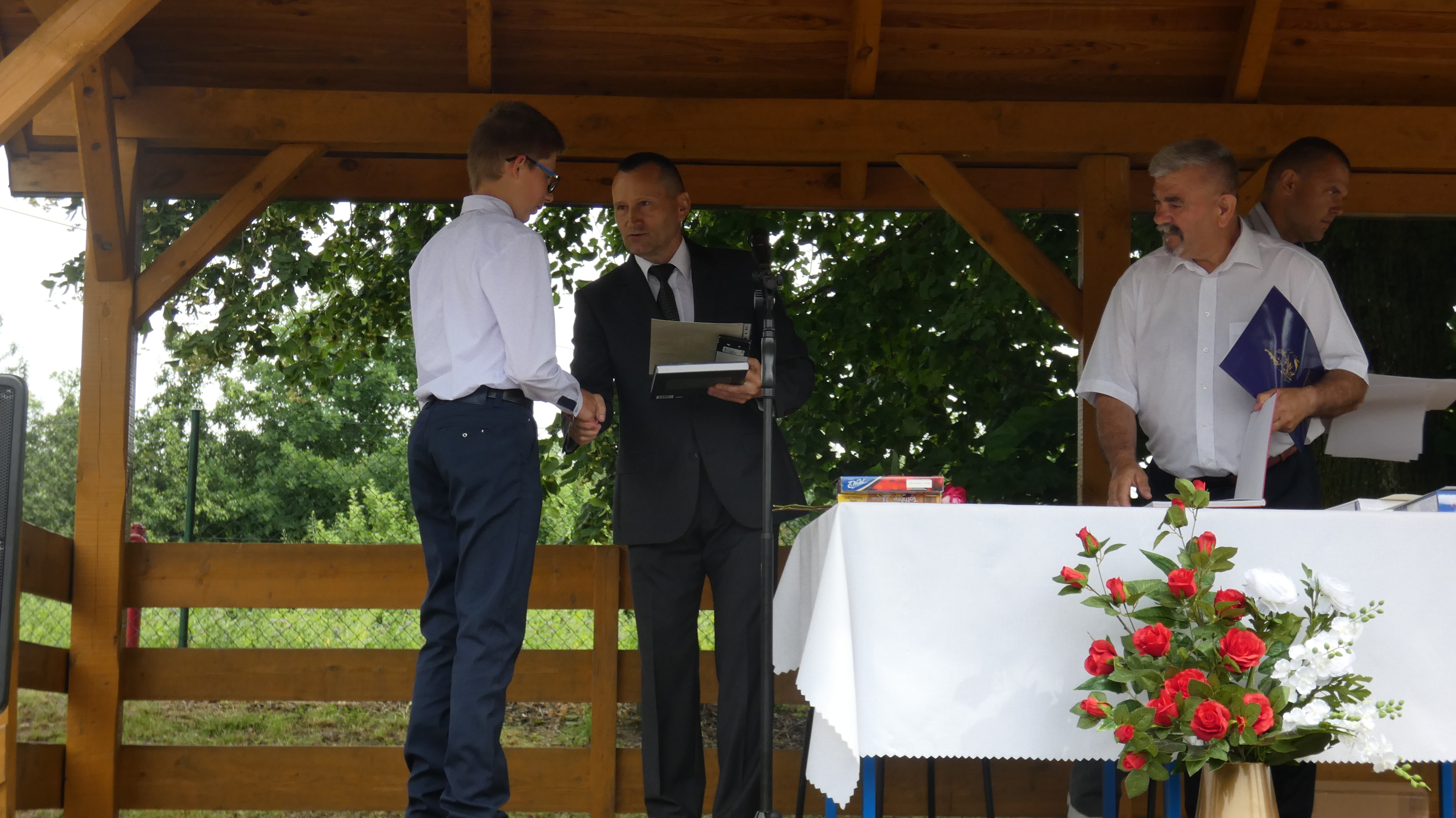 25 czerwca miało miejsce uroczyste zakończenie roku szkolnego. Uroczystość rozpoczęła Msza Święta, którą odprawił Ks. Adam Czupich z Radzięcina. Po jej zakończeniu odbyło się przekazanie sztandaru szkoły przez poczet klasy VIII uczniom klasy VII oraz ślubowanie absolwentów naszej szkoły. W dalszej kolejności głos zabrał Dyrektor Szkoły - Pan Stanisław Saj, który powitał zaproszonych gości i rodziców na czele z Panią Teodorą Rapa - Przewodniczącą Rady Rodziców. Władze samorządowe reprezentowali Pan Józef Rudy - Burmistrz Frampola, Pani Anna Ruszczak - Sekretarz Gminy Frampol oraz Pan Lech Kaczor - Przewodniczący Rady Miejskiej. Następną częścią uroczystości było wręczenie świadectw z wyróżnieniem oraz nagród książkowych i rzeczowych uczniom, którzy osiągnęli najwyższe wyniki nauczania i odnieśli sukcesy w konkursach. Pan Dyrektor przekazał również list gratulacyjny Państwu Jolancie i Grzegorzowi Dubaj, rodzicom ucznia klasy VIII Kacpra Dubaja, który zdobył dwukrotnie tytuł laureata oraz tytuł finalisty w Konkursie Wiedzy o Biblii i Kościele. Po oficjalnej części uroczystości uczniowie udali się do klas, gdzie otrzymali od swoich wychowawców świadectwa i życzenia zdrowych, bezpiecznych i radosnych wakacji.