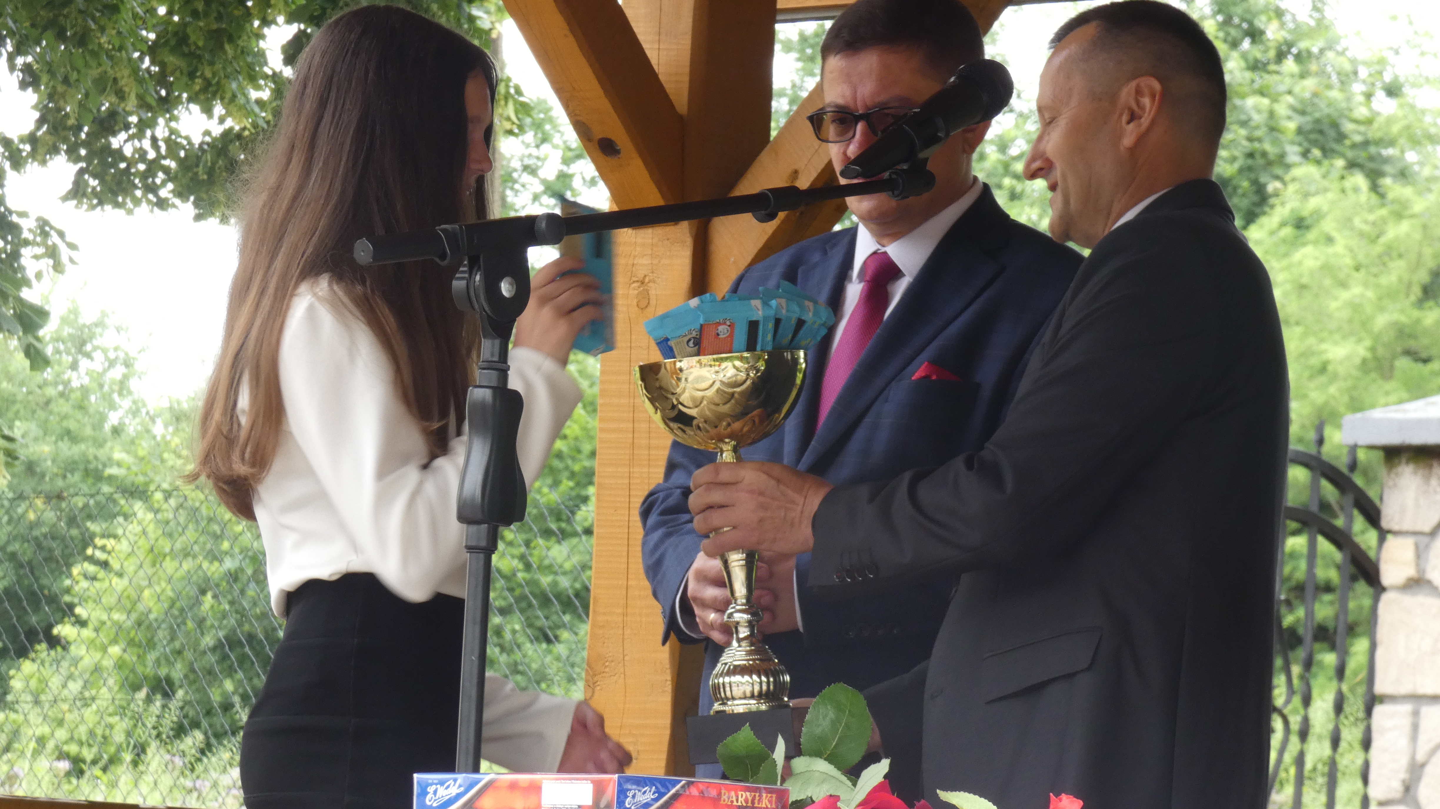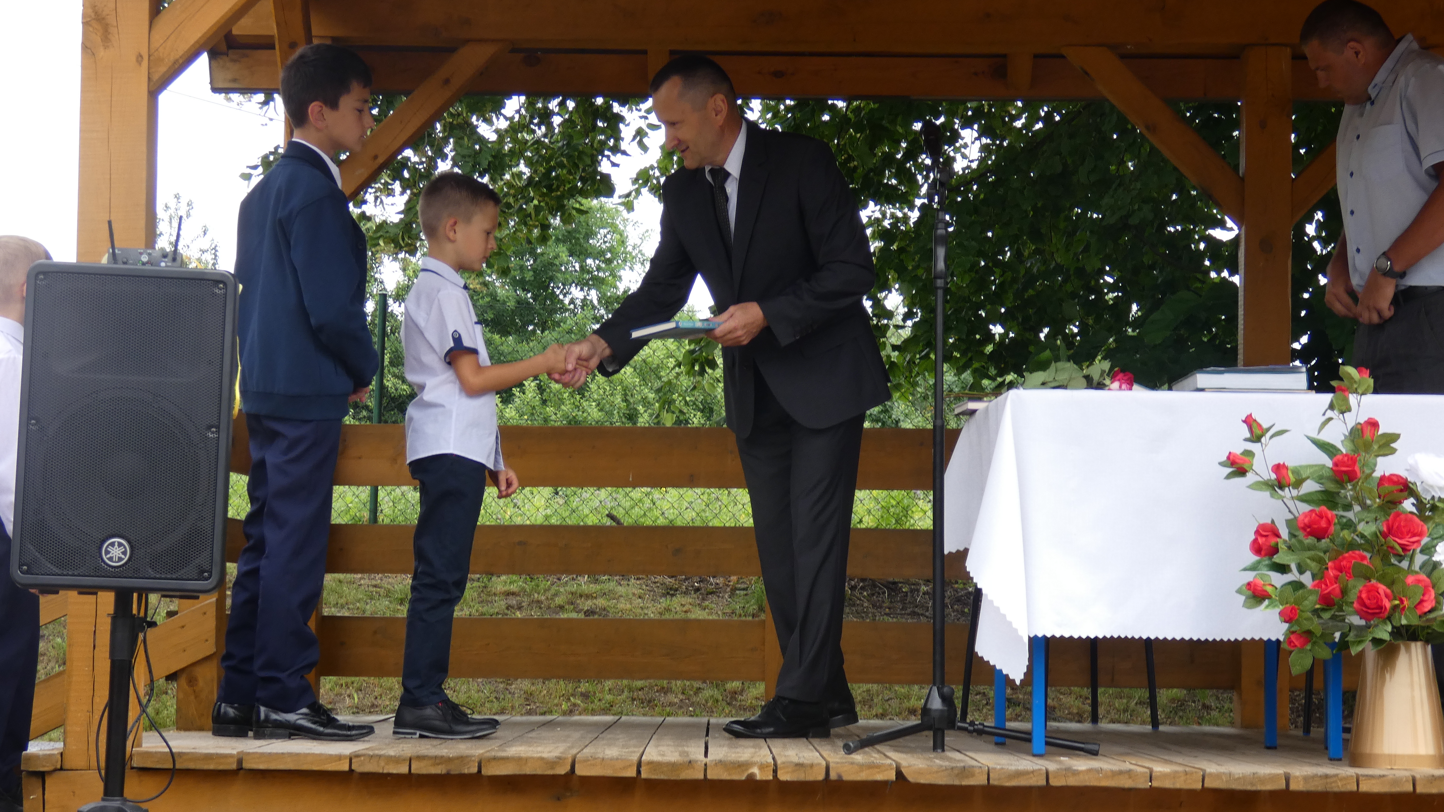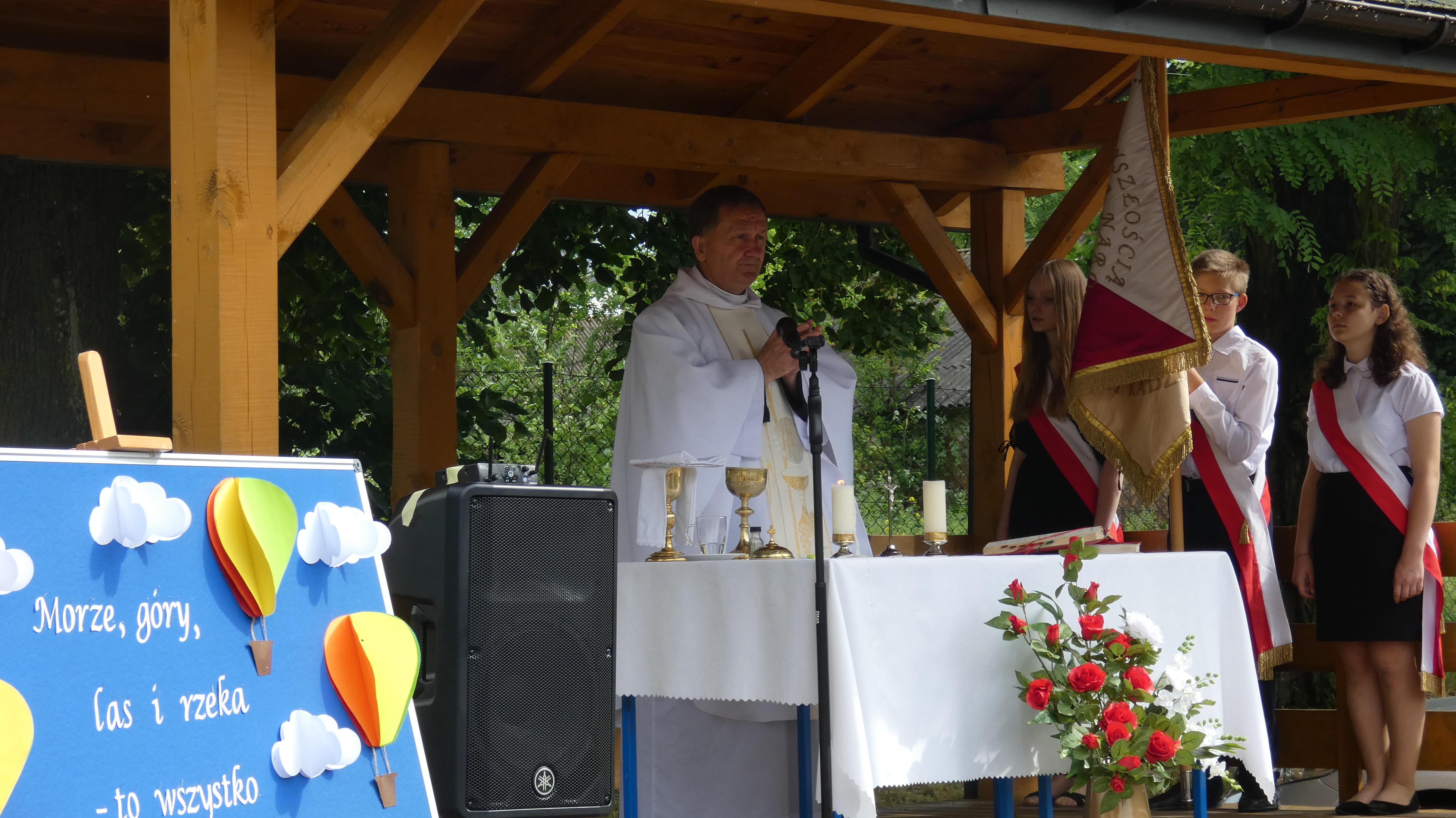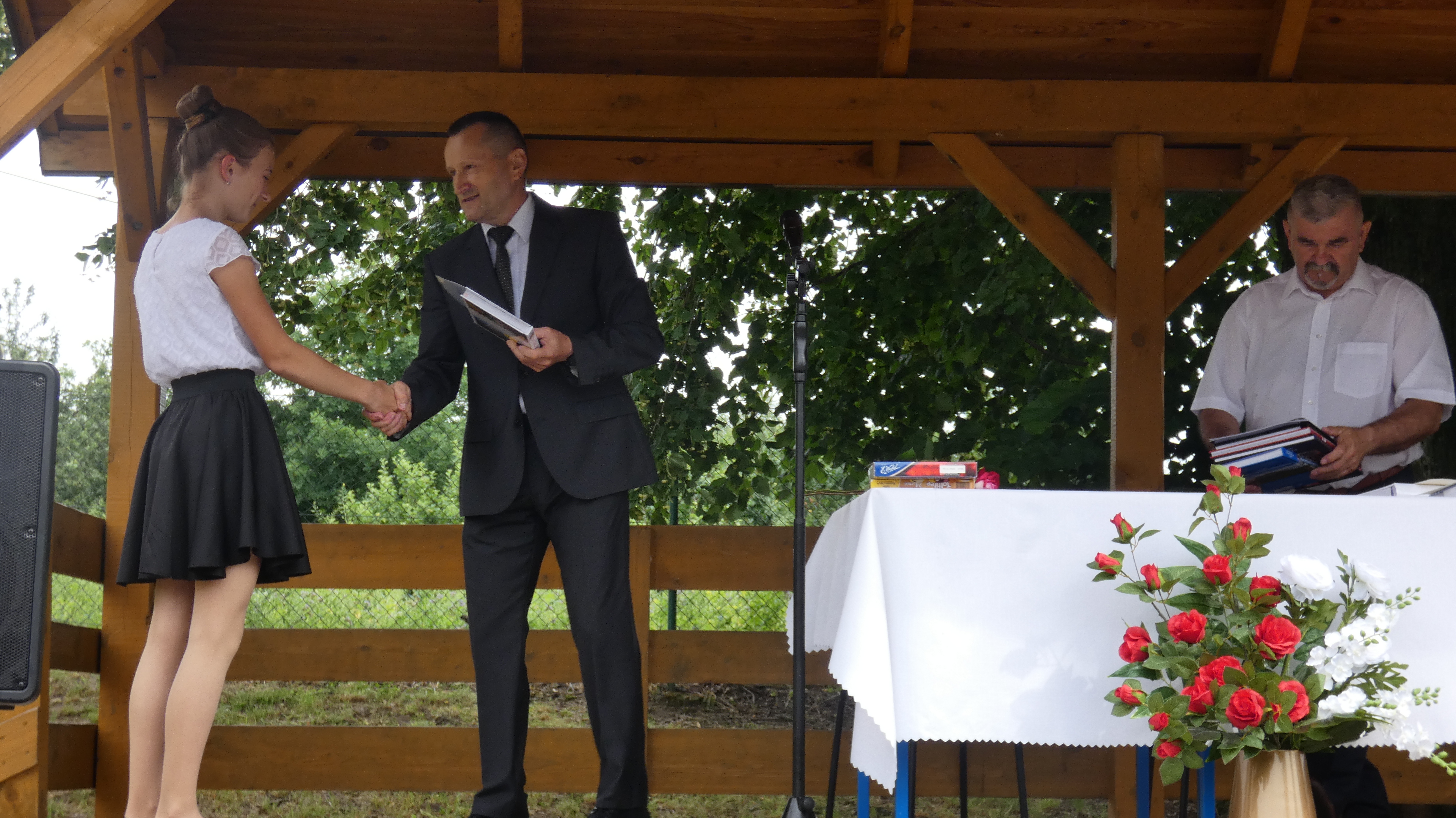 25 czerwca miało miejsce uroczyste zakończenie roku szkolnego. Uroczystość rozpoczęła Msza Święta, którą odprawił Ks. Adam Czupich z Radzięcina. Po jej zakończeniu odbyło się przekazanie sztandaru szkoły przez poczet klasy VIII uczniom klasy VII oraz ślubowanie absolwentów naszej szkoły. W dalszej kolejności głos zabrał Dyrektor Szkoły - Pan Stanisław Saj, który powitał zaproszonych gości i rodziców na czele z Panią Teodorą Rapa - Przewodniczącą Rady Rodziców. Władze samorządowe reprezentowali Pan Józef Rudy - Burmistrz Frampola, Pani Anna Ruszczak - Sekretarz Gminy Frampol oraz Pan Lech Kaczor - Przewodniczący Rady Miejskiej. Następną częścią uroczystości było wręczenie świadectw z wyróżnieniem oraz nagród książkowych i rzeczowych uczniom, którzy osiągnęli najwyższe wyniki nauczania i odnieśli sukcesy w konkursach. Pan Dyrektor przekazał również list gratulacyjny Państwu Jolancie i Grzegorzowi Dubaj, rodzicom ucznia klasy VIII Kacpra Dubaja, który zdobył dwukrotnie tytuł laureata oraz tytuł finalisty w Konkursie Wiedzy o Biblii i Kościele. Po oficjalnej części uroczystości uczniowie udali się do klas, gdzie otrzymali od swoich wychowawców świadectwa i życzenia zdrowych, bezpiecznych i radosnych wakacji.