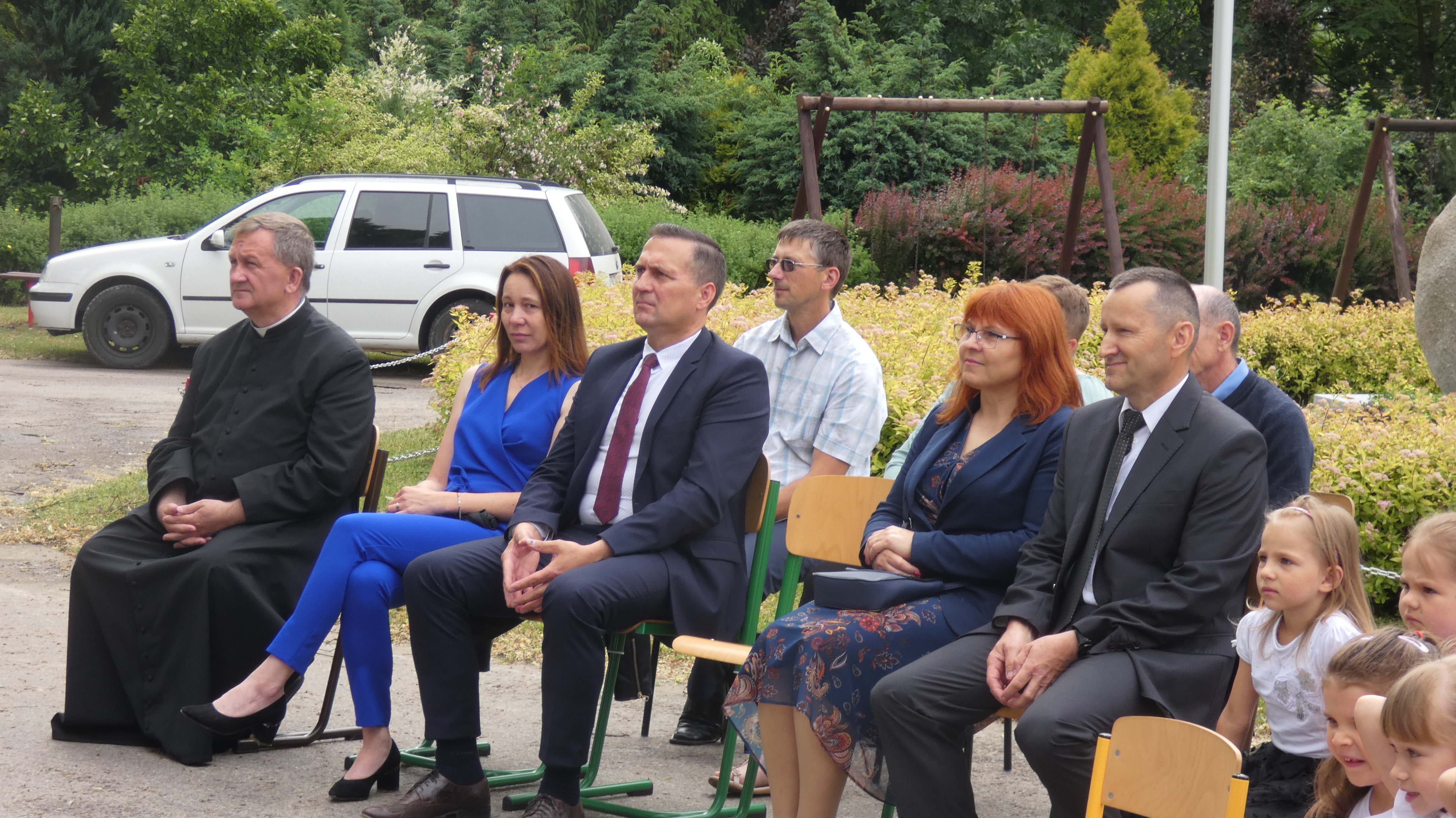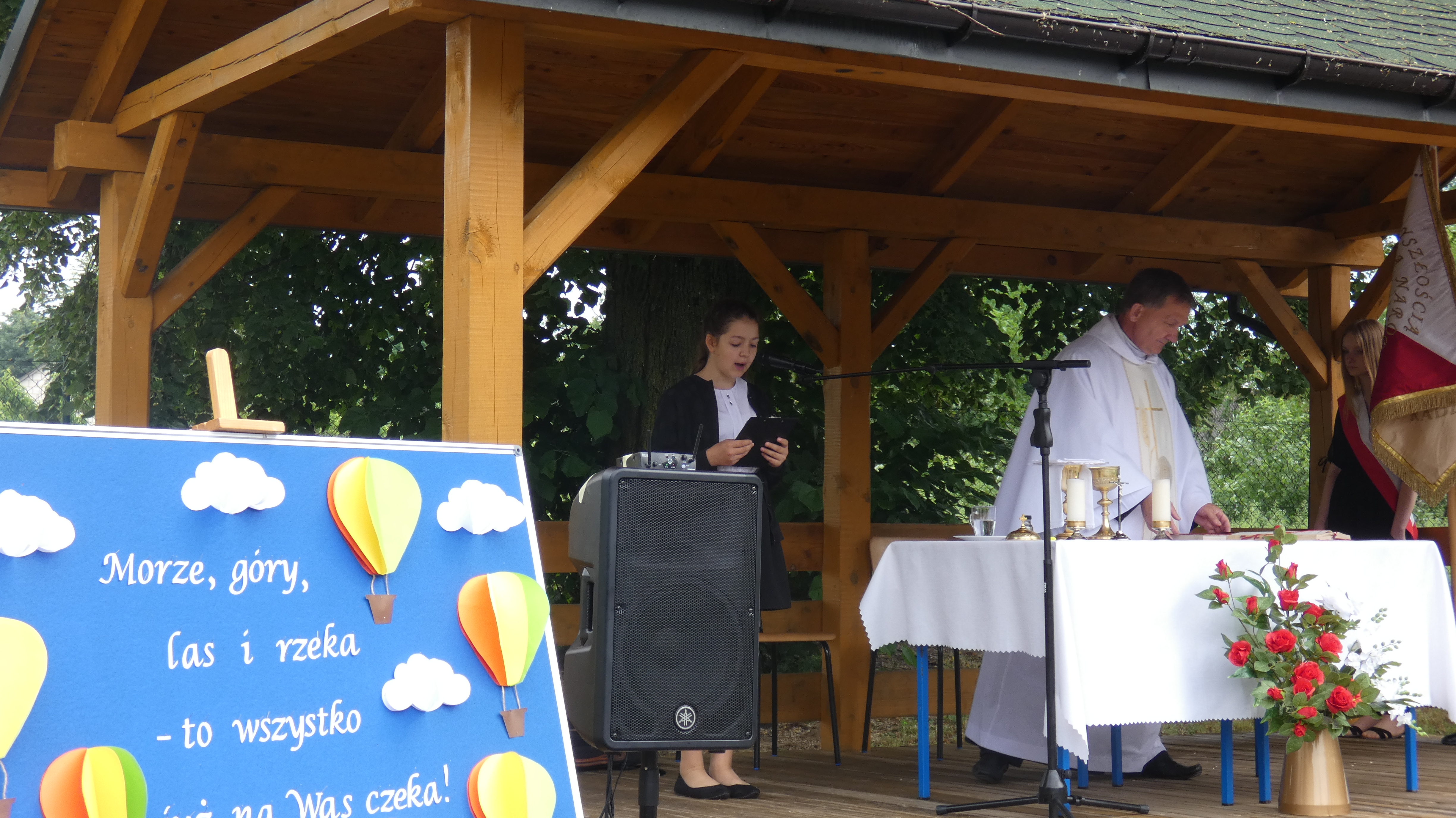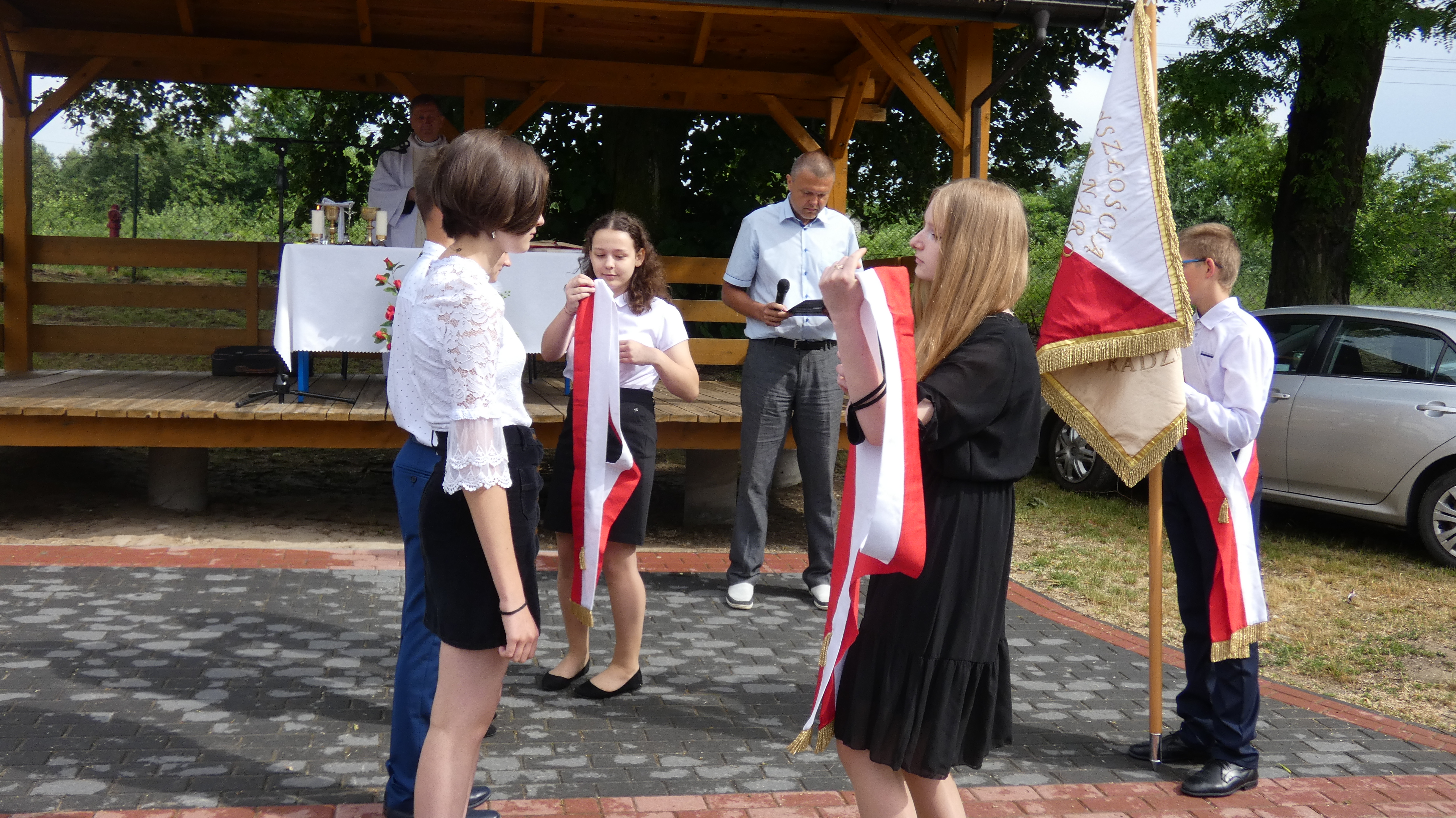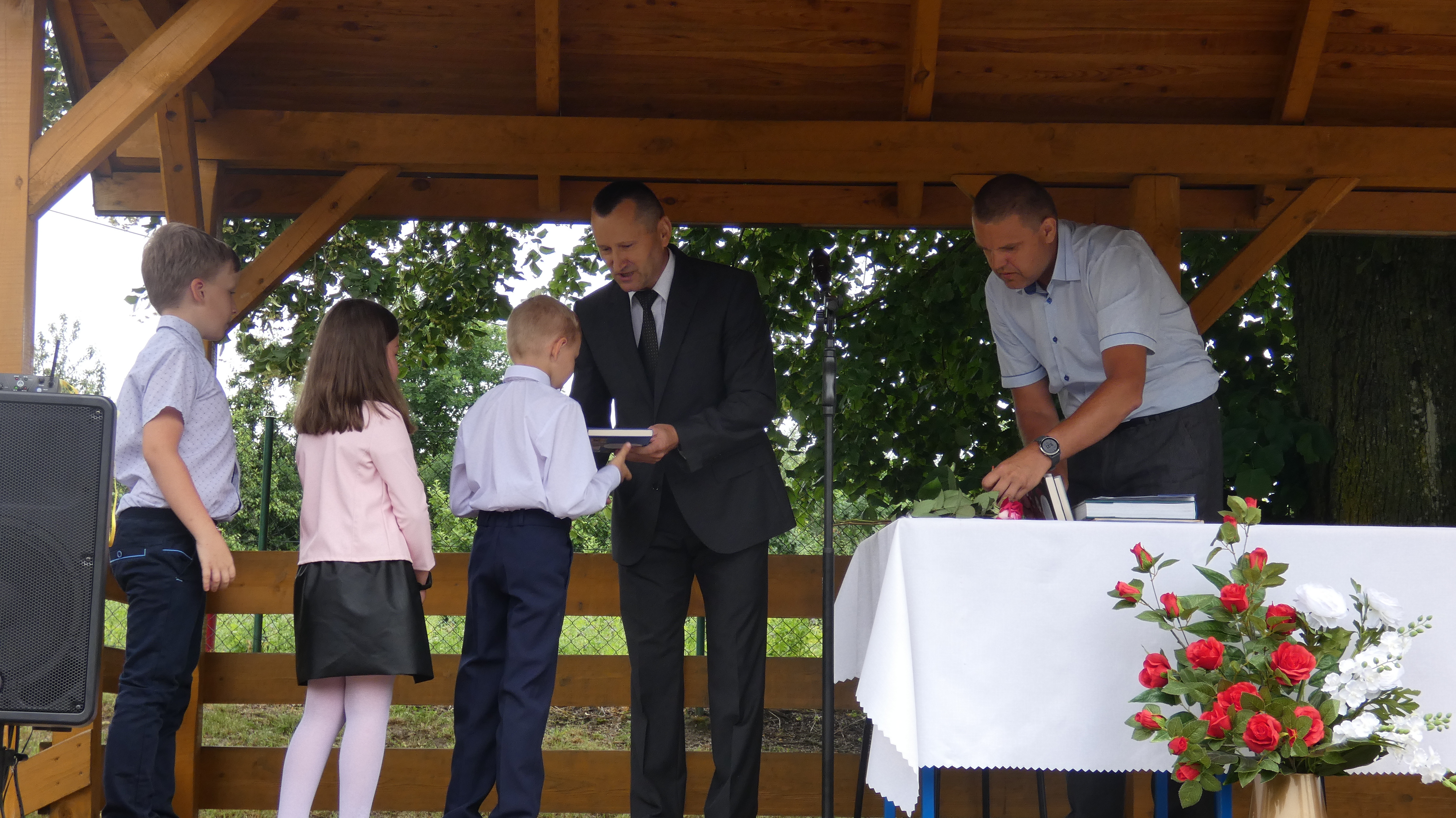 25 czerwca miało miejsce uroczyste zakończenie roku szkolnego. Uroczystość rozpoczęła Msza Święta, którą odprawił Ks. Adam Czupich z Radzięcina. Po jej zakończeniu odbyło się przekazanie sztandaru szkoły przez poczet klasy VIII uczniom klasy VII oraz ślubowanie absolwentów naszej szkoły. W dalszej kolejności głos zabrał Dyrektor Szkoły - Pan Stanisław Saj, który powitał zaproszonych gości i rodziców na czele z Panią Teodorą Rapa - Przewodniczącą Rady Rodziców. Władze samorządowe reprezentowali Pan Józef Rudy - Burmistrz Frampola, Pani Anna Ruszczak - Sekretarz Gminy Frampol oraz Pan Lech Kaczor - Przewodniczący Rady Miejskiej. Następną częścią uroczystości było wręczenie świadectw z wyróżnieniem oraz nagród książkowych i rzeczowych uczniom, którzy osiągnęli najwyższe wyniki nauczania i odnieśli sukcesy w konkursach. Pan Dyrektor przekazał również list gratulacyjny Państwu Jolancie i Grzegorzowi Dubaj, rodzicom ucznia klasy VIII Kacpra Dubaja, który zdobył dwukrotnie tytuł laureata oraz tytuł finalisty w Konkursie Wiedzy o Biblii i Kościele. Po oficjalnej części uroczystości uczniowie udali się do klas, gdzie otrzymali od swoich wychowawców świadectwa i życzenia zdrowych, bezpiecznych i radosnych wakacji.