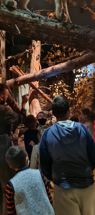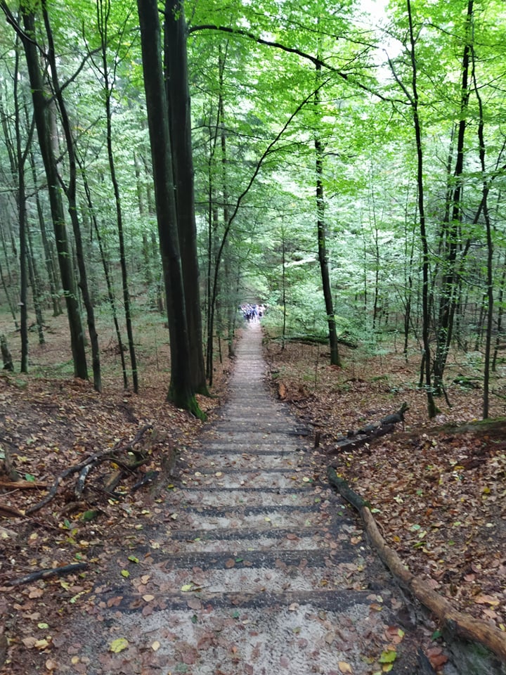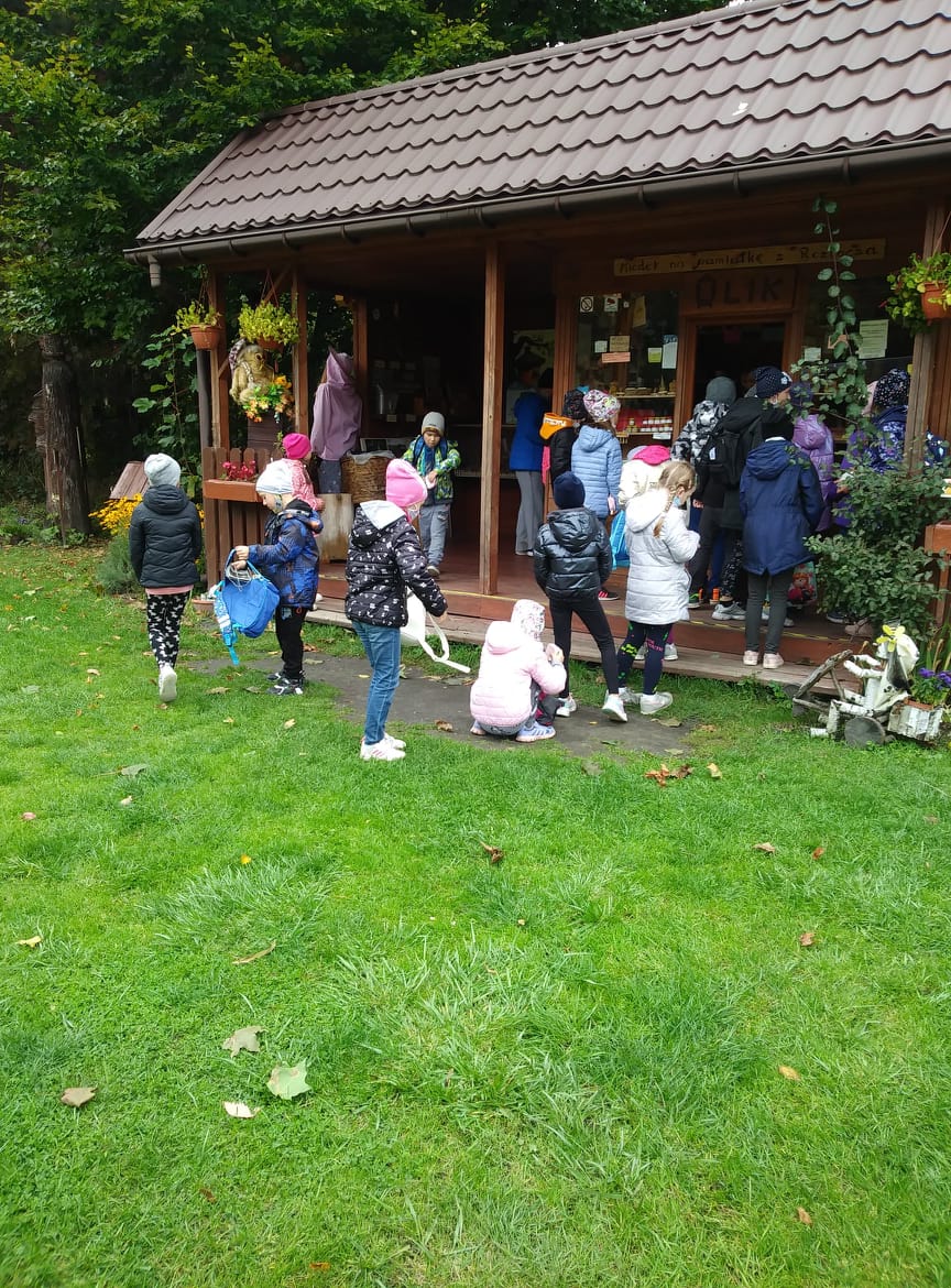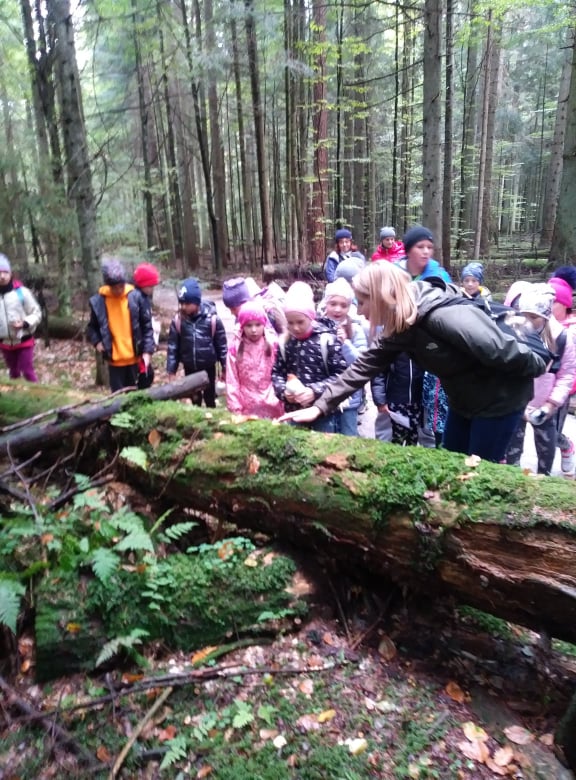 Panią przewodnik spotkaliśmy w Ośrodku Edukacyjno-Muzealnym. Przedstawiła ona zasady zachowania się w Parku Narodowym i przygotowała dla dzieci zagadkę. Miały one rozpoznać za pomocą dotyku, co znajduje się w dużej kopercie. Prawie wszyscy rozpoznali pióro ptaka. Naszą wycieczkę rozpoczęliśmy od ścieżki edukacyjnej na Bukową Górę. Trasa wiodła ze Zwierzyńca (od Ośrodka Edukacyjno- Muzealnego RPN), na Bukową Górę, do miejscowości Sochy. Poznaliśmy niezwykłą różnorodność przyrodniczą od boru sosnowego przez bór jodłowy do buczyny. W trakcie wycieczki dzieci otrzymały maskotki ptaków oraz ilustracje. Najpierw szlak był bardzo łagodny, lecz po jakimś czasie zaczęły się „schody”. Teren do pokonania był bardzo stromy. Ścieżka uważana jest za trudną ze względu na różnicę wzniesień wynoszącą 80 m. Na szczęście dla ułatwienia wędrówki, w stromy stok, wbudowane są drewniane schody. Do pokonania było bardzo dużo schodów. Wszyscy szczęśliwie dotarli na szczyt Bukowej Góry. Potem było już z górki. Zatrzymaliśmy się przy punkcie widokowym z panoramą na strefę krawędziową Roztocza Środkowego, gdzie mogliśmy podziwiać piękne widoki, a uczniowie dobrani w pary (maskotka i ilustracja) opisywali wygląd ptaków i słuchali ich odgłosów. Po powrocie do Ośrodka Edukacyjno – Muzealnego RPN obejrzeliśmy film o przyrodzie Roztoczańskiego Parku Narodowego „W krainie jodły, buka i tarpana” oraz zwiedziliśmy wraz z przewodnikiem wystawę ekspozycji stałej, która ukazywała bogactwo przyrody ożywionej i nieożywionej parku. Na zakończenie wycieczki czekało na nas rozpalone ognisko. Nadszedł czas na posiłek. Opiekunowie wycieczki przygotowali dla uczniów kiełbaski. Podsumowaniem owocnie spędzonego czasu były pamiątki zakupione przez dzieci oraz upominki otrzymane od pani przewodnik.