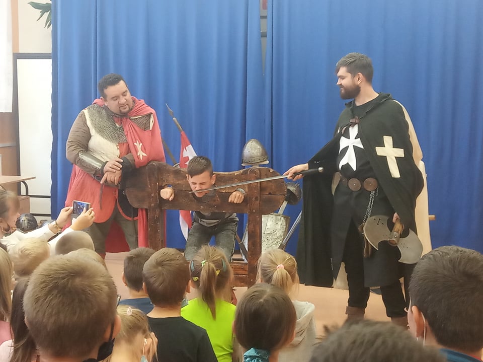Pod takim hasłem grupa artystyczna Rekonstrukto przedstawiła w naszej szkole pokaz historyczny. W programie występów znalazły się: prezentacja obyczajów i kultury epoki, przegląd ekwipunku i uzbrojenia, gry i zabawy plebejskie oraz zapierające dech w piersiach pojedynki. Była to żywa lekcja historii, która w interesujący i zabawny sposób przybliżyła nam realia epoki średniowiecza.