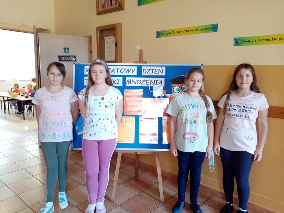 Pierwszego października świętowaliśmy XI Światowy Dzień Tabliczki Mnożenia. Ze względu na reżim sanitarny uczniowie świętowali w swoich klasach podczas lekcji matematyki. Dzieci i młodzież założyli tego dnia koszulki z hasłami reklamującymi matematykę i działaniami z tabliczki mnożenia. W trakcie lekcji każda z klas mierzyła się ze stacjami zadaniowymi. Ta forma pracy przypadła im do gustu, ponieważ mogli pracować w grupach i swobodnie poruszać się po klasie w poszukiwaniu kolejnej stacji. Na zakończenie każdy mógł się zmierzyć z quizem "Czy jesteś mądrzejszy od ósmoklasisty?"