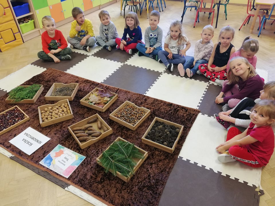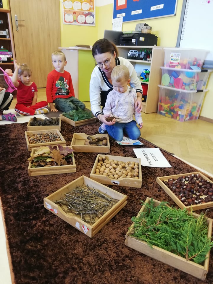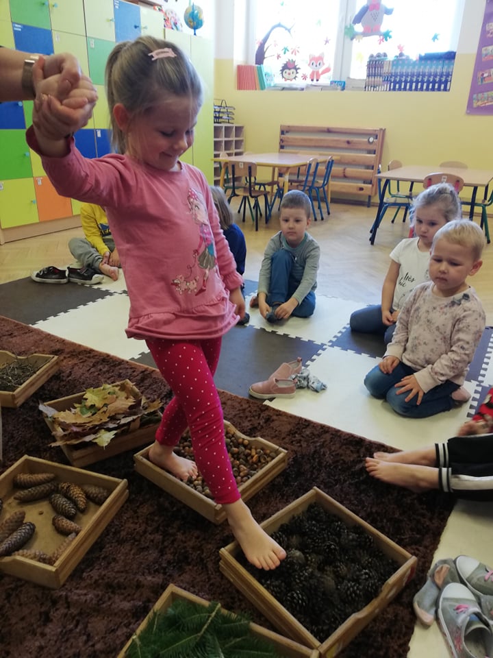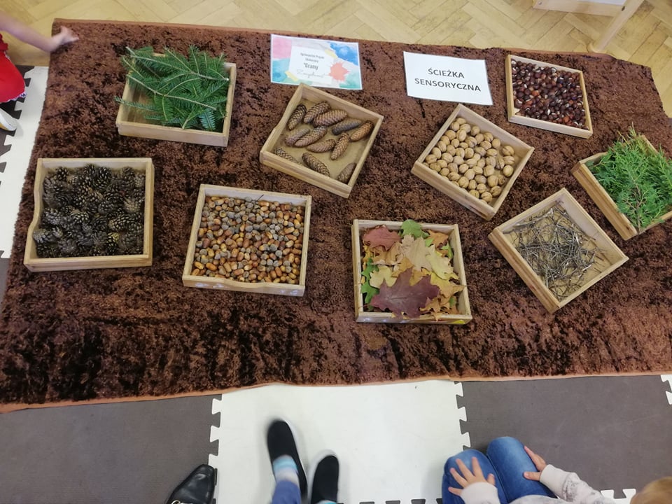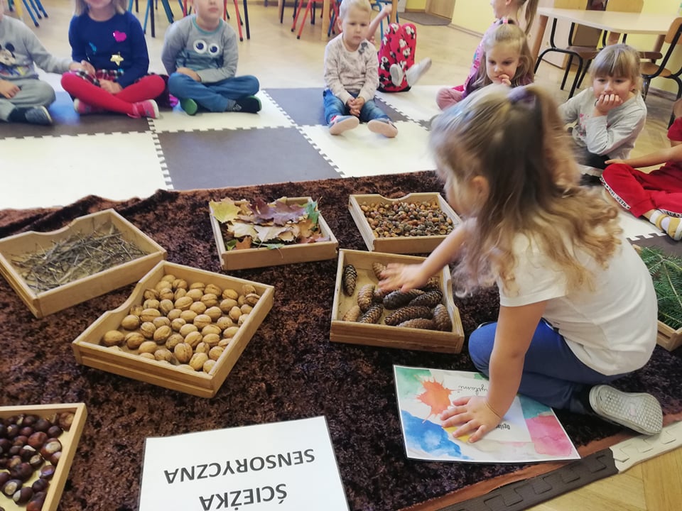Przedszkolaki z oddziału 3-5 latków biorą udział w Ogólnopolskim Projekcie Edukacyjnym „Gramy Zmysłami”. Głównym celem projektu jest innowacyjne i kreatywne podejście do tematyki rozwijania zmysłów u dzieci. Co miesiąc będzie realizowane jedno zadanie. W październiku była to jesienna ścieżka sensoryczna. Dzieci rozwijały zmysł dotyku, sprawność motoryczną, równowagę i węch. Ścieżka wykonana z darów jesieni sprawiła dzieciom mnóstwo radości. Czekamy na kolejne zadania!