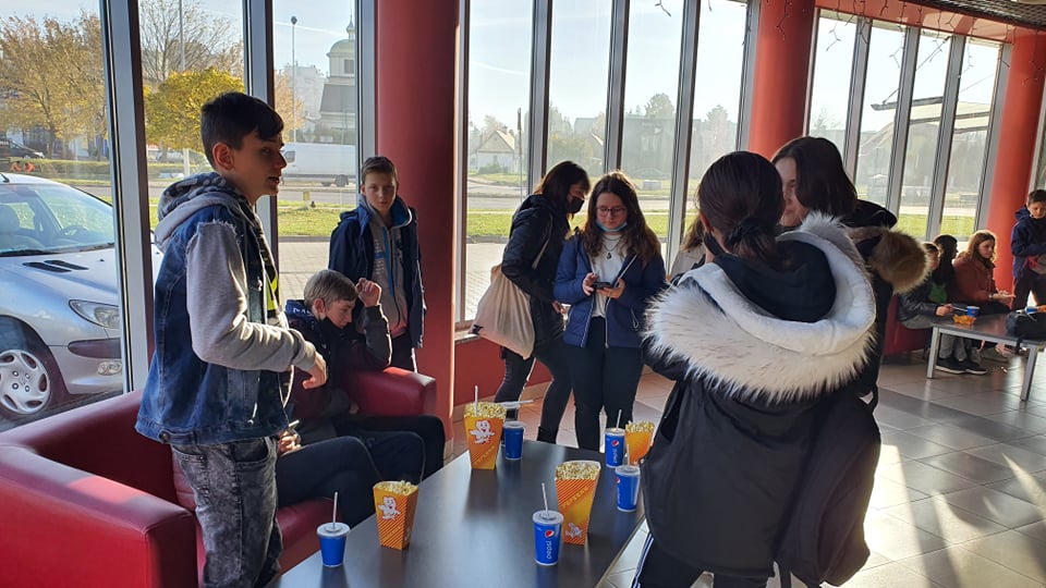 We wtorek 26 października 2021 roku uczniowie klas siódmej i ósmej wraz z opiekunami pojechali na wycieczkę do Zamościa. Po dotarciu na miejsce wszyscy udali się do Centrum Kultury Filmowej Stylowy, by obejrzeć film pt. Czarny młyn w reżyserii Mariusza Paleja, będący adaptacją słynnej powieści dla dzieci i młodzieży Marcina Szczygielskiego o tym samym tytule. Młodzi widzowie z zainteresowaniem śledzili losy głównych bohaterów ukazywane na ekranie. Nie zabrakło momentów skłaniających do refleksji czy scen wywołujących wzruszenie. Jednocześnie autorzy produkcji zadbali o wartkość akcji, a także wprowadzili elementy zaskoczenia.
