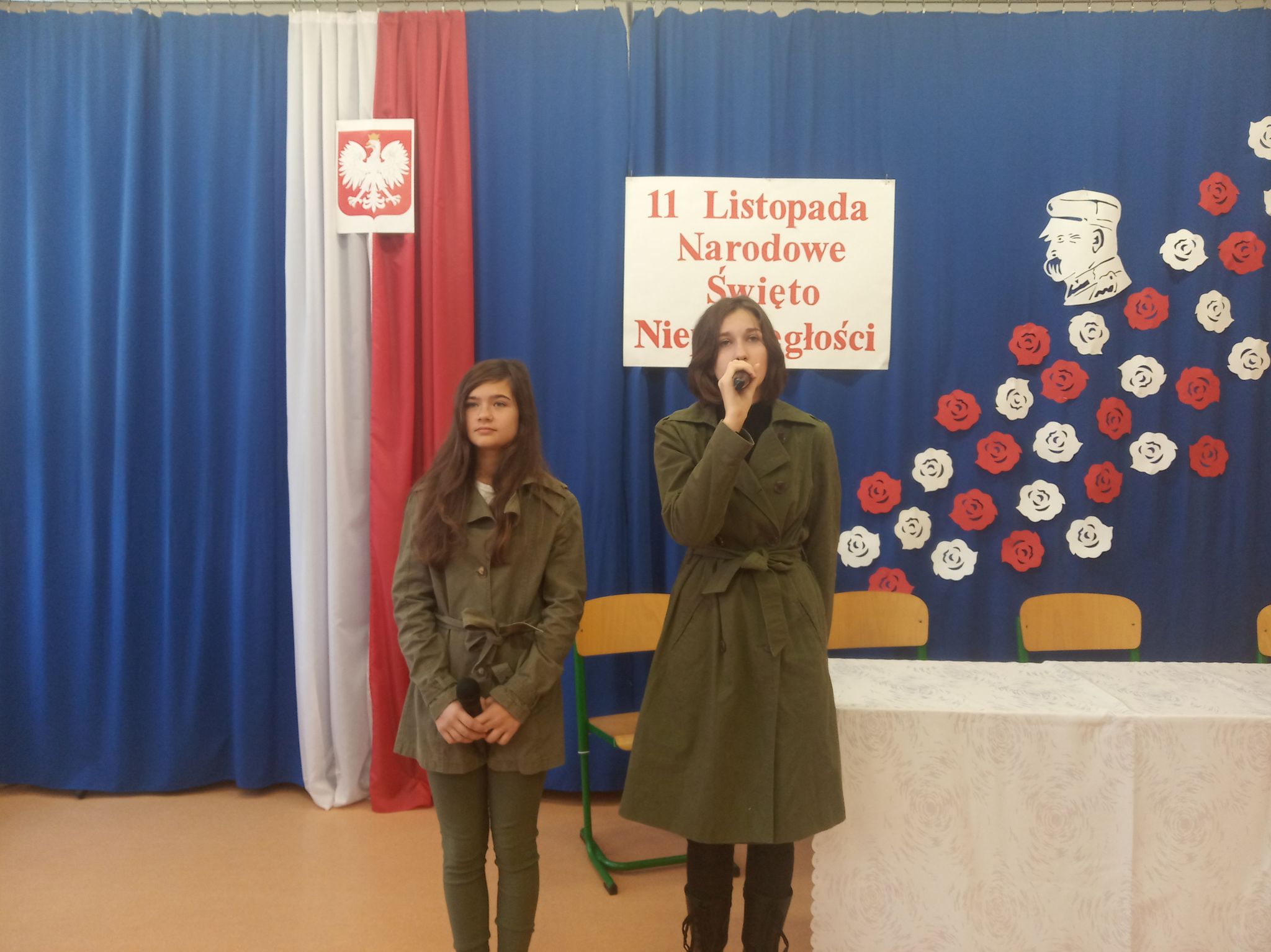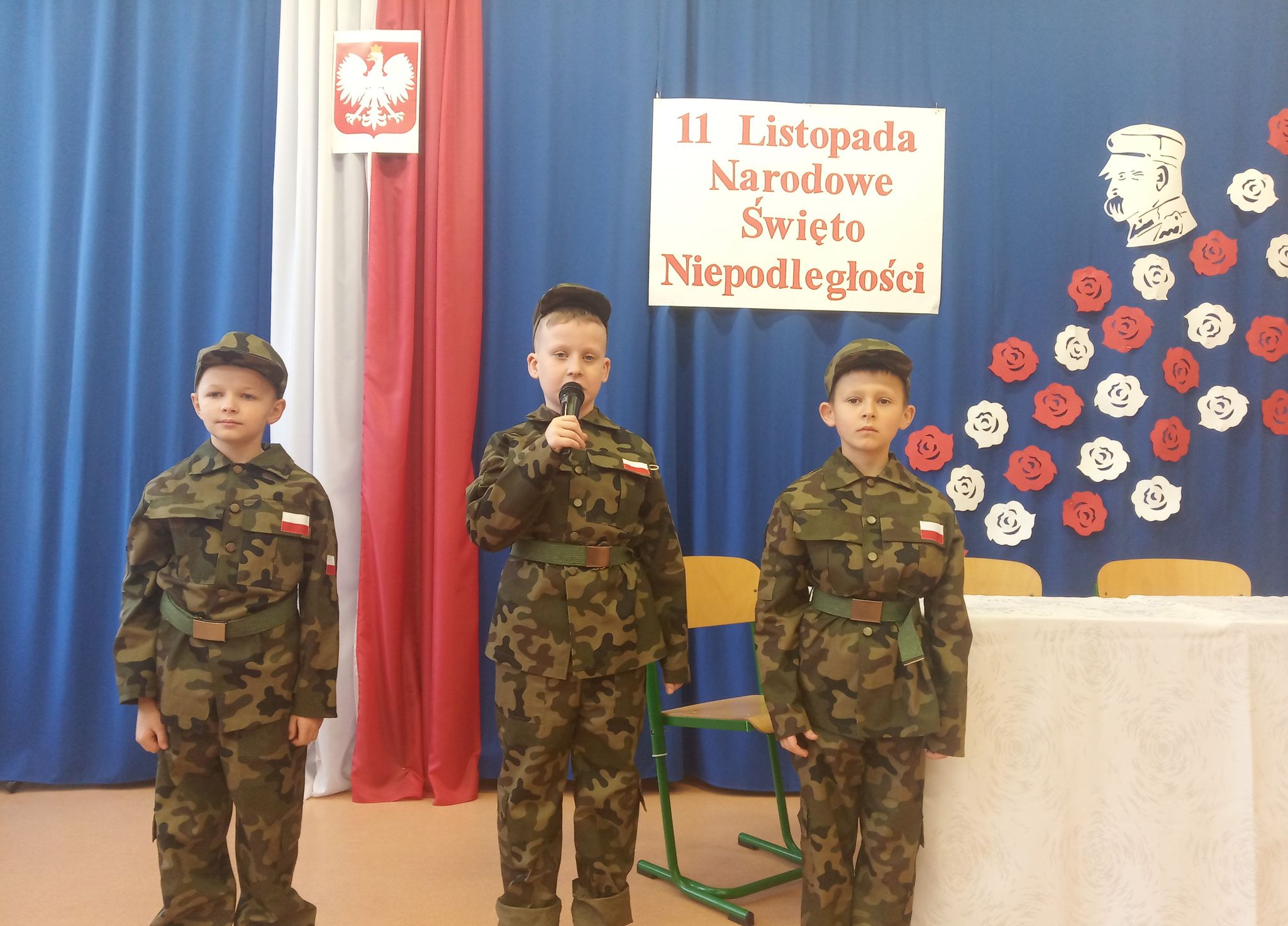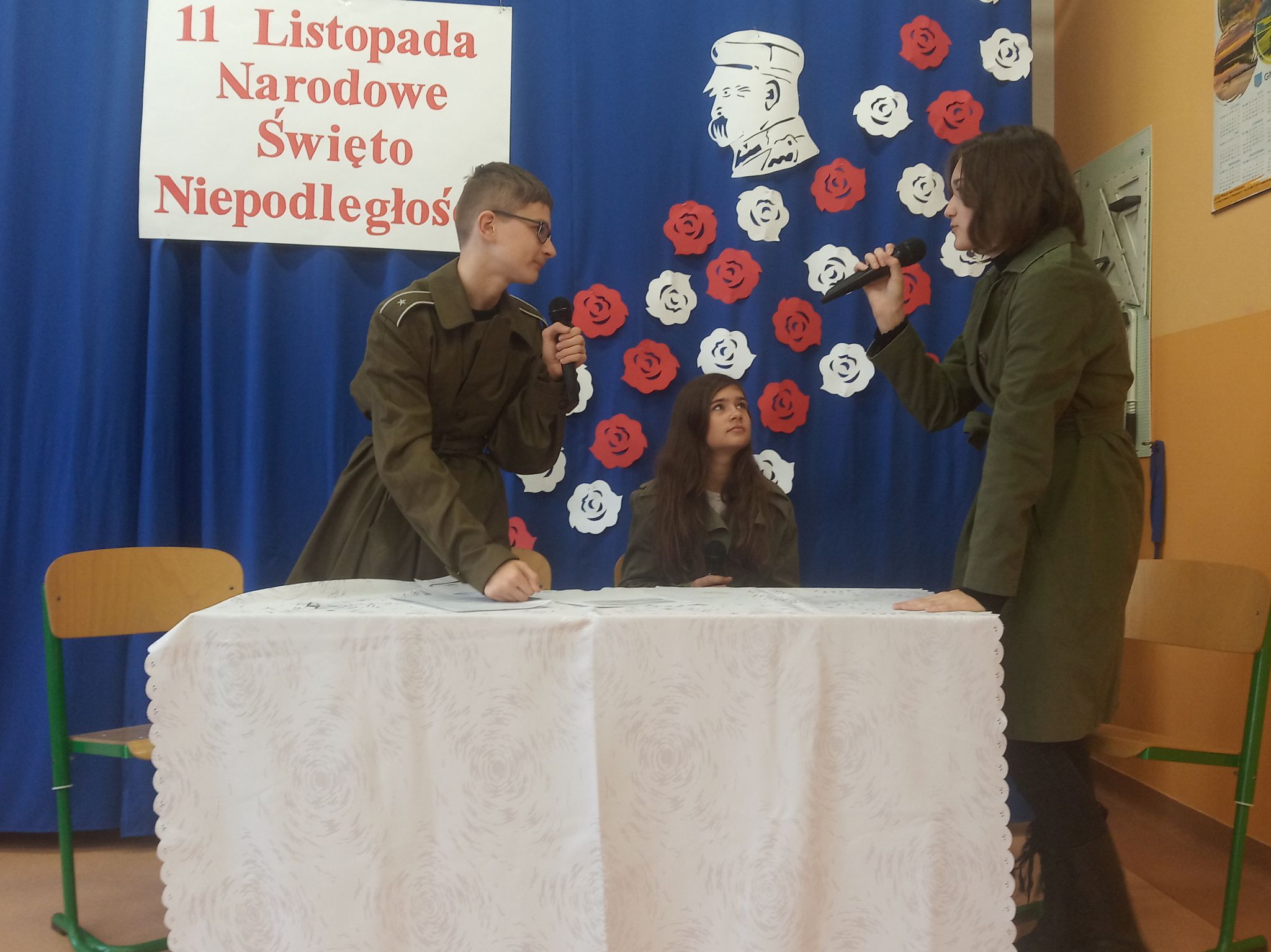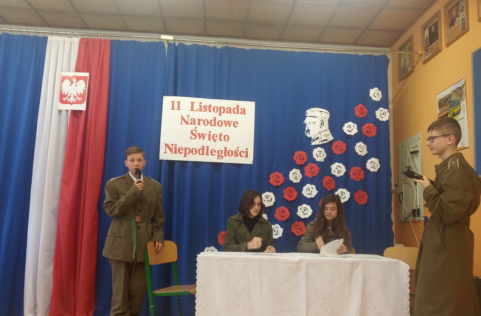 Następnie narratorzy przybliżyli wydarzenia historyczne, które przyczyniły się do odbudowania autonomii kraju. Zwrócili uwagę na to, jak ważna jest wiedza na temat przeszłości swego narodu. Uroczystość uświetniły wiersze oraz piosenki o tematyce patriotycznej.
