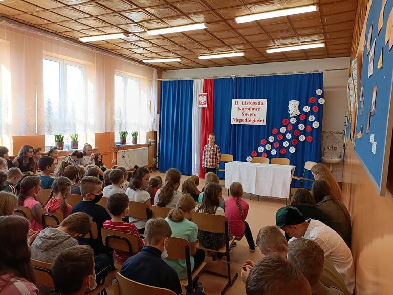 Aby uczcić Święto Narodowe, chętni uczniowie z klas III-VIII przygotowali pod kierunkiem nauczycieli akademię, mającą na celu przybliżenie najważniejszych wydarzeń z historii – począwszy od rozbiorów, aż do przywrócenia państwu niezależności. Uroczysty apel odbył się 9 listopada.