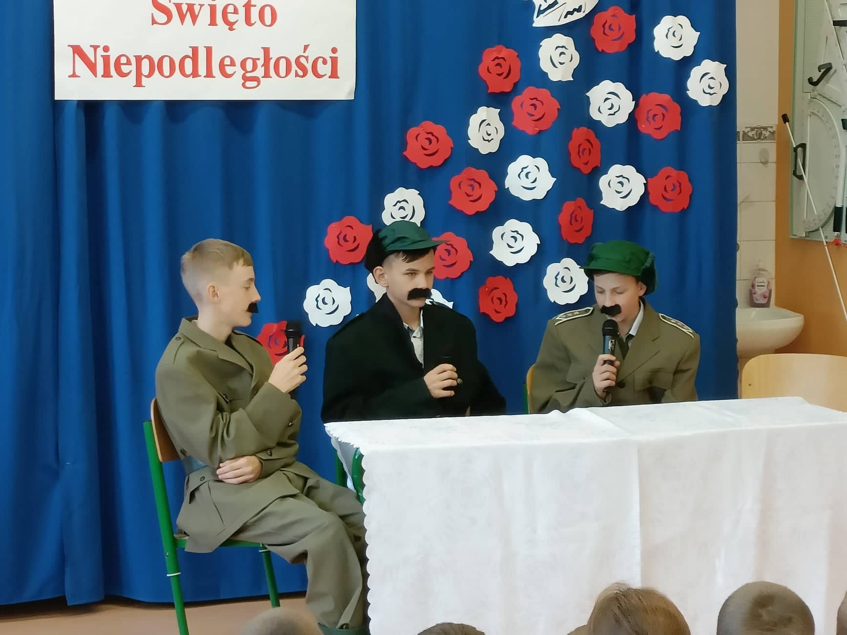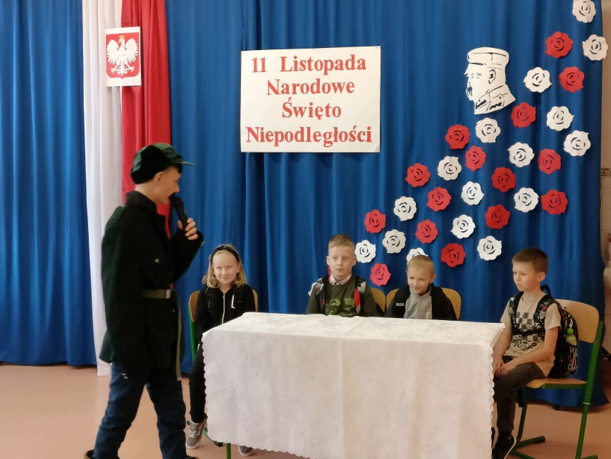Na początku widzowie mieli okazję obejrzeć krótki spektakl teatralny. Pozwolił on przenieść się mentalnie do czasów, w których suwerenność Polski została zachwiana. Stało się to pod koniec XVIII wieku. Wówczas trzy wrogie państwa – Rosja, Prusy i Austria, korzystając z osłabienia naszego kraju, podzieliły jego ziemie pomiędzy siebie i wprowadziły własne rządy. Uczniowie odegrali więc scenki ukazujące życie pod zaborami, a na zakończenie przedstawili symbolicznie moment wyzwolenia Polski spod jarzma niewoli.