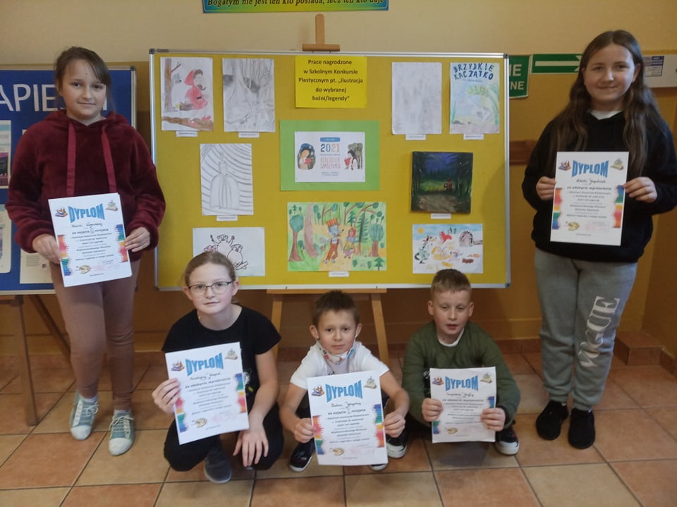 Wszystkie osoby, które wzięły udział w konkursach, otrzymały pamiątkowe dyplomy z rąk Pana Dyrektora. Prace konkursowe można podziwiać na gazetkach zdobiących szkolny korytarz.