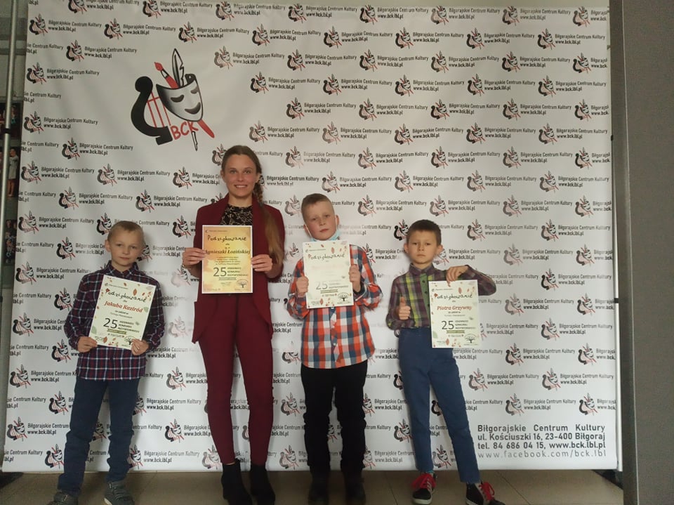 W piątek 12 listopada w Biłgorajskim Centrum Kultury odbył się Turniej Powiatowy 25. Jesiennego Konkursu Recytatorskiego przebiegającego pod hasłem „Śmiechem-żartem”. Wzięło w nim udział trzech uczniów naszej szkoły: Szymon Bryła, Jakub Kaziród oraz Piotr Grzywna z klasy IV, którzy zostali wcześniej laureatami eliminacji szkolnych.