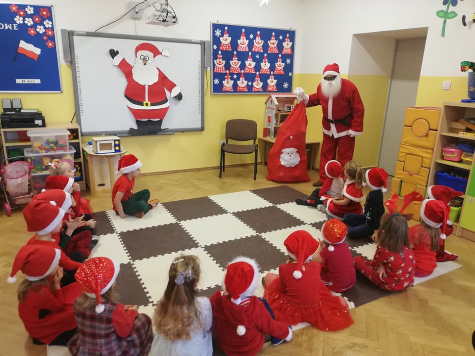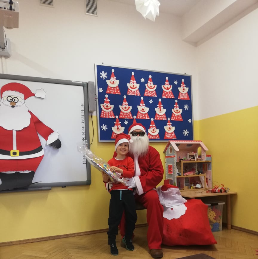 Wizyta świętego Mikołaja w grupie 3-5-latków oraz w zerówce to jeden z najbardziej oczekiwanych przez dzieci dni w roku. Wszystkie przedszkolaki bardzo przeżywały to spotkanie, szczególnie te, które pierwszy raz witały Mikołaja w przedszkolu. Dzieci z ogromną radością przywitały Mikołaja wierszykiem oraz piosenkami przygotowanymi specjalnie na tę okazję. Święty Mikołaj wręczył piękne prezenty wszystkim przedszkolakom, a dzieci obiecały, że przez cały rok będą grzeczne :-)