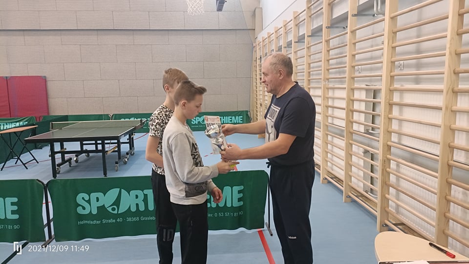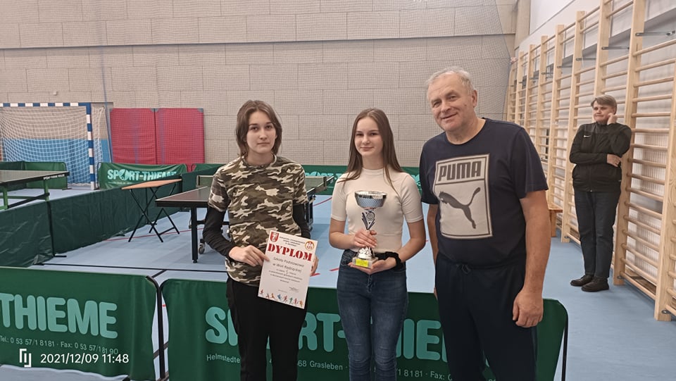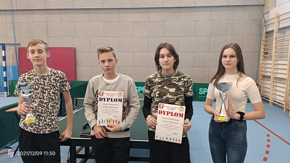 9 grudnia w odnowionej hali Zespołu Szkół Zawodowych i Budowlanych w Biłgoraju odbyły się Powiatowe Igrzyska Młodzieży w drużynowym tenisie stołowym. Po rozegranych pojedynkach zwycięskimi drużynami okazały się nasze dwie reprezentacje, zarówno dziewcząt jak i chłopców. W skład zespołów wchodzili: Łucja Sitarz, Natalia Wójcik, Filip Dubaj i Damian Bryła, wszyscy z klasy 8. Gratulujemy zwycięstwa i dziękujemy za reprezentowanie szkoły.
