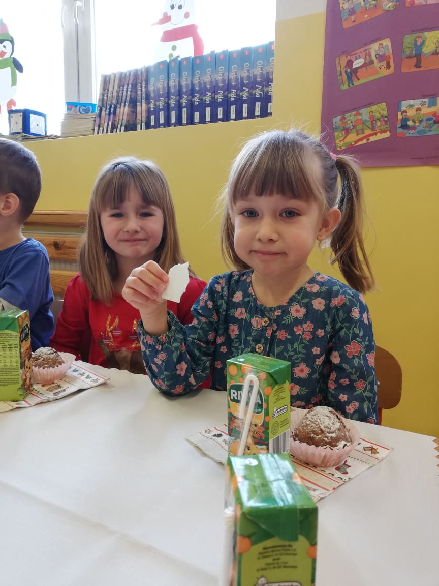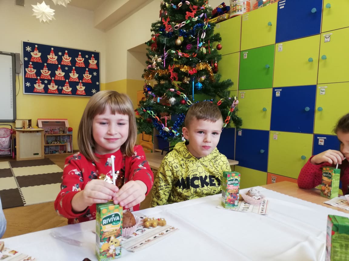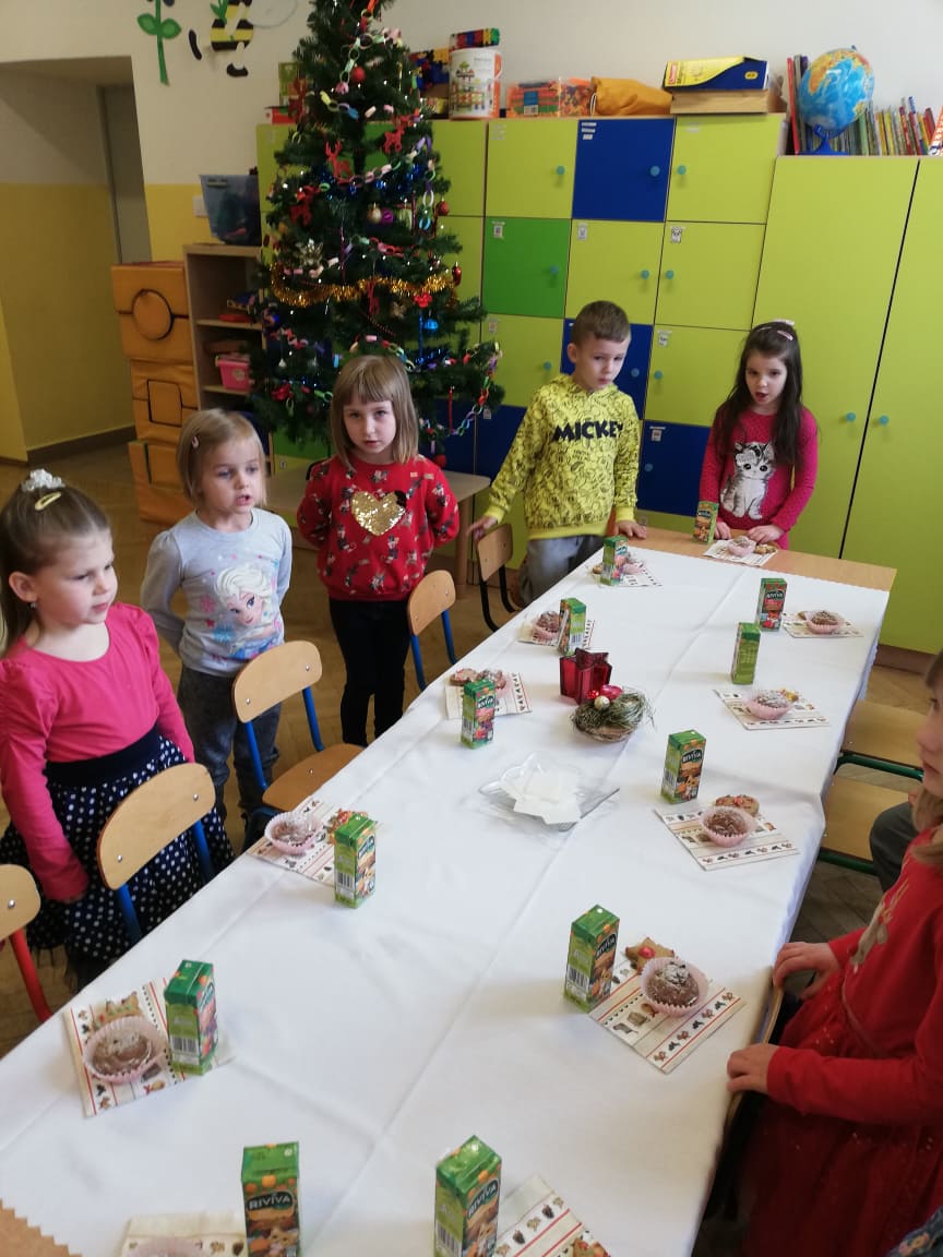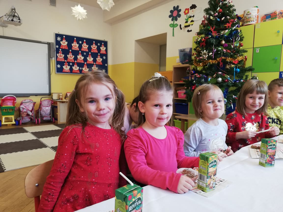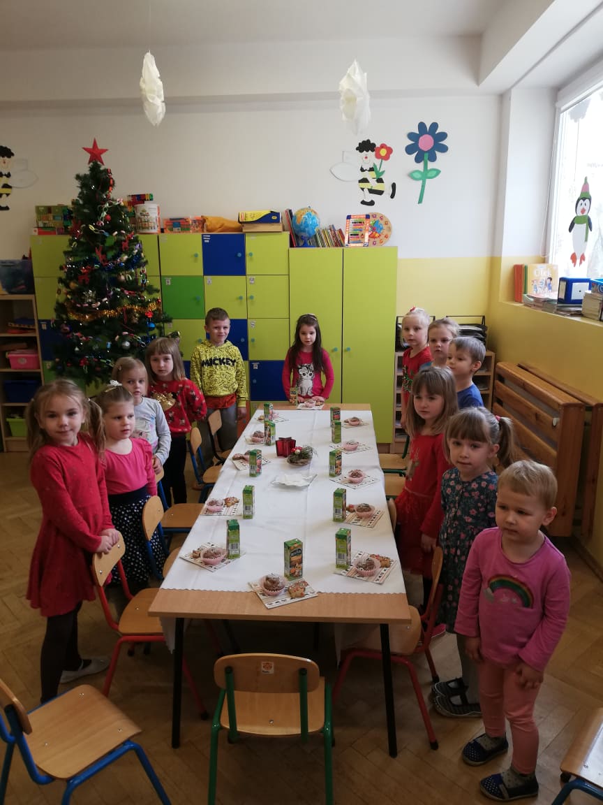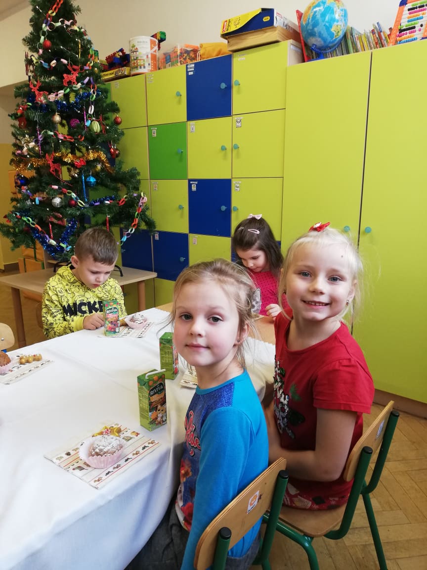W środę 22 grudnia w oddziałach przedszkolnych odbyła się Wigilia. W tym szczególnym dniu dzieci dzieląc się opłatkiem, składały sobie życzenia, a następnie zasiadły przy wspólnie przygotowanym stole na słodki poczęstunek. Nie zabrakło również słuchania i wspólnego śpiewania kolęd. Czas upłynął w bardzo miłej i serdecznej atmosferze. Wszyscy poczuli zbliżające się święta Bożego Narodzenia. Takie chwile nie tylko utrwalają dzieciom znajomość tradycji i zwyczajów świątecznych, ale również wzmacniają bliskie, serdeczne relacje.