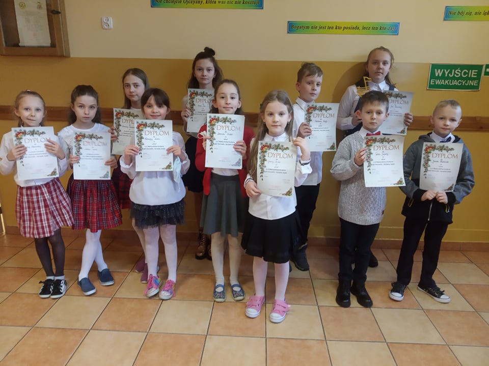 Naszą szkołę reprezentowały dwie solistki: Nikola Żuk z klasy IV i Julia Leśniewska z klasy VII, a także trzy zespoły: Weronika Bielak, Joanna Bryła, Katarzyna Marzec z klasy II; Wiktoria Bielak, Marcelina Brzozowska, Lena Leśniewska z klasy III oraz Jakub Kaziród, Szymon Bryła i Piotr Grzywna z klasy IV.