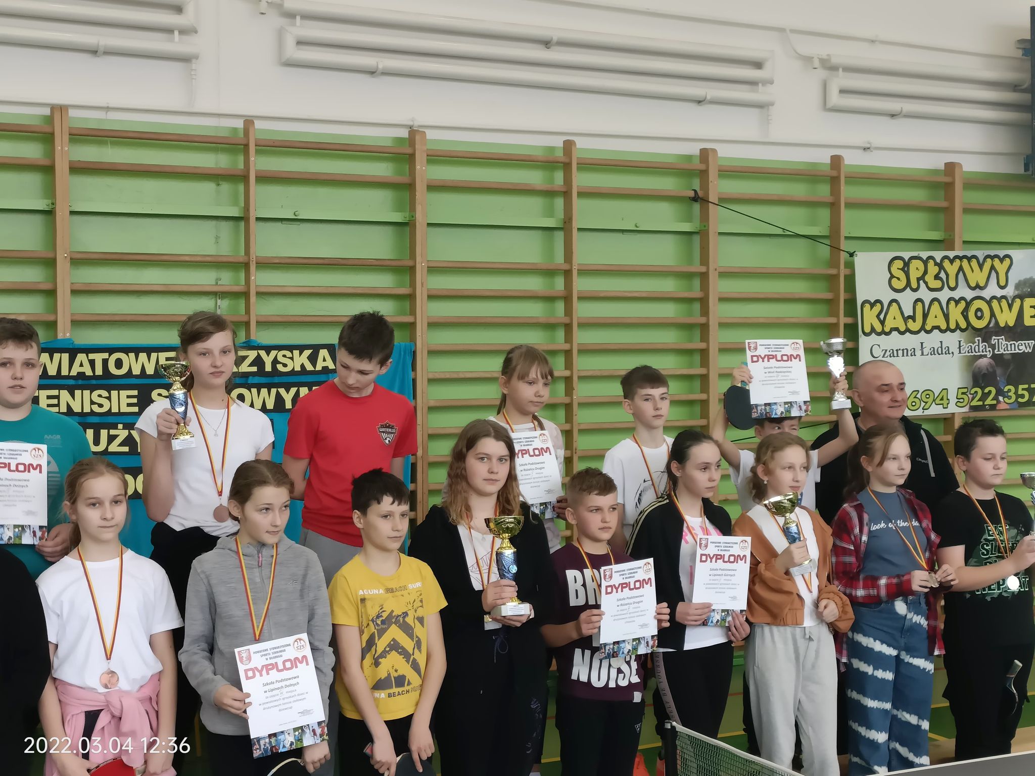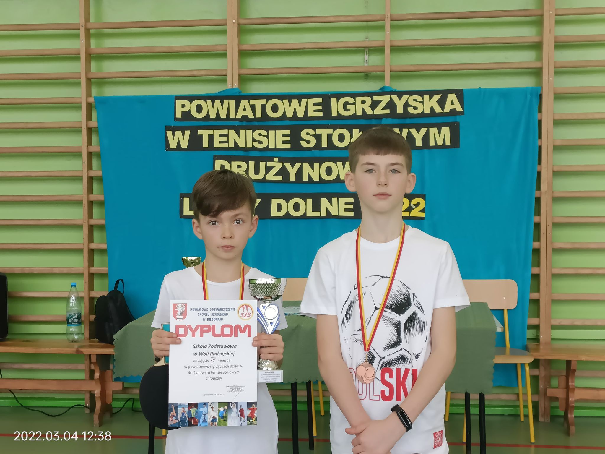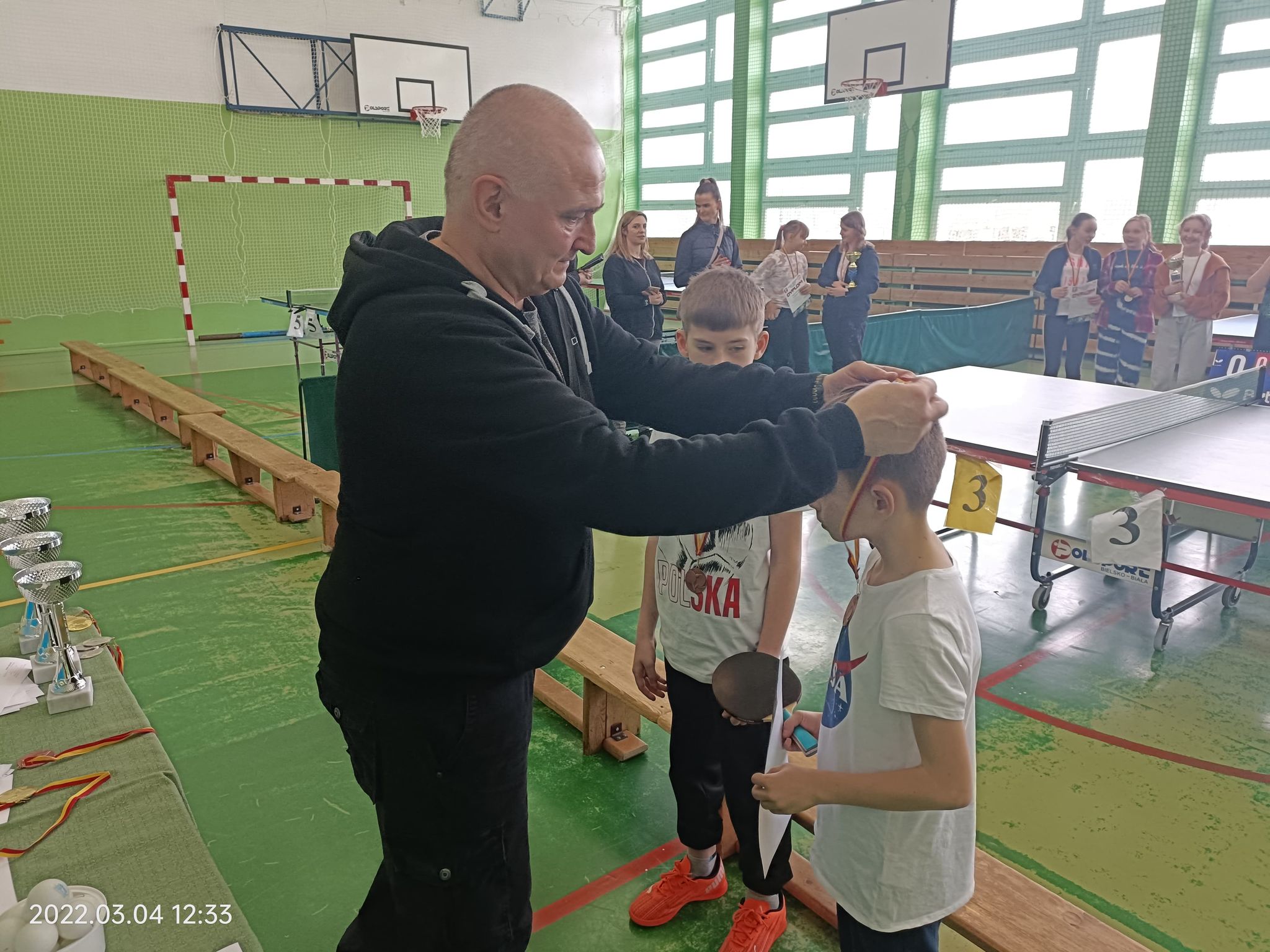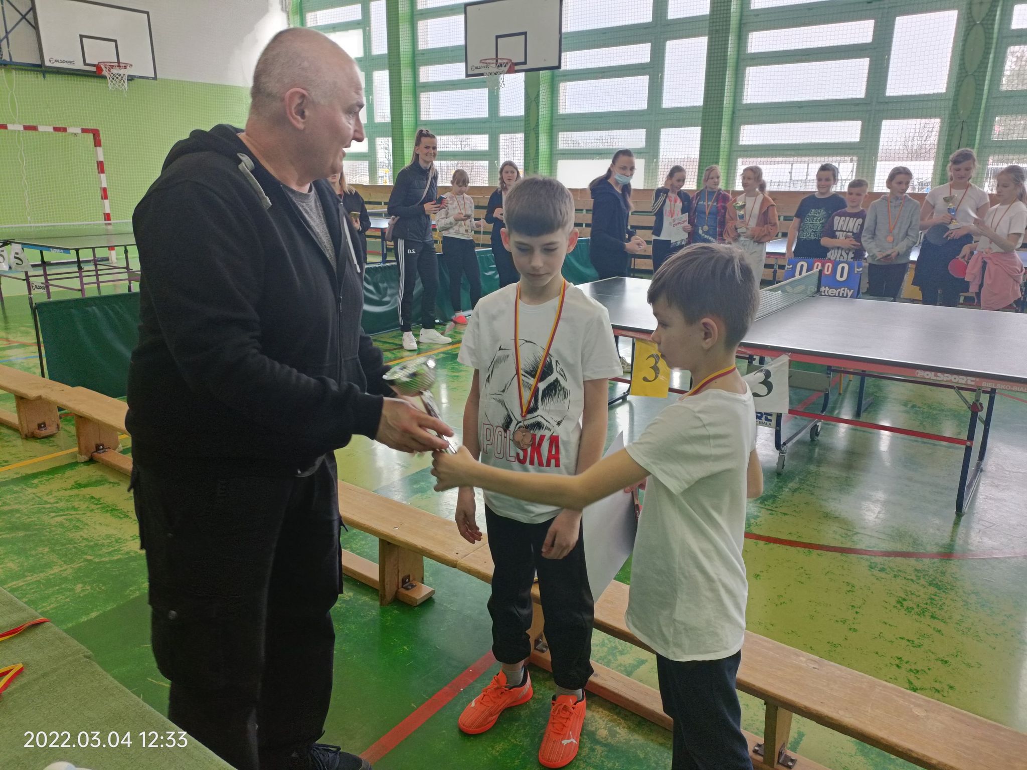 4 marca na obiektach Publicznej Szkoły Podstawowej im. Św. Franciszka z Asyżu w Lipinach Dolnych odbyły się Powiatowe Igrzyska Dzieci w tenisie stołowym drużynowym. Naszą szkołę reprezentowali Sebastian Pacyk z klasy IV i Dominik Bryła z klasy III. Po rozegraniu wszystkich spotkań ostatecznie zajęli 3 miejsce. Warto zauważyć, iż nasi reprezentanci byli najmłodsi w całej stawce a wynik, jaki osiągnęli napawa optymizmem na przyszłość. Serdecznie gratulujemy!