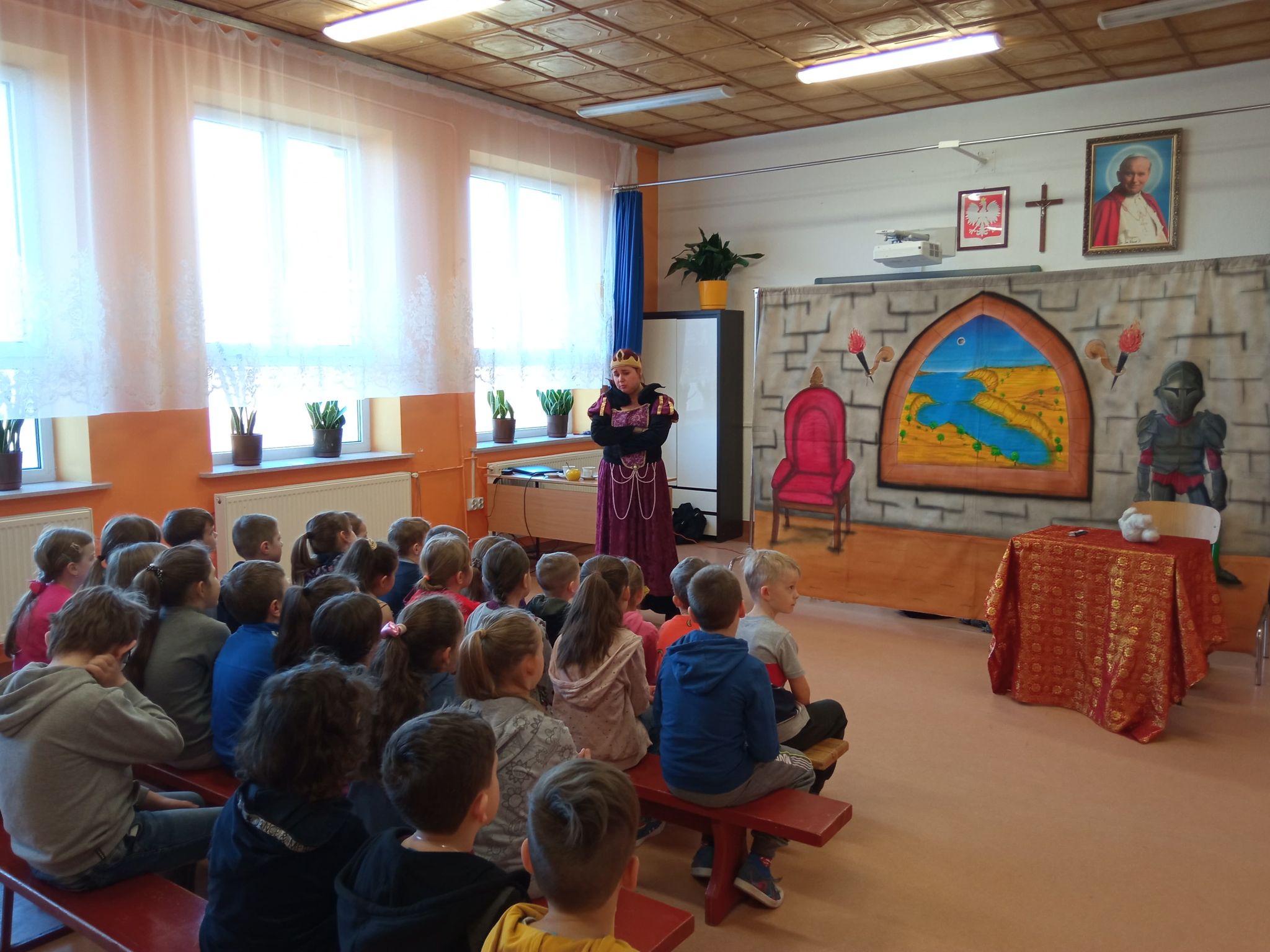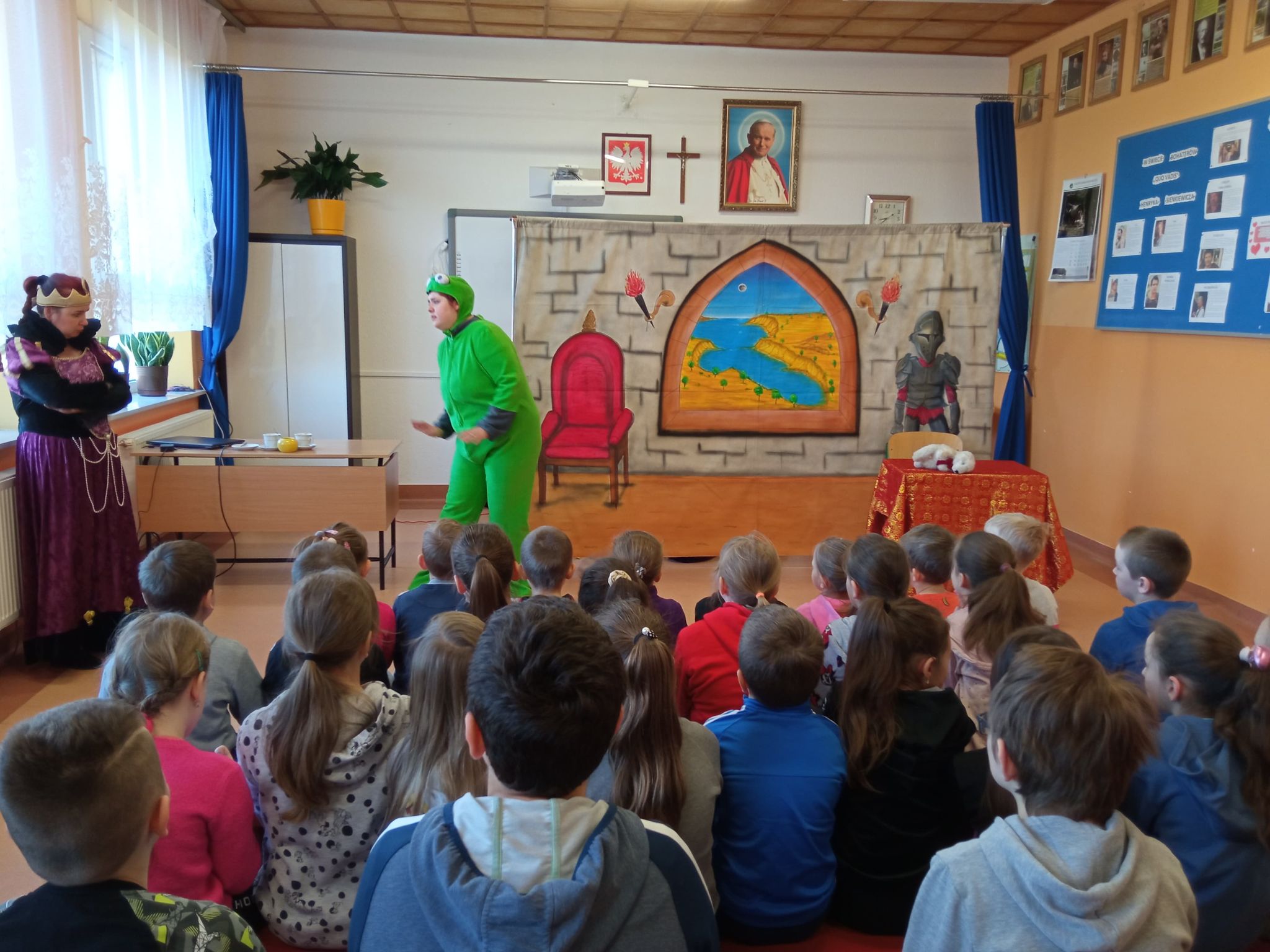 12 kwietnia mieliśmy zaszczyt gościć w naszych progach Teatr Edukacji i Profilaktyki "MASKA", który przyjechał do nas aż z Krakowa. Aktorzy zagrali dla naszych uczniów dwa spektakle: „Złośliwości jej królewskiej mości” skierowany do klasy 0-III oraz "Pępek świata" dla klas IV-VIII.