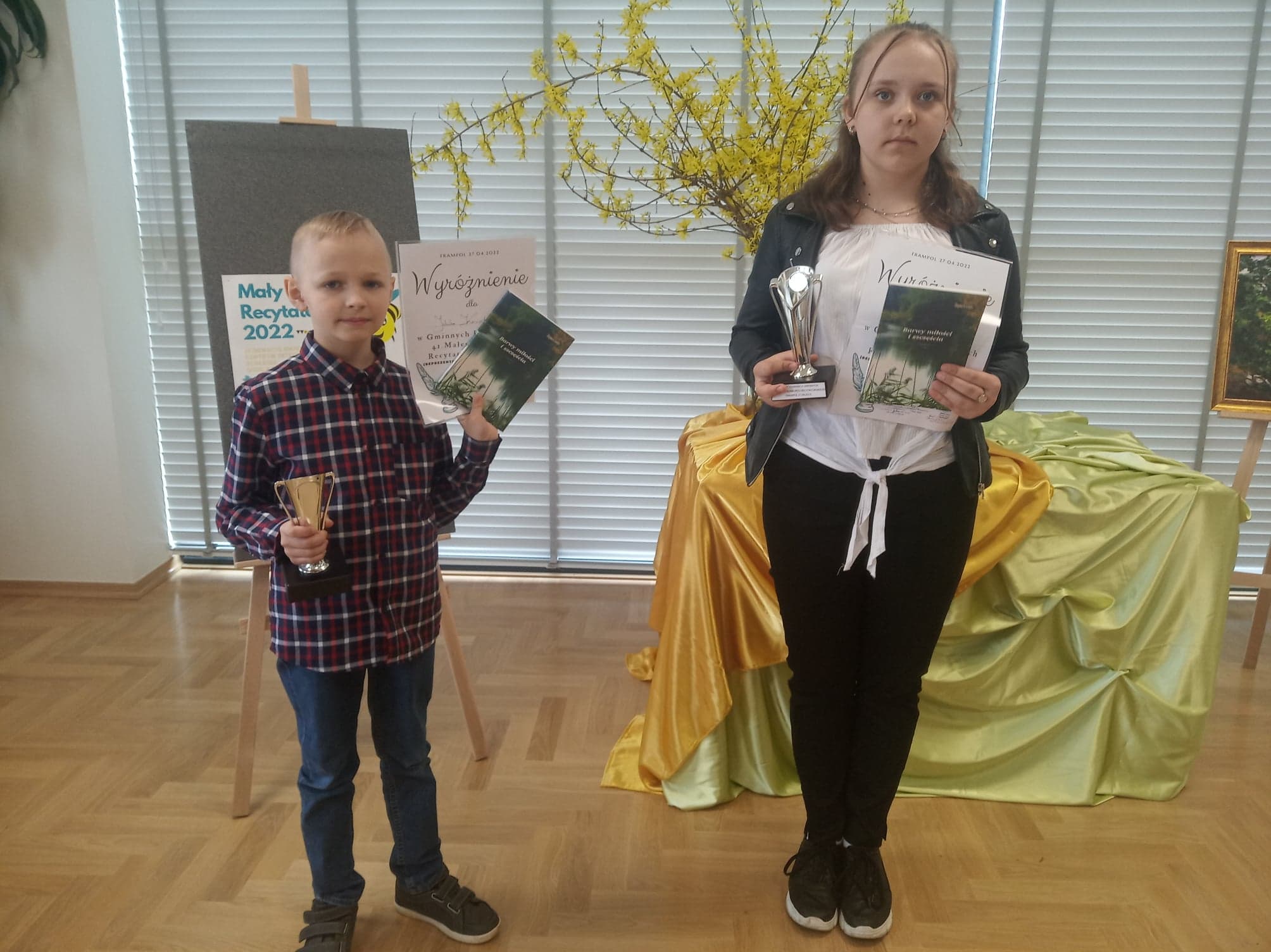 27 kwietnia w Centrum Integracji Społecznej we Frampolu odbyły się eliminacje gminne Małego Konkursu Recytatorskiego. Uczestniczyli w nich przedstawiciele szkół podstawowych we Frampolu, Teodorówce i Radzięcinie, a także także pięcioro uczniów naszej szkoły, którzy zostali zwycięzcami etapu szkolnego. Byli to: Weronika Bielak z klasy II, Lena Leśniewska z klasy III, Piotr Grzywna z klasy IV, Jakub Kaziród z klasy IV i Julia Leśniewska z klasy VII.