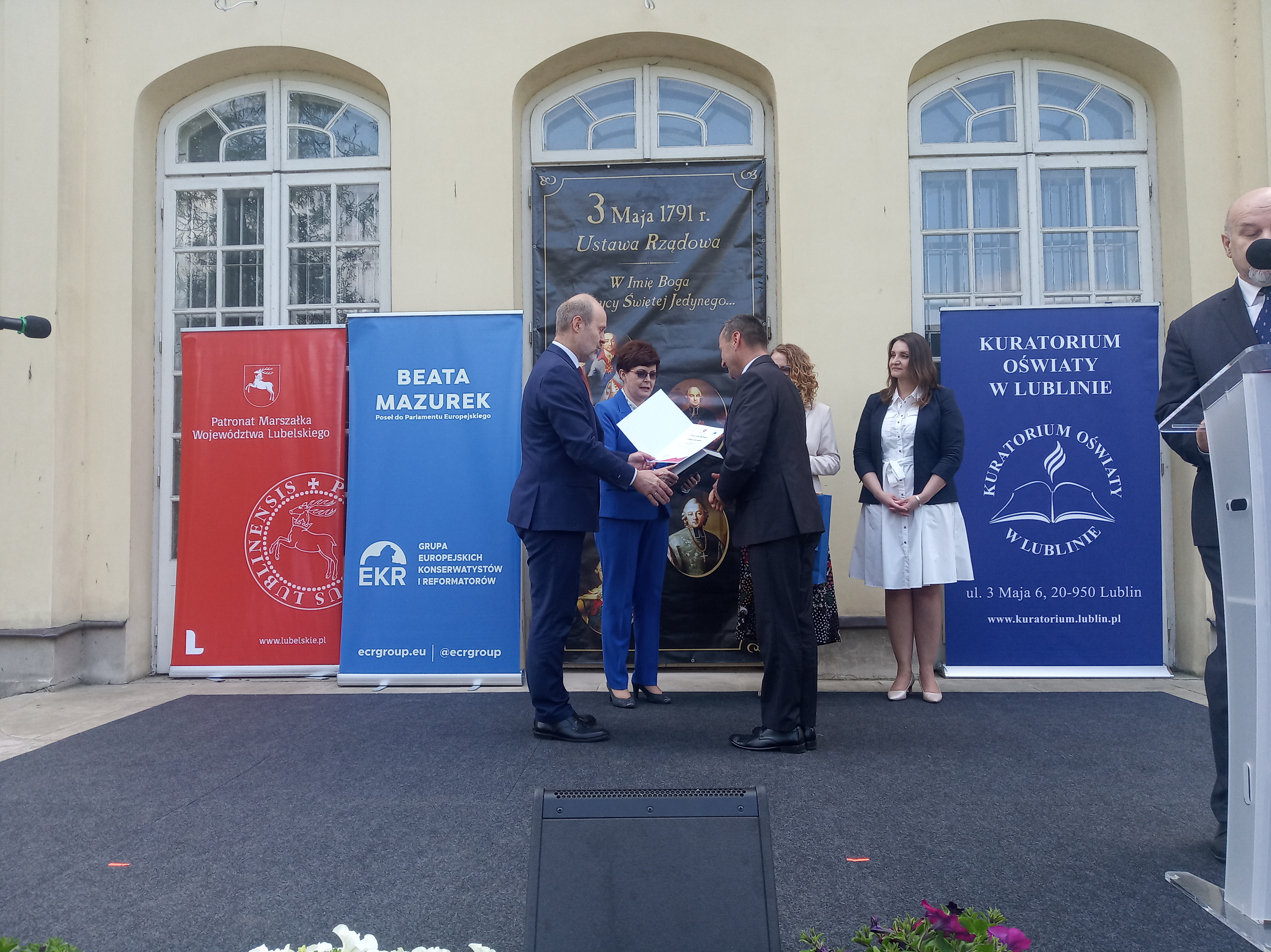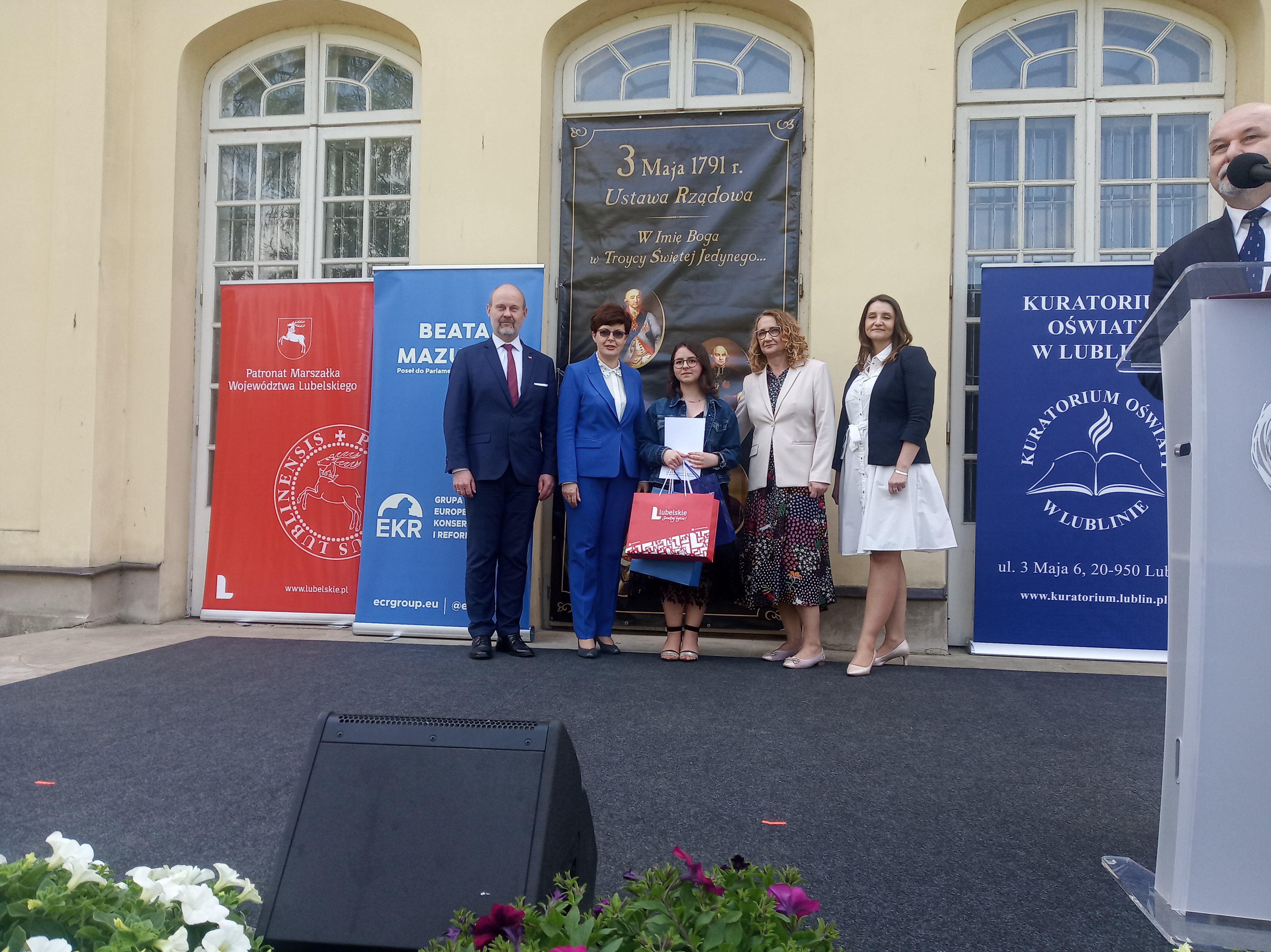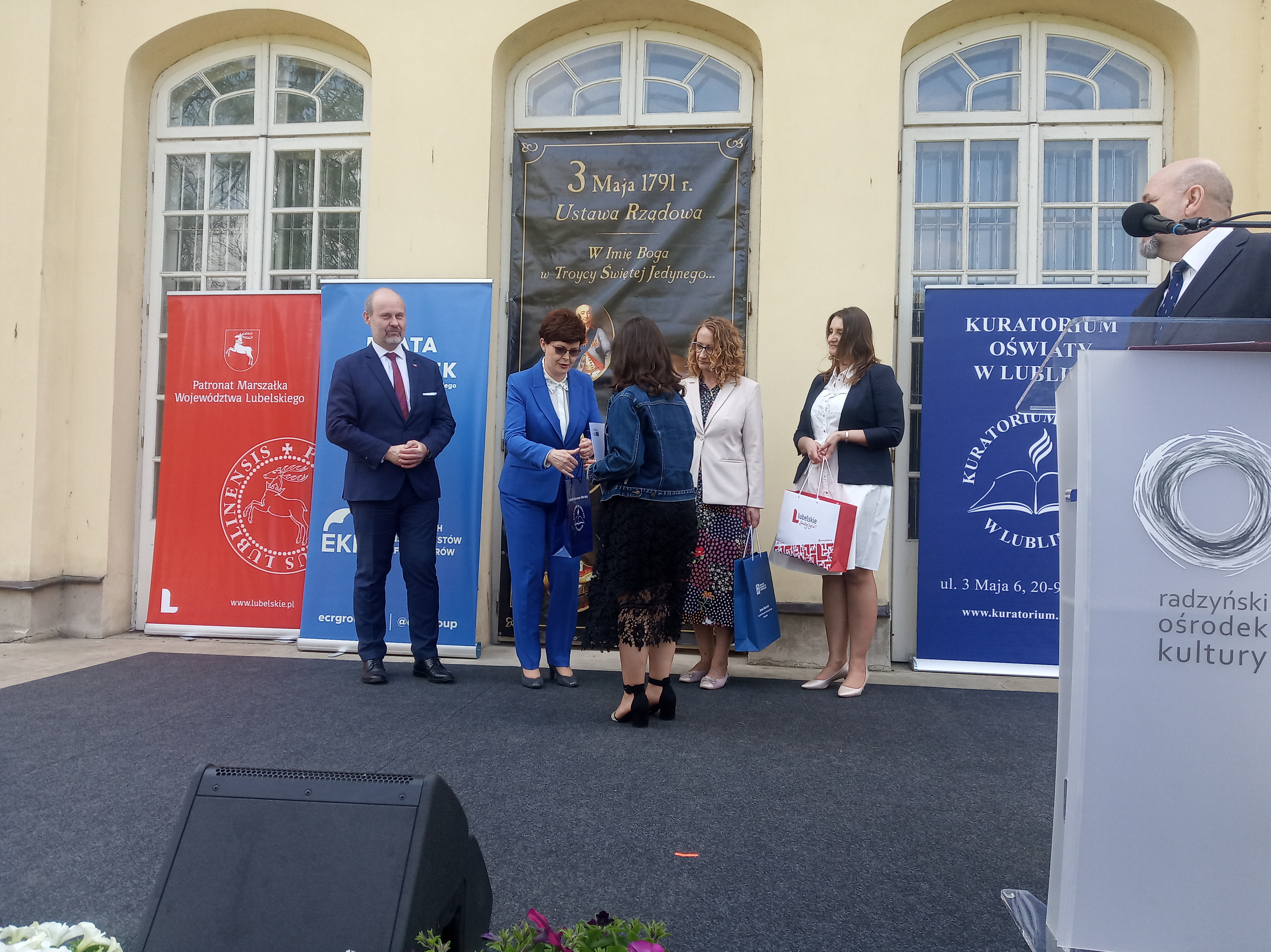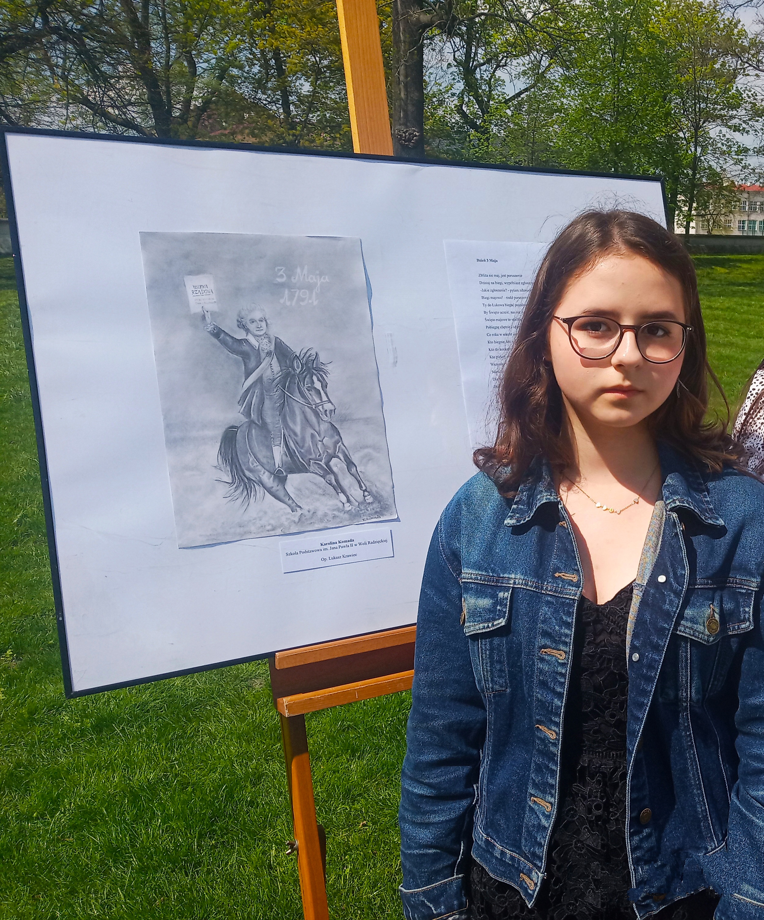 W dniu 7 maja 2022 roku, na terenie zespołu pałacowo-parkowego przy Pałacu Potockich w Radzyniu Podlaskim, odbyło się podsumowanie drugiej edycji konkursu „Echa Konstytucji 3 Maja w moim regionie” wraz z wręczeniem nagród laureatom i ich opiekunom. Konkurs został zorganizowany z inicjatywy Beaty Mazurek – posłanki do Europarlamentu, we współpracy z Kuratorium Oświaty w Lublinie. Głównym celem konkursu było uświadomienie uczniom znaczenia Konstytucji 3 maja jako ważnego elementu pamięci zbiorowej i oddanie hołdu jej twórcom. Wzięło w nim udział 467 uczniów z całego województwa, w tym 174 napisało utwory poetyckie, natomiast 293 wykonało prace plastyczne. Nagrodzonych zostało 12 prac: po trzy plastyczne i literackie w każdej z dwóch kategorii: szkół podstawowych i ponadpodstawowych. Zostały one zaprezentowane na wystawie podczas uroczystości. Wśród zwycięzców znalazła się również uczennica naszej szkoły Karolina Komada, która powtórzyła swój ubiegłoroczny sukces i ponownie uzyskała tytuł laureata. Jesteśmy pełni dumy i podziwu dla ogromnego talentu plastycznego Karoliny i życzymy jej dalszych sukcesów.