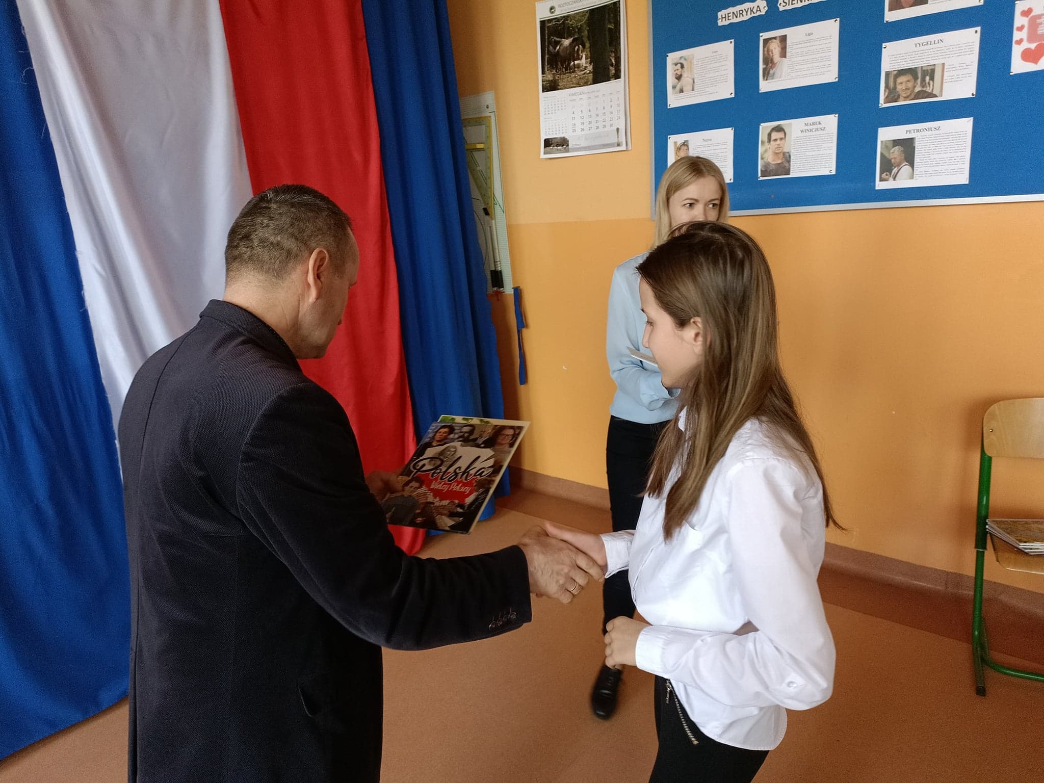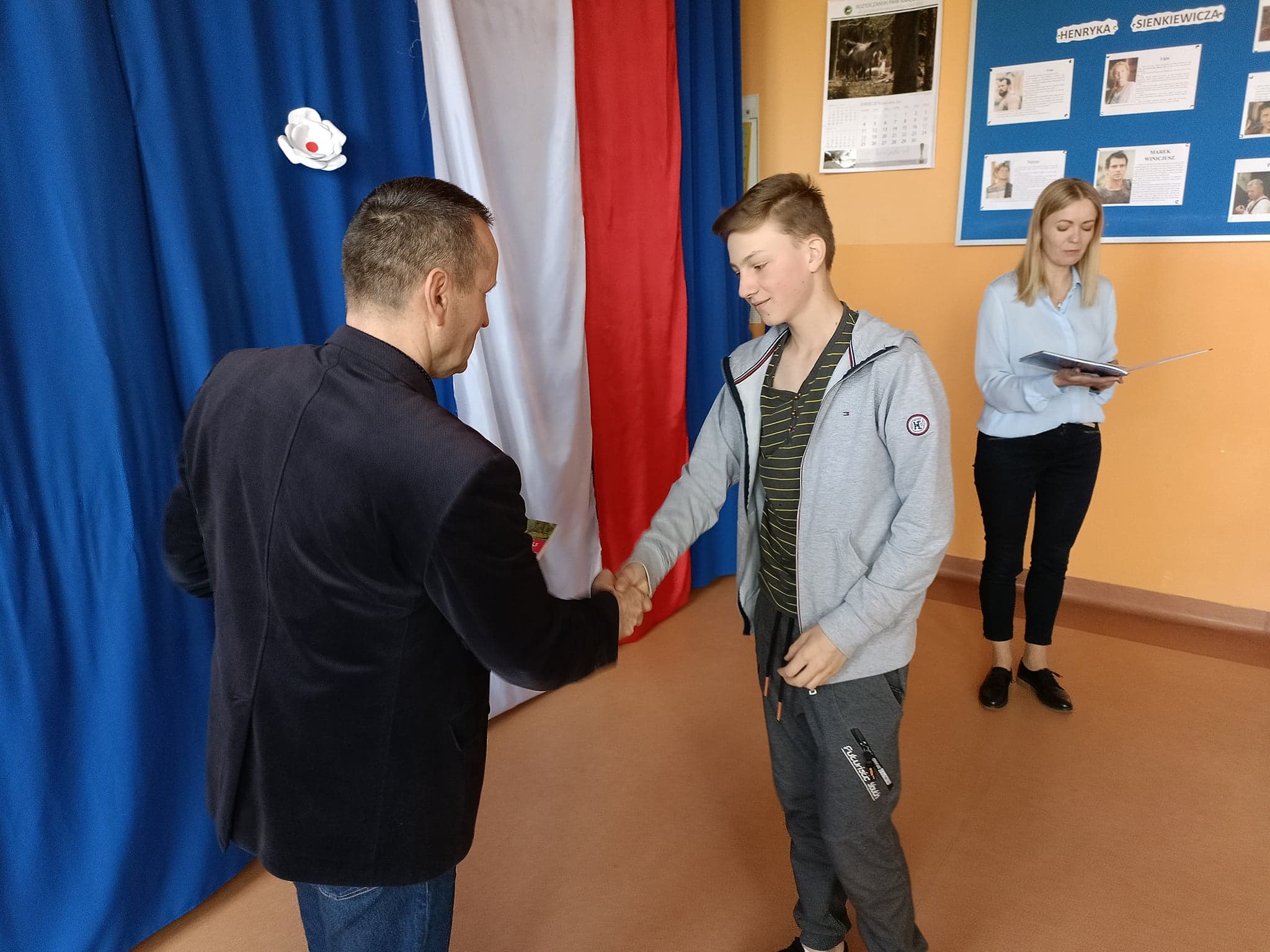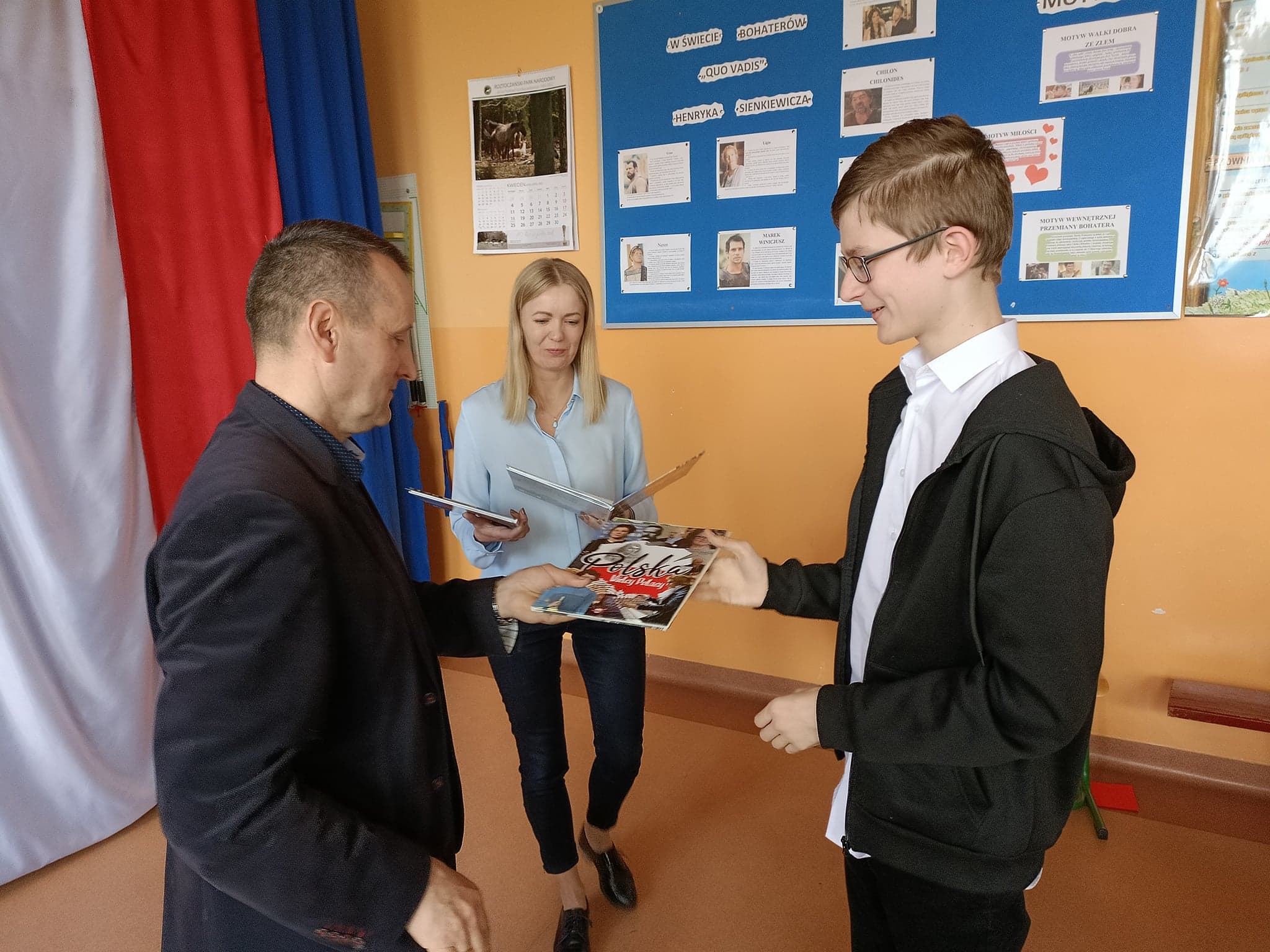 Nagrody książkowe oraz pamiątkowe dyplomy ufundowane przez sponsora, zostały wręczone zwycięzcom przez dyrektora Stanisława Saja podczas akademii szkolnej. Wszystkim uczniom dziękujemy za udział w konkursie, zwycięzcom gratulujemy!