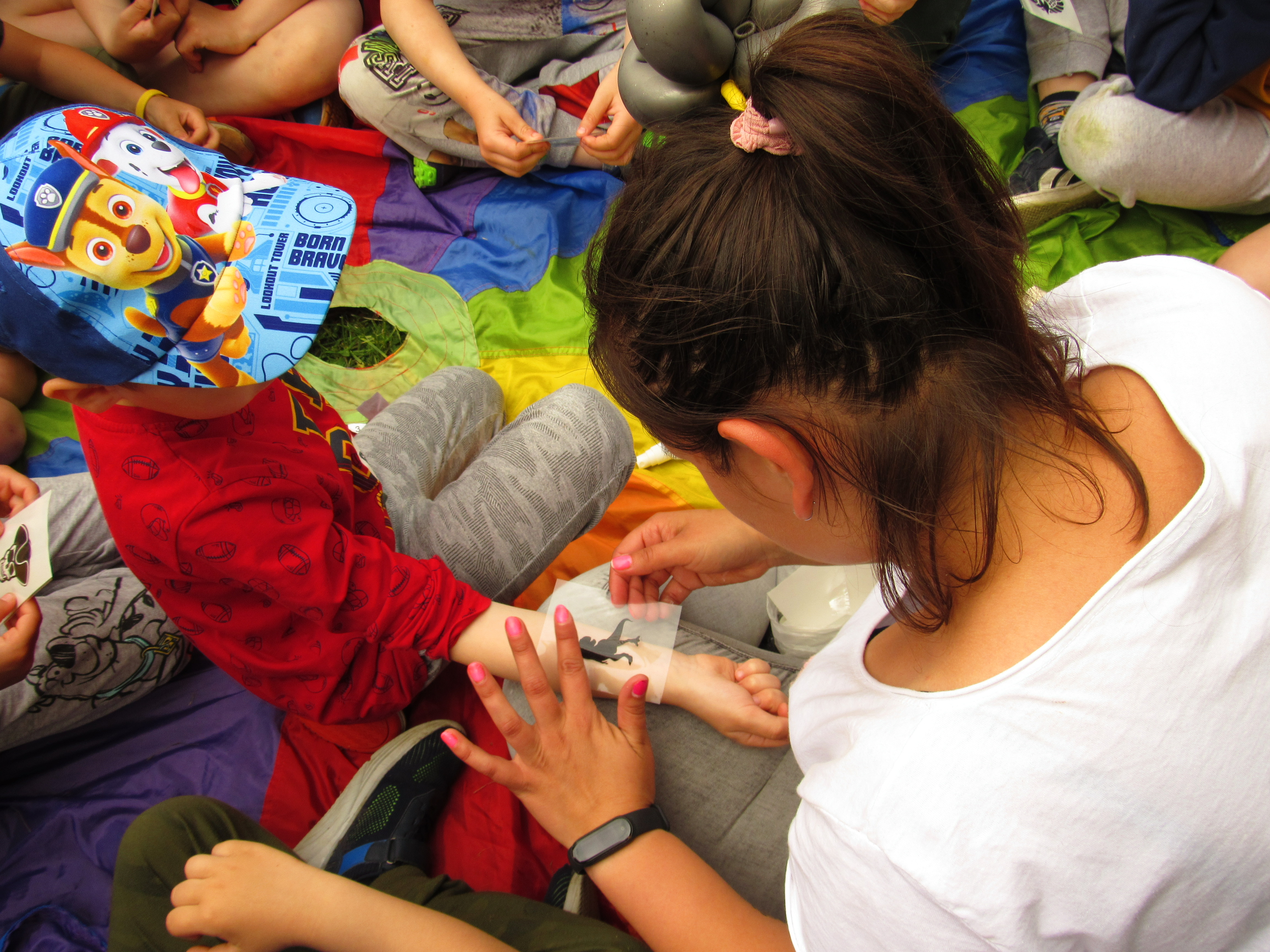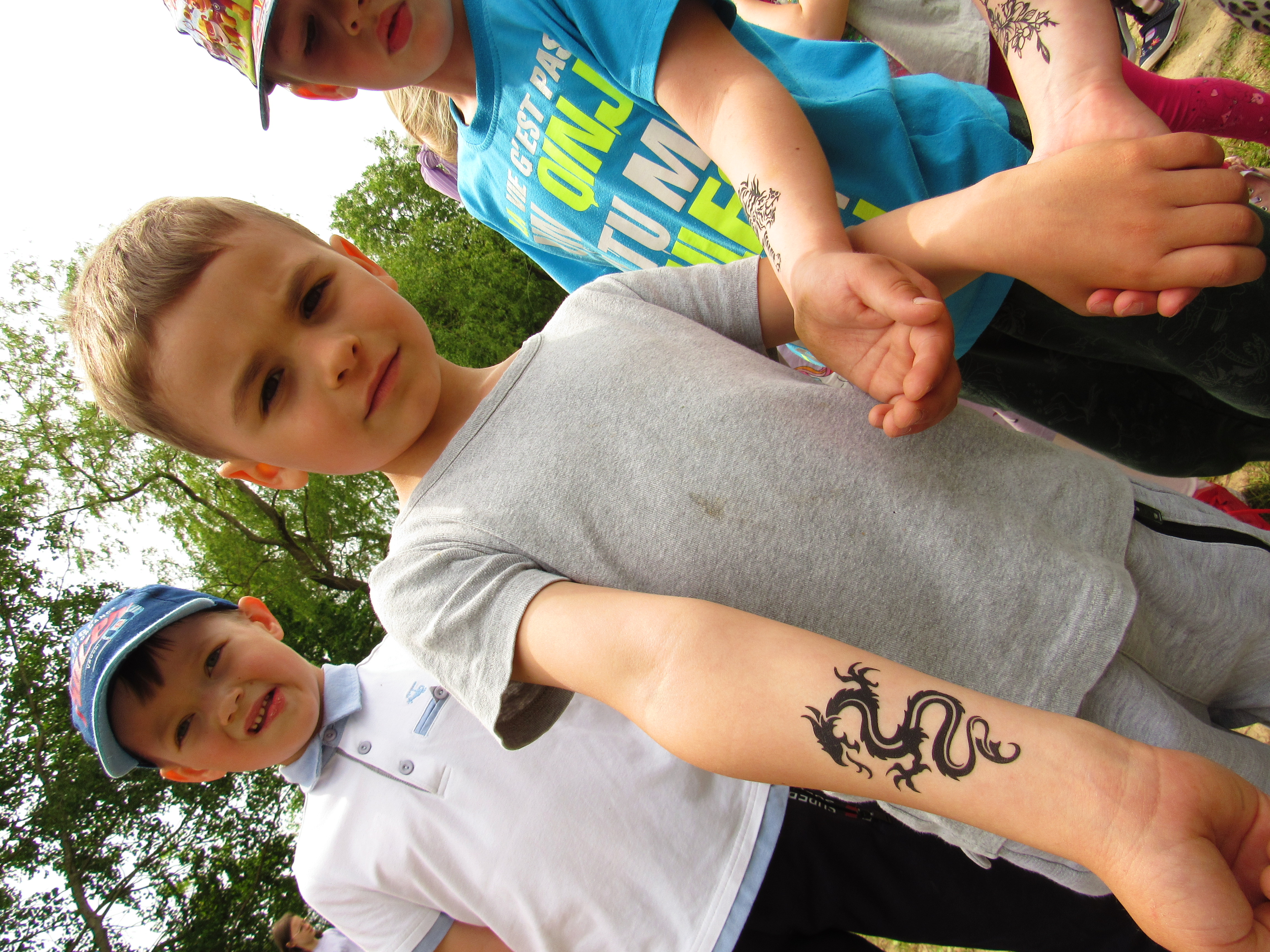Gdy zmagania dobiegły końca, uczniowie wraz z nauczycielami udali się do szkoły na poczęstunek przygotowany przez rodziców. Po posileniu się oraz krótkim odpoczynku wszyscy wrócili na świeże powietrze, gdzie czekała już animatorka. Dzieci z wielką radością włączyły się do zabaw przy muzyce. Następnie mogły samodzielnie wybrać i zrobić sobie tatuaż.