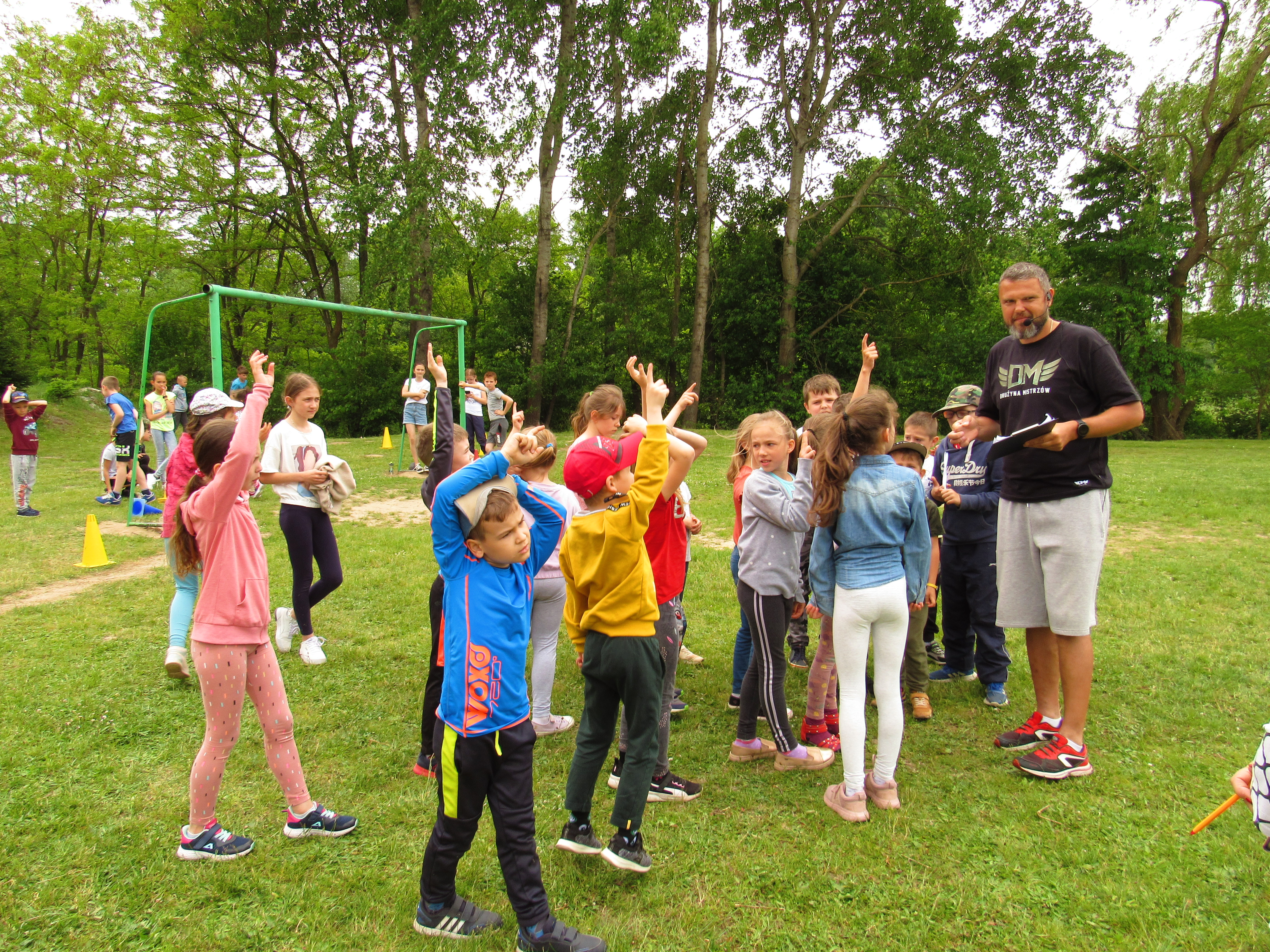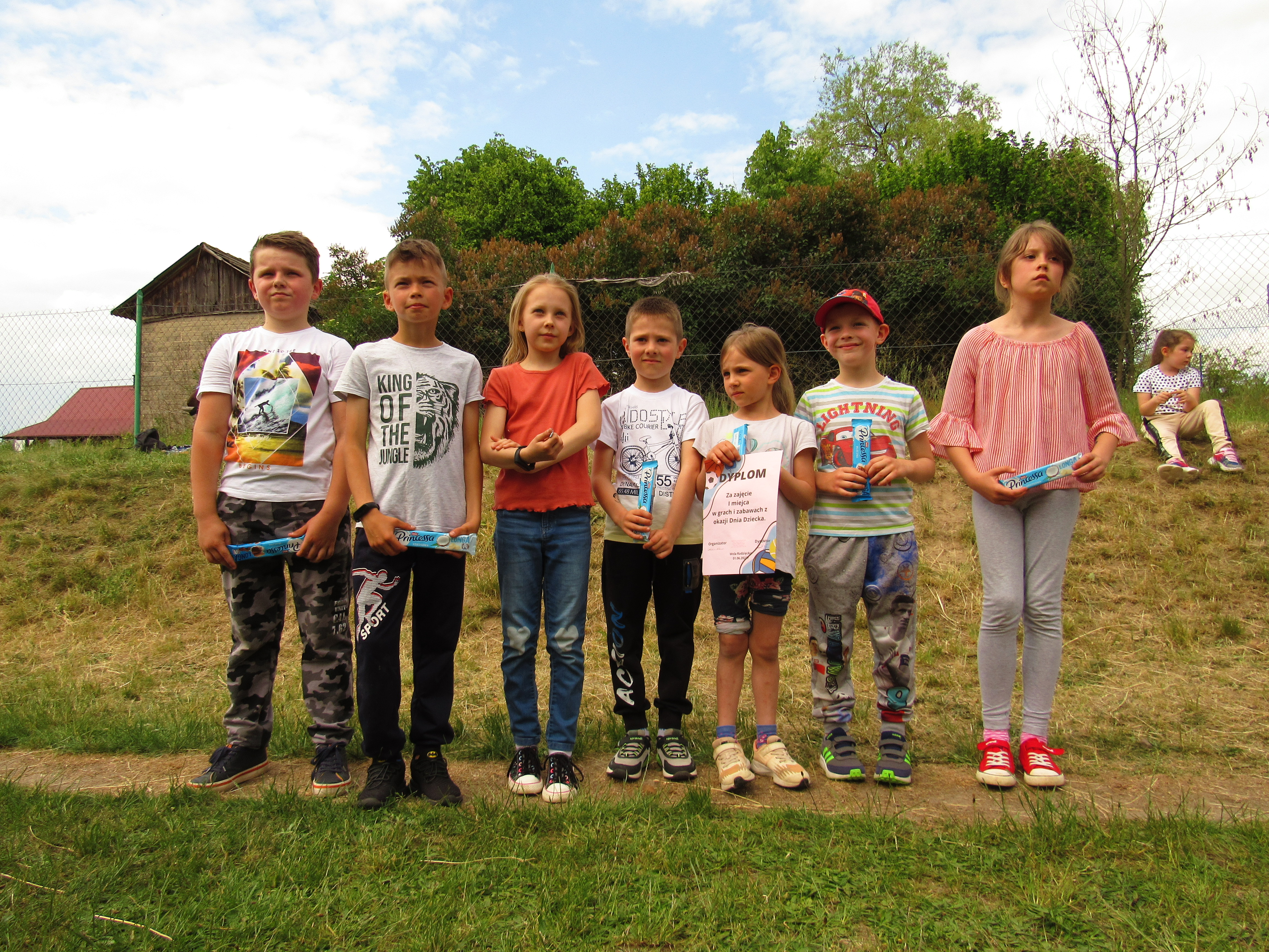 1 czerwca to dobrze znana wszystkim data – obchodzony jest wówczas Dzień Dziecka. W naszej szkole co roku staramy się uczcić to ważne święto, proponując przede wszystkim różnego rodzaju aktywności sportowe. Tegoroczny Dzień Dziecka rozpoczął się zebraniem całej społeczności szkolnej, na którym został przedstawiony plan uroczystości, a Pan Dyrektor złożył uczniom życzenia w imieniu swoim oraz pozostałych nauczycieli. Następnie wszyscy udali się na boisko szkolne. Dzieci z klas 0-III zostały podzielone na cztery drużyny i brały udział w konkurencjach sportowych wymagających wykazania się nie tylko sprytem i dobrą formą fizyczną, ale niekiedy również umiejętnością logicznego myślenia. Z kolei chętni z klas IV-VIII mieli okazję sprawdzić się w grze terenowej znanej jako „podchody”. Uczestnicy, dobrani w cztery zespoły, szukali na terenie placu szkolnego karteczek z pytaniami, na które następnie musieli poprawnie odpowiedzieć.