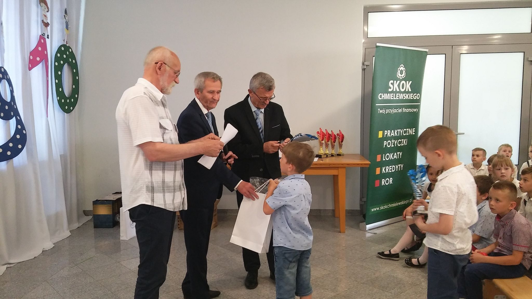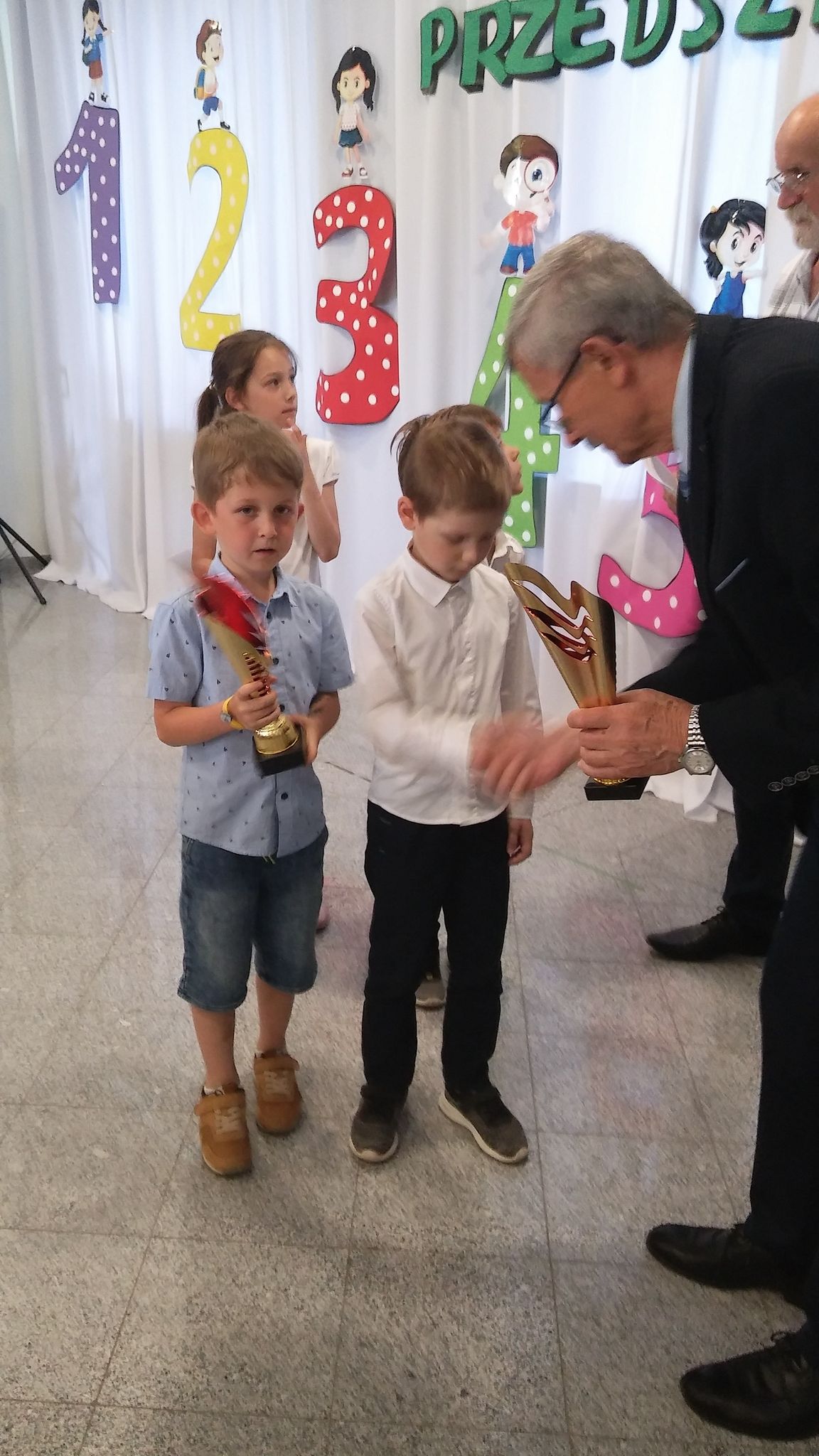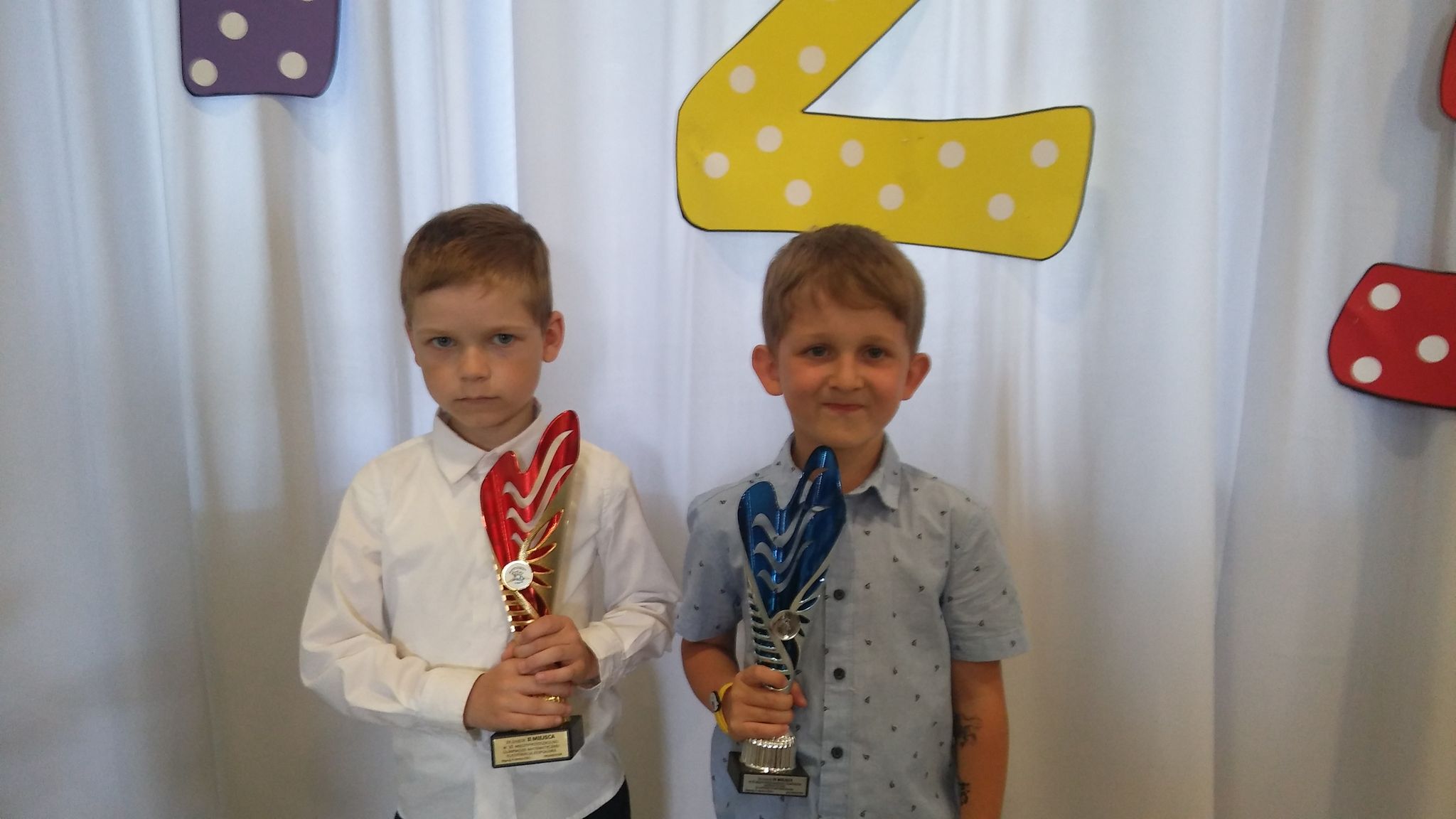 8 czerwca w Przedszkolu Katolickim im. Jana Pawła II w Biłgoraju odbył się finał Międzyprzedszkolnej Olimpiady Matematycznej. W tegorocznej VI edycji konkursu matematycznego dla najmłodszych, rywalizowało 42 dzieci z 21 przedszkoli i oddziałów przedszkolnych z terenu całego powiatu. Cele olimpiady to kształtowanie logicznego myślenia, rozwijanie kompetencji matematycznych, upowszechnianie wiedzy matematycznej wśród dzieci oraz wyłonienie talentów matematycznych. Wszystko po to, by na kolejnych szczeblach edukacji matematyka sprawiała jak najmniej problemów. Przedszkolaki rozwiązywały zadania otwarte i zamknięte. Nad poprawnym przebiegiem konkursu czuwało jury. Gminę Frampol reprezentowali przedszkolaki ze Szkoły Podstawowej im. Jana Pawła II w Woli Radzięckiej: Miksza Miłosz i Przemek Blacha. Zespołowo chłopcy zajęli II miejsce, a indywidualnie Miłosz III miejsce, a Przemek tuż za nim IV miejsce. Chłopcy otrzymali puchary indywidualnie i zespołowo oraz nagrody rzeczowe. Gratulujemy pierwszych sukcesów i życzymy kolejnych.