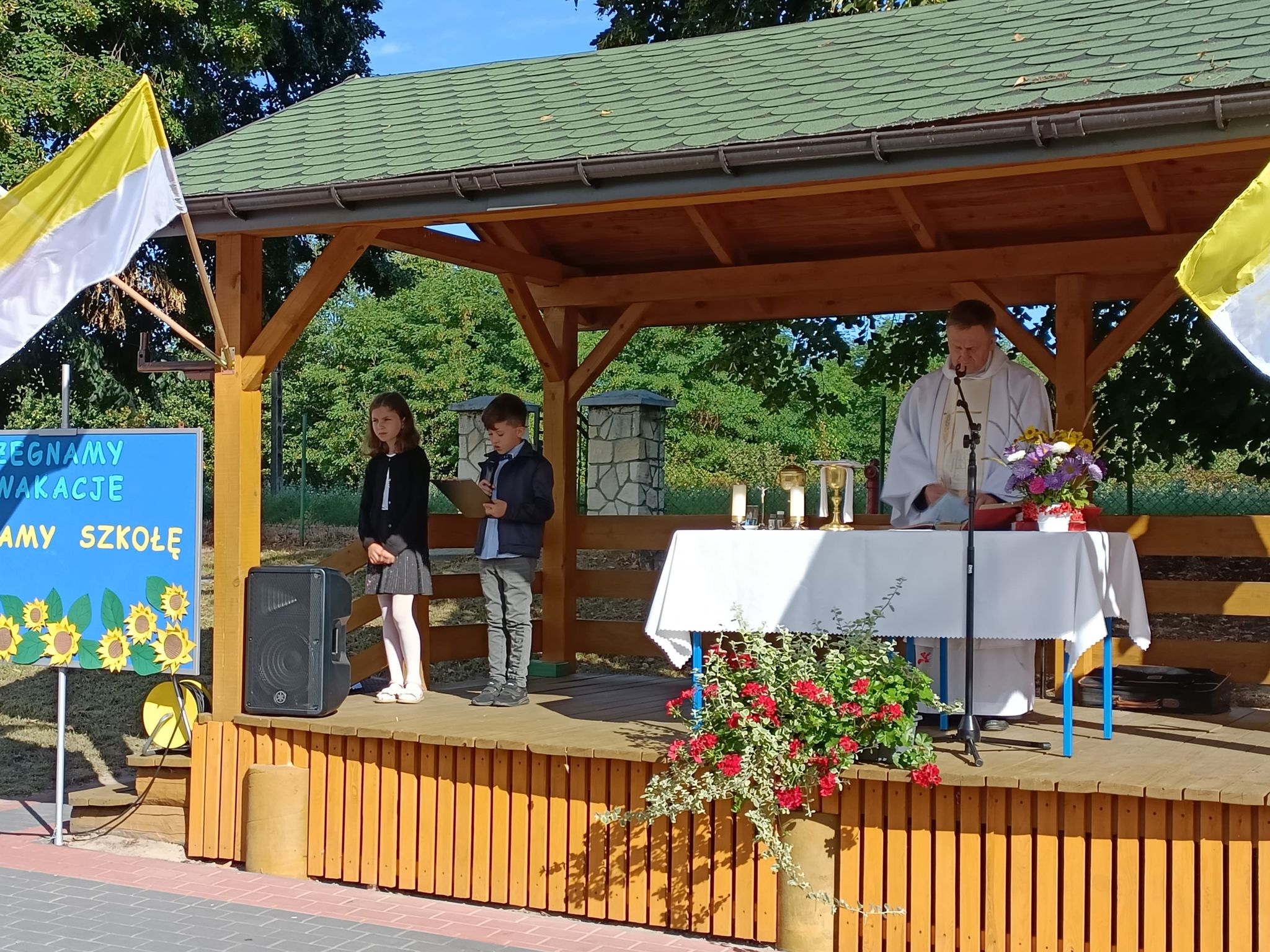 1 września zainaugurowaliśmy rok szkolny 2022/2023. Uroczystość rozpoczęła się Mszą Święta odprawioną przez księdza kanonika Adama Czupicha. Następnie Dyrektor Szkoły Pan Stanisław Saj powitał wszystkich przybyłych uczniów, rodziców oraz grono pedagogiczne. Wszystkim życzył wielu sukcesów, wytrwałości w realizacji celów oraz powodzenia w zdobywaniu wiedzy i nowych umiejętności. Życzenia do dzieci i młodzieży skierował również obecny na uroczystości przedstawiciel władz samorządowych - Skarbnik Gminy Frampol - Pan Tomasz Kurasiewicz. Po zakończonej uroczystości dzieci wraz z wychowawcami udali się do swoich klas.