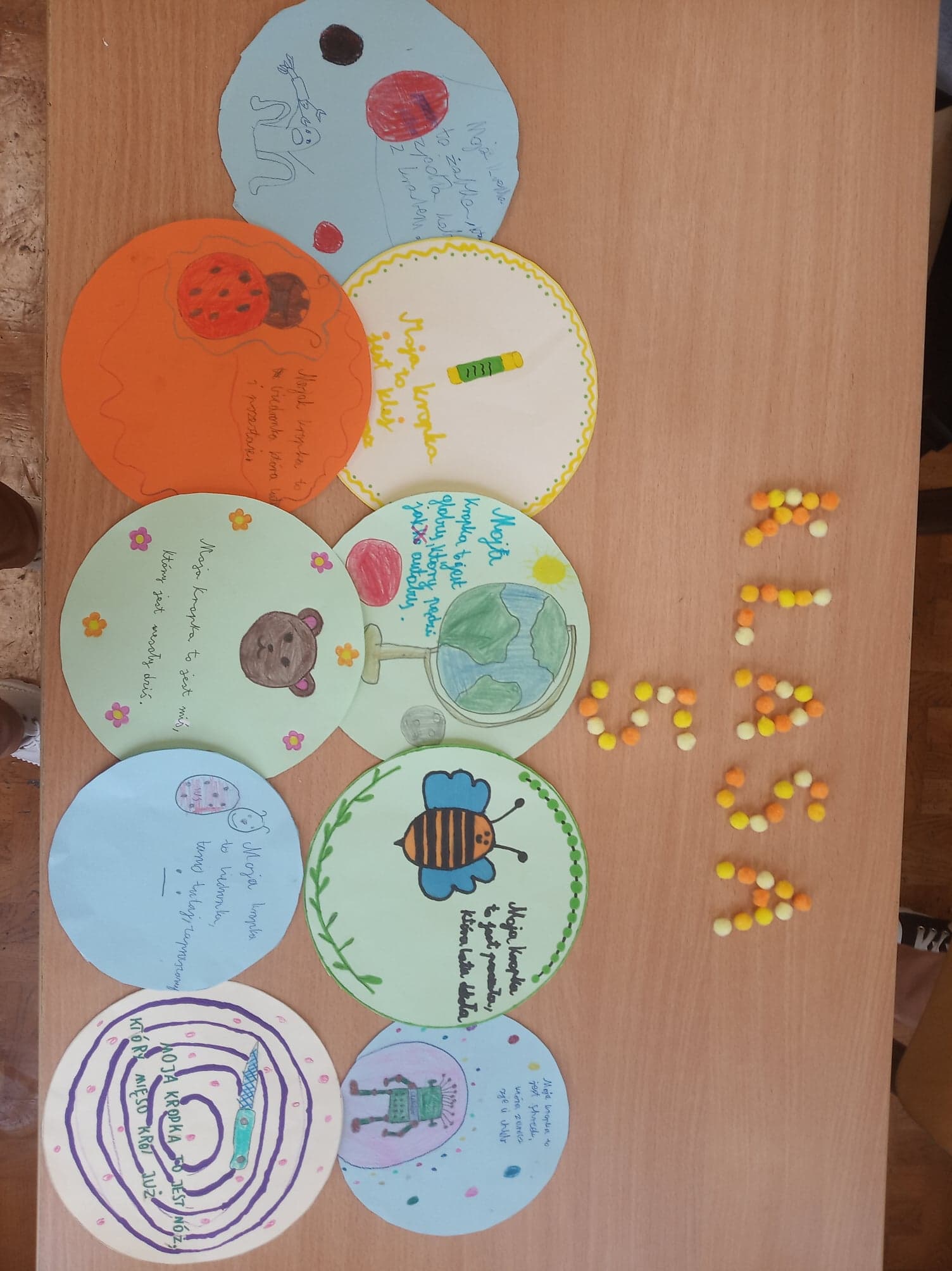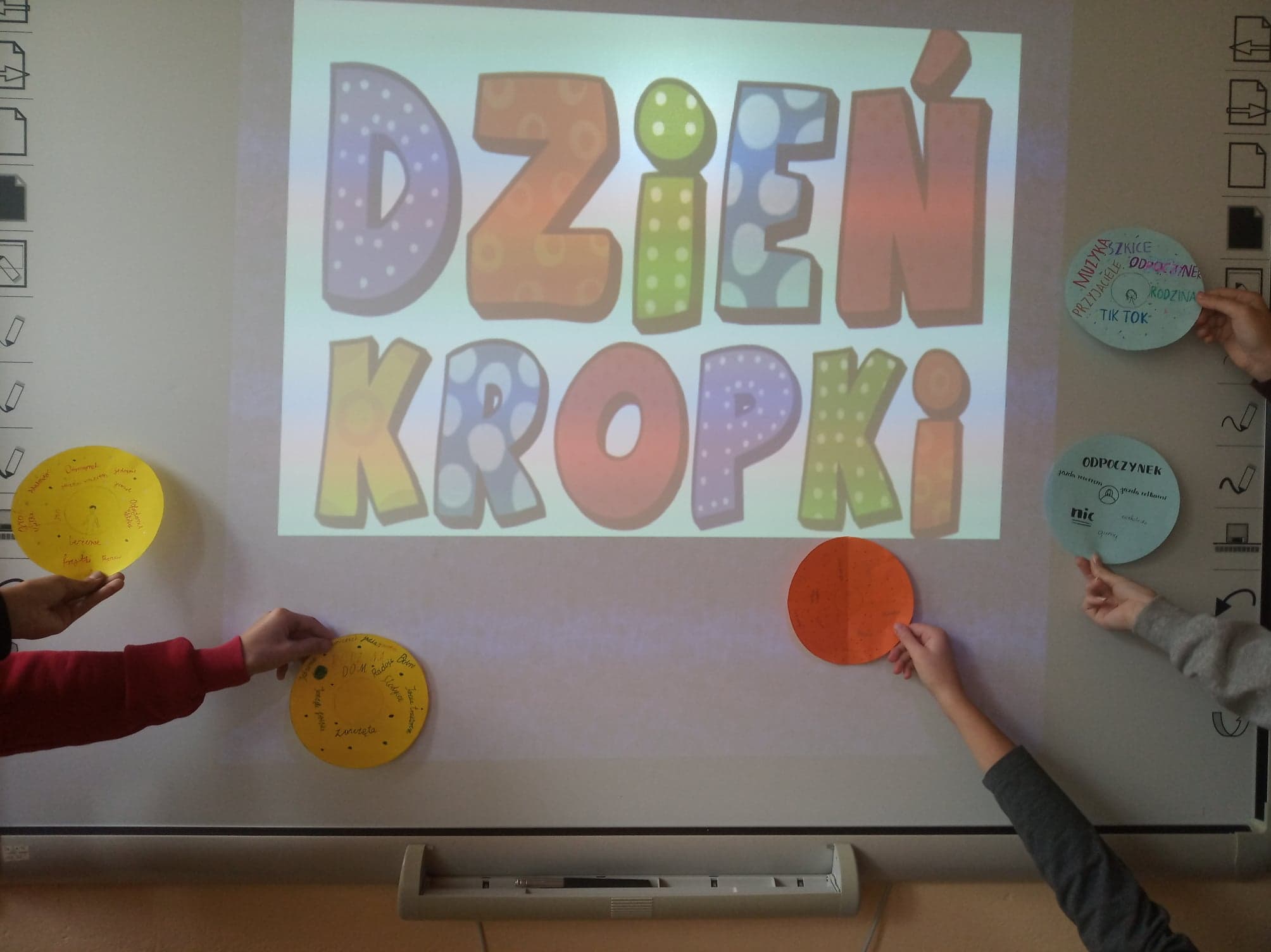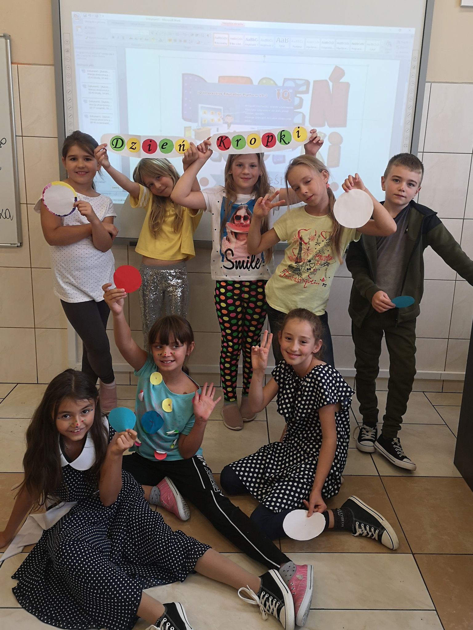 Święto Kropki zostało zorganizowane również w naszej szkole. W czwartek dzieci z klasy III założyły ubrania w kropki. Oprócz tego – inspirując się małą dziewczynką Vashti, bohaterką książki "Kropka" Petera H. Reynoldsa – odkrywały podczas zajęć swoje mocne strony, po czym zaprezentowały je, tworząc „Drzewo talentów”. Również uczniowie klas IV-VIII uczcili twórczo ten dzień. Zajęcia rozwijające zainteresowania z matematyki przebiegły dla nich pod hasłem „Cyrklem malowane”. Nauczyciel zaproponował tworzenie dzieł sztuki opartych na okręgach. Mógł to być na przykład kolaż w kształcie kropek wyciętych z kolorowego papieru. Elementy łączono w dowolny sposób, tworząc abstrakcyjne wzory lub bardziej konkretne obrazy. Z kolei podczas lekcji języka polskiego można było m.in. przypomnieć sobie związki frazeologiczne dotyczące kropki, stworzyć pomysłowe rymowanki, jak również „lektury zamknięte w kropkach” czy tematyczne chmury wyrazowe układające się w kształt kropki. Obchody tego święta pokazały, że wyobraźnia naszych uczniów jest nieograniczona. Oby kreatywność, jaką wykazaliście się podczas Dnia Kropki, nigdy Was nie opuszczała.