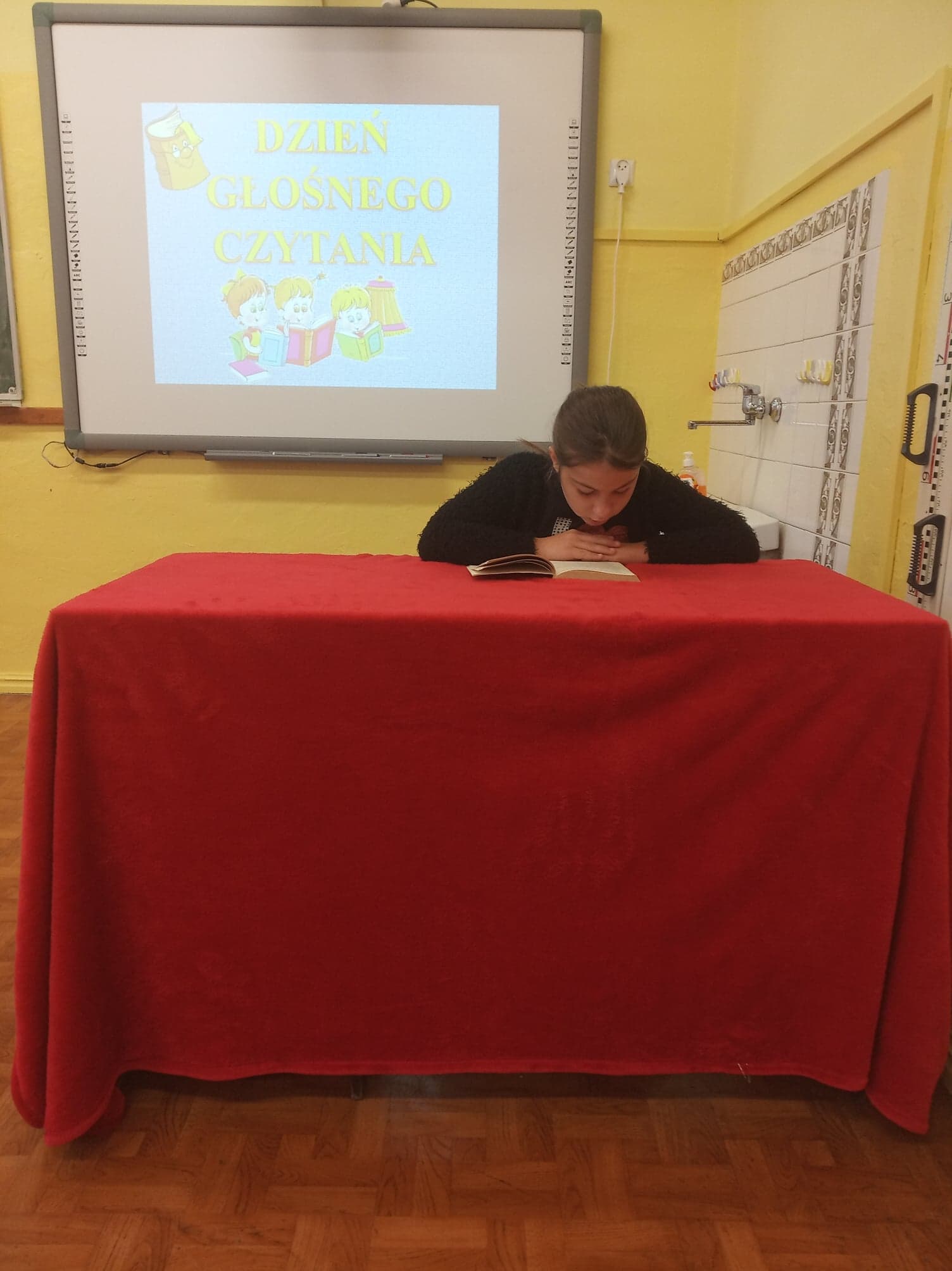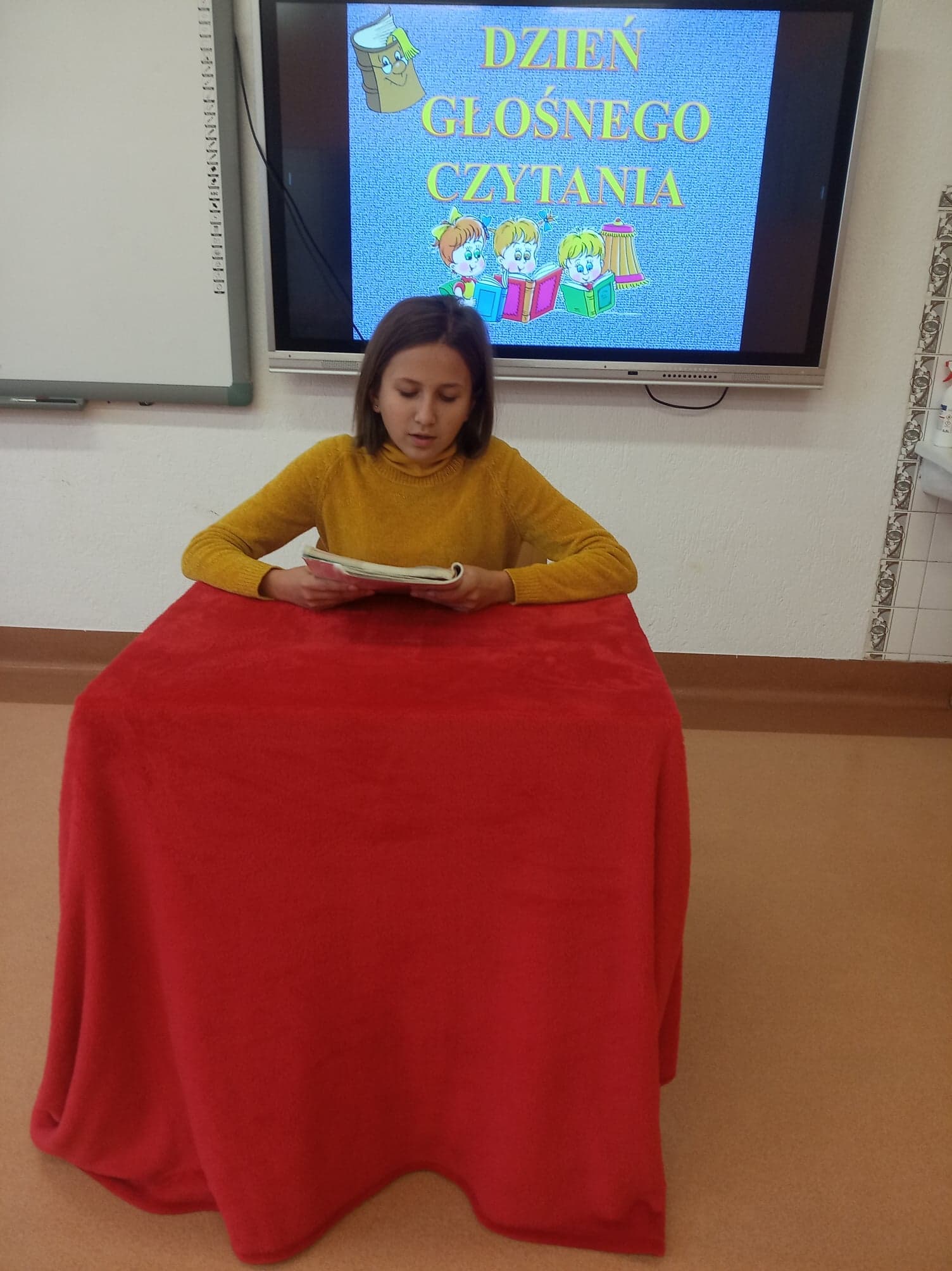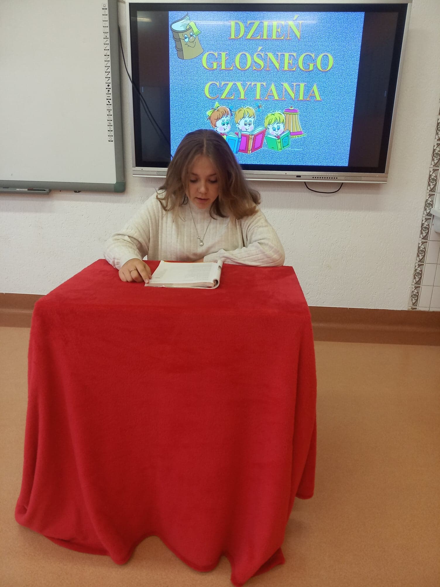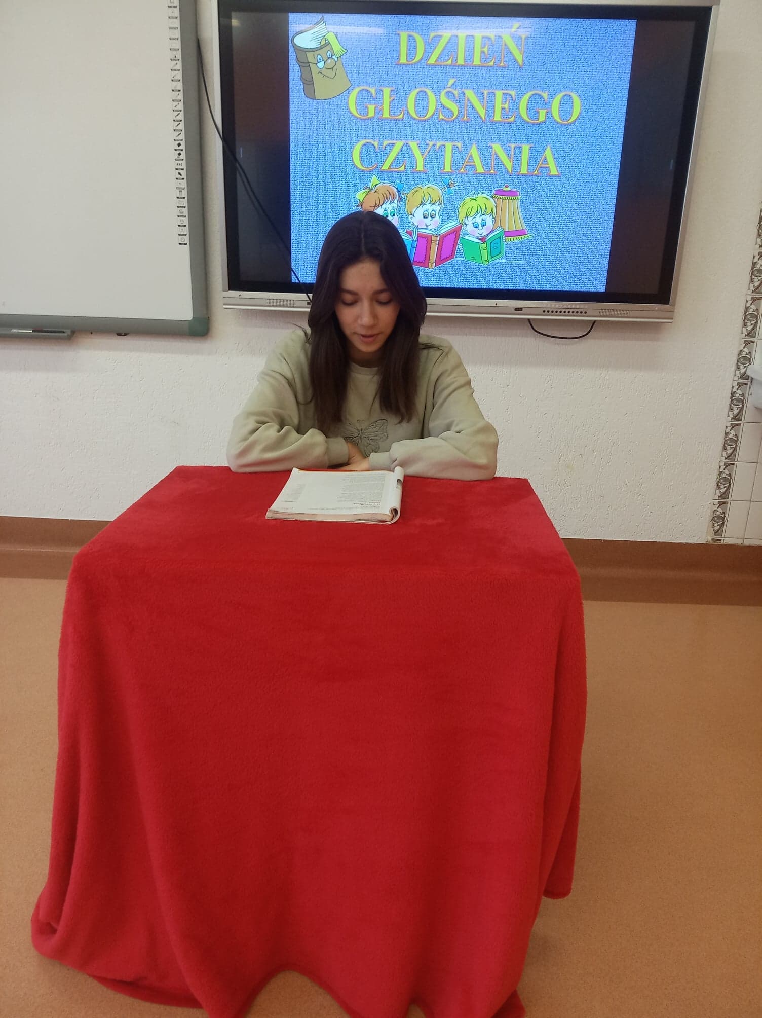 Dzień Głośnego Czytania stał się też okazją do przeprowadzenia szkolnej akcji pod hasłem: „Starsi czytają młodszym”. Dziewczęta z klasy VIII – Julia Leśniewska, Natalia Deruś, Julia Kaproń oraz Wiktora Bryła odwiedziły dzieci z oddziałów przedszkolnych i przeczytały im głośno baśń o Czerwonym Kapturku. Wykorzystały do tego Teatrzyk Kamishibai – papierowy teatr obrazkowy. Taka forma przyswajania tekstu okazała się dla najmłodszych bardzo atrakcyjna i z pewnością dostarczyła im wielu niezapomnianych wrażeń.