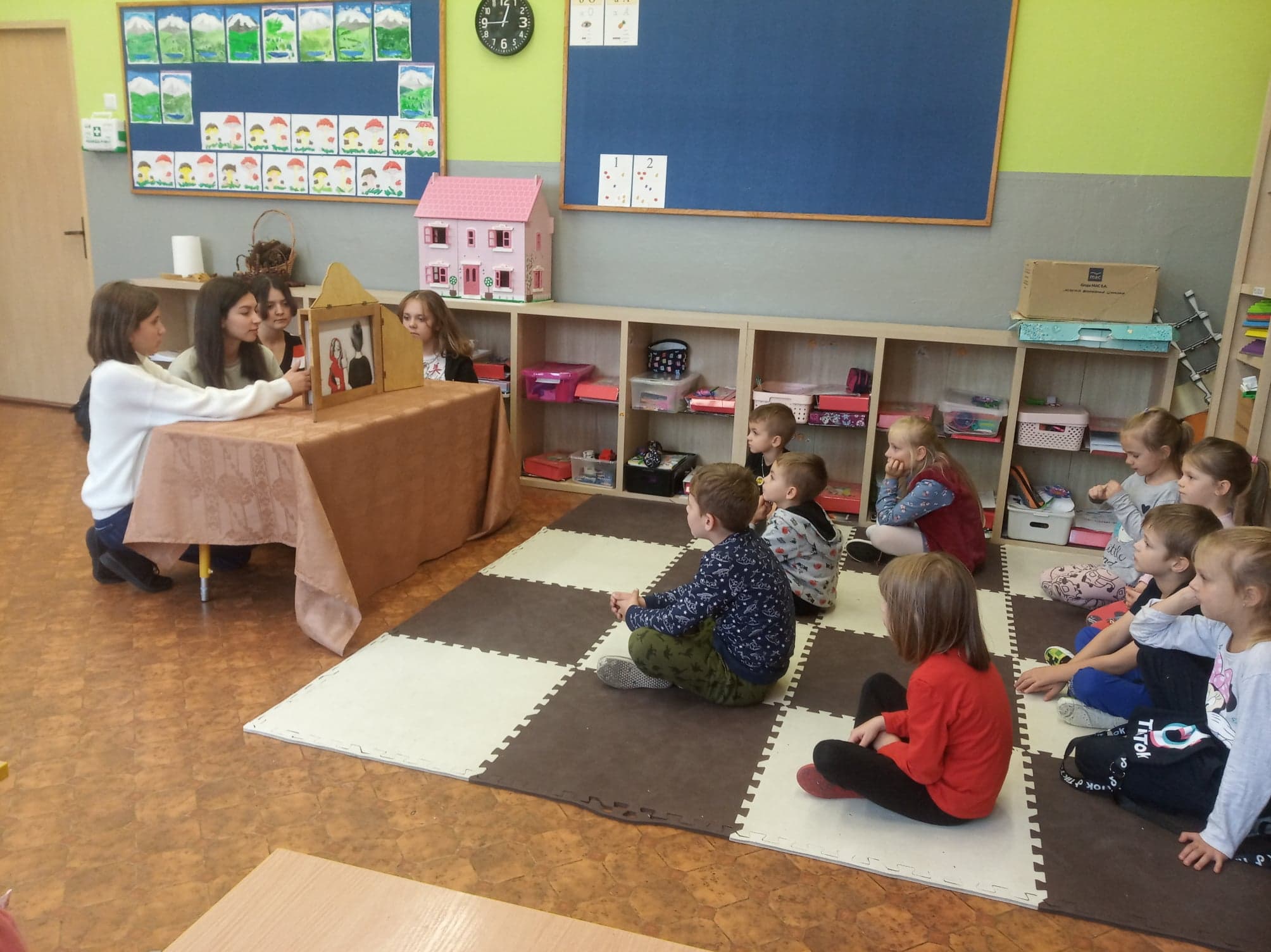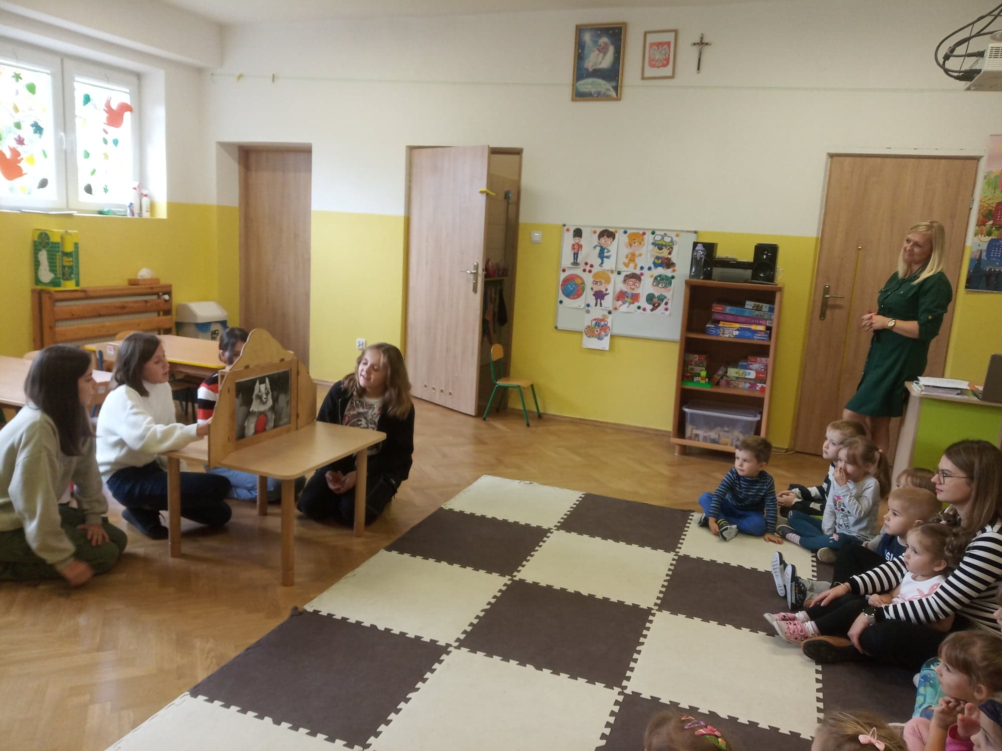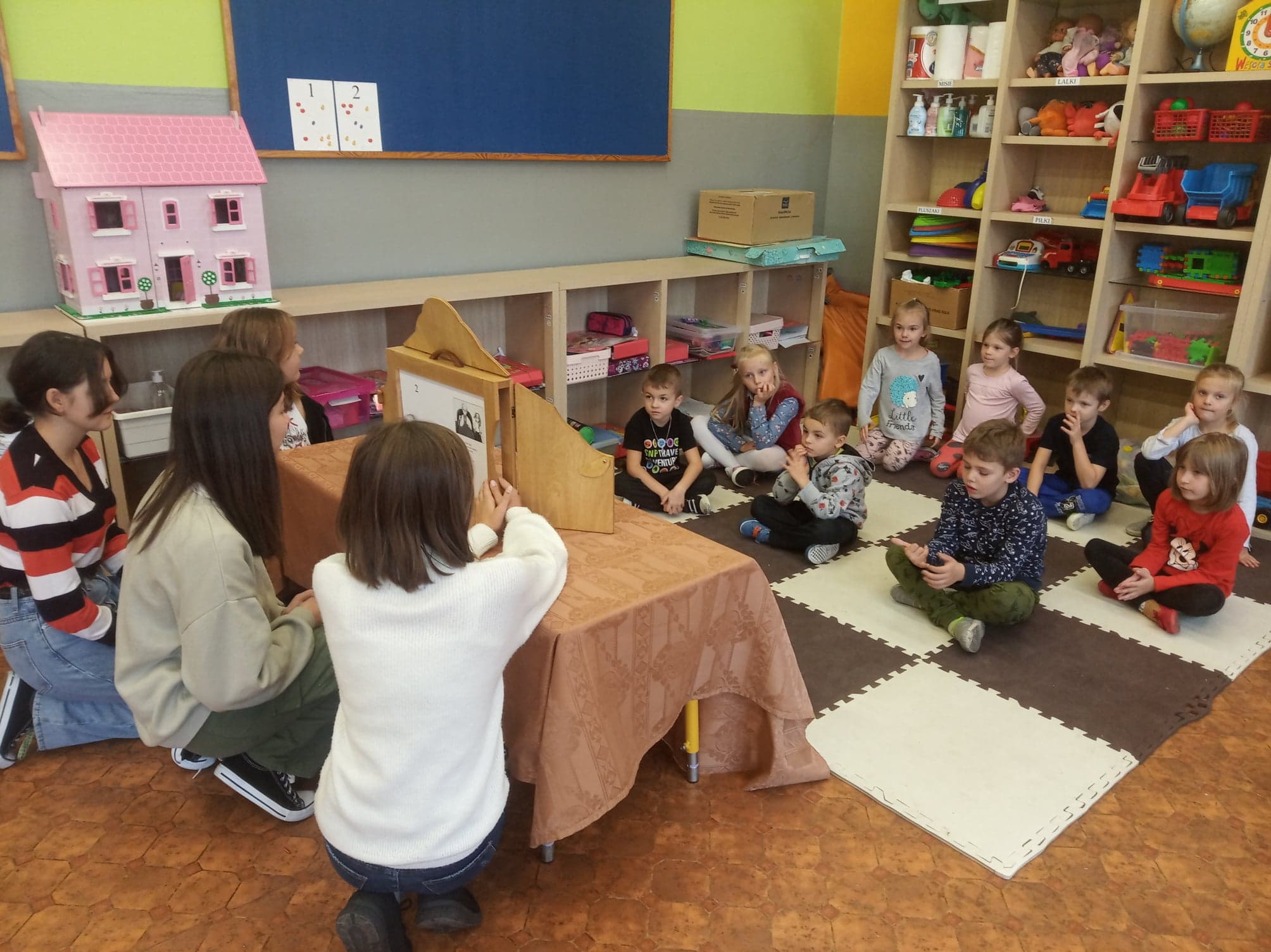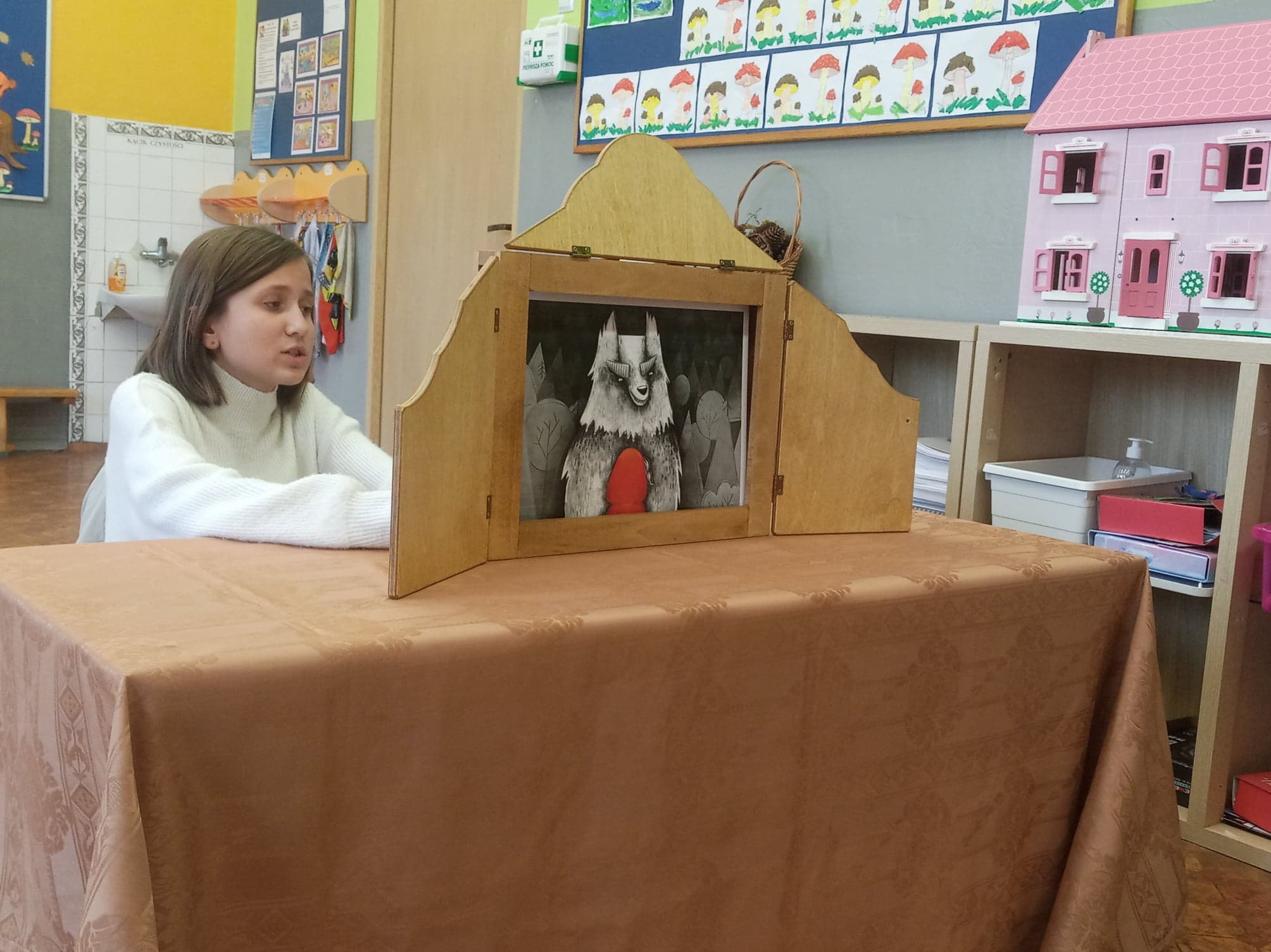 Dzień Głośnego Czytania stał się też okazją do przeprowadzenia szkolnej akcji pod hasłem: „Starsi czytają młodszym”. Dziewczęta z klasy VIII – Julia Leśniewska, Natalia Deruś, Julia Kaproń oraz Wiktora Bryła odwiedziły dzieci z oddziałów przedszkolnych i przeczytały im głośno baśń o Czerwonym Kapturku. Wykorzystały do tego Teatrzyk Kamishibai – papierowy teatr obrazkowy. Taka forma przyswajania tekstu okazała się dla najmłodszych bardzo atrakcyjna i z pewnością dostarczyła im wielu niezapomnianych wrażeń.